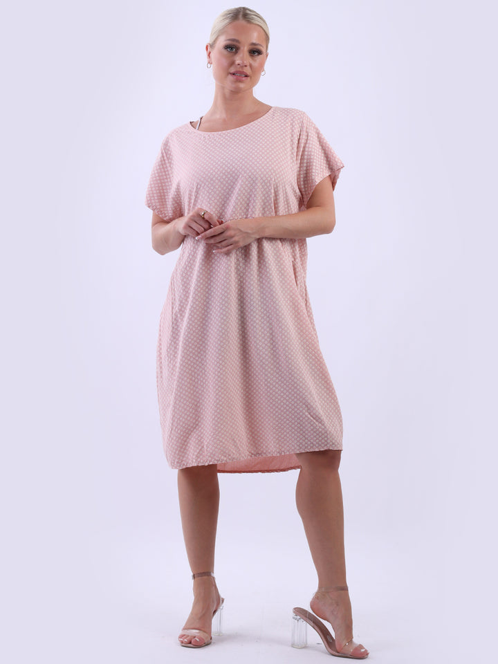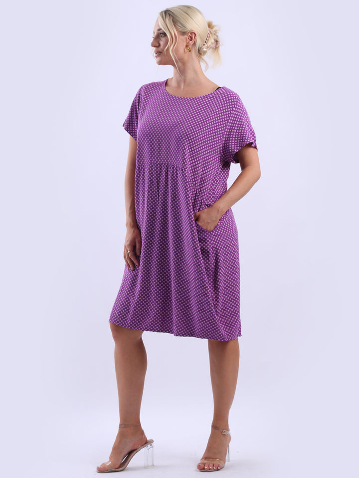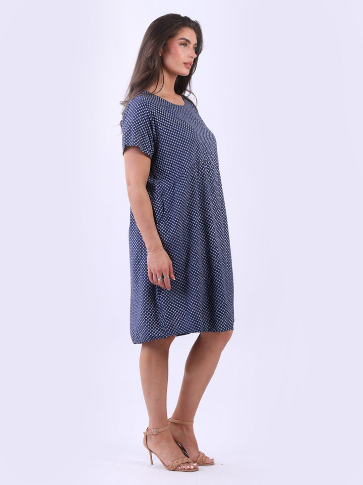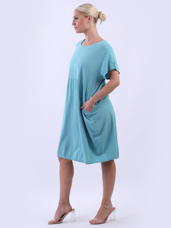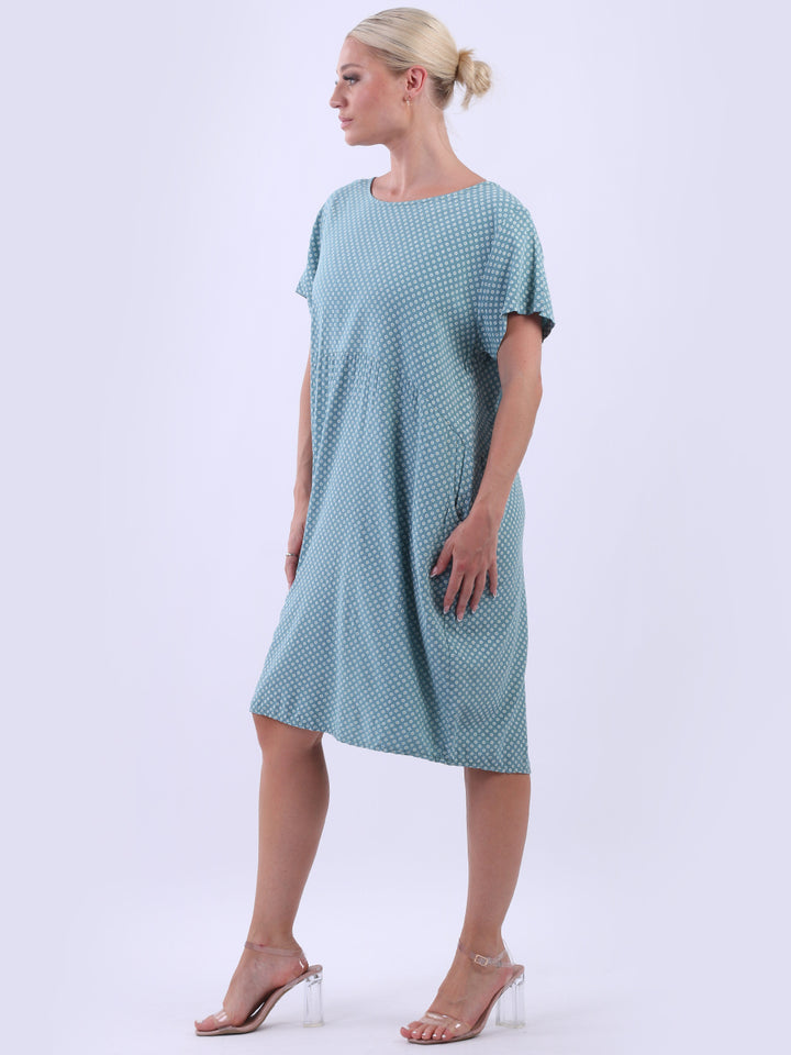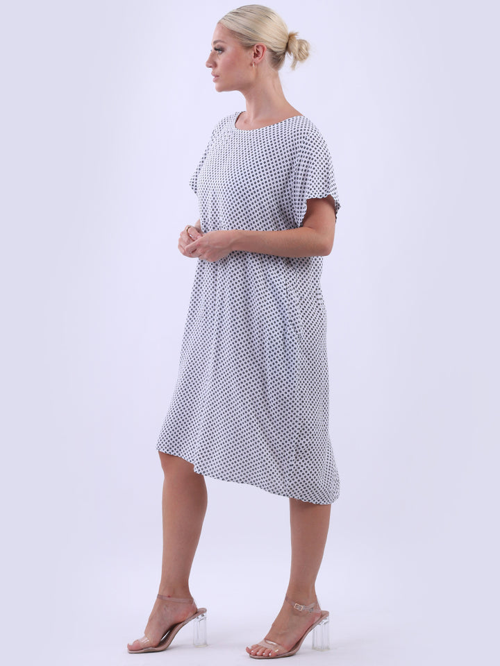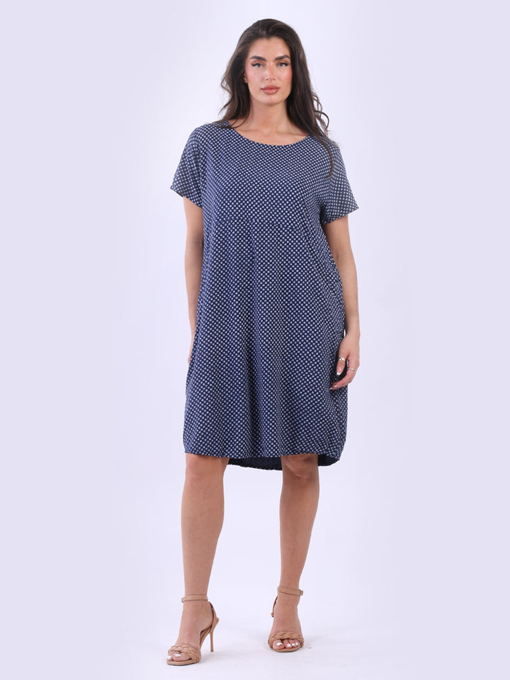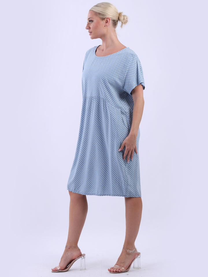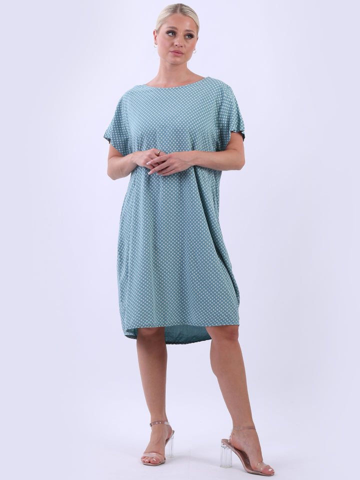 Redwholesale's latest collection features this Italian moda midi dress that has a stunning and iconic ditsy print to rock summer looks for women wearers. Made in Italy with the finest soft fabric mix, soft round neckline, baggy plus size fit and functional pockets, make the best of the season, giving an ideal choice for Italian women's casual fashion. Dress it with sneakers.