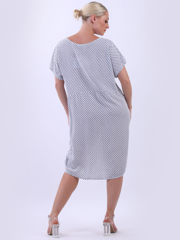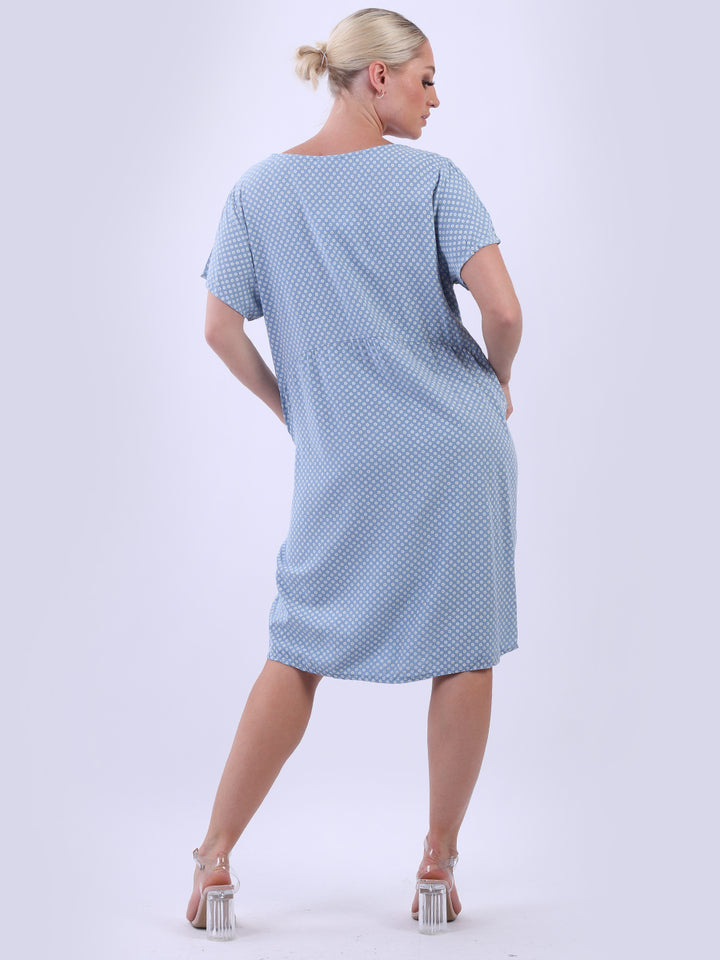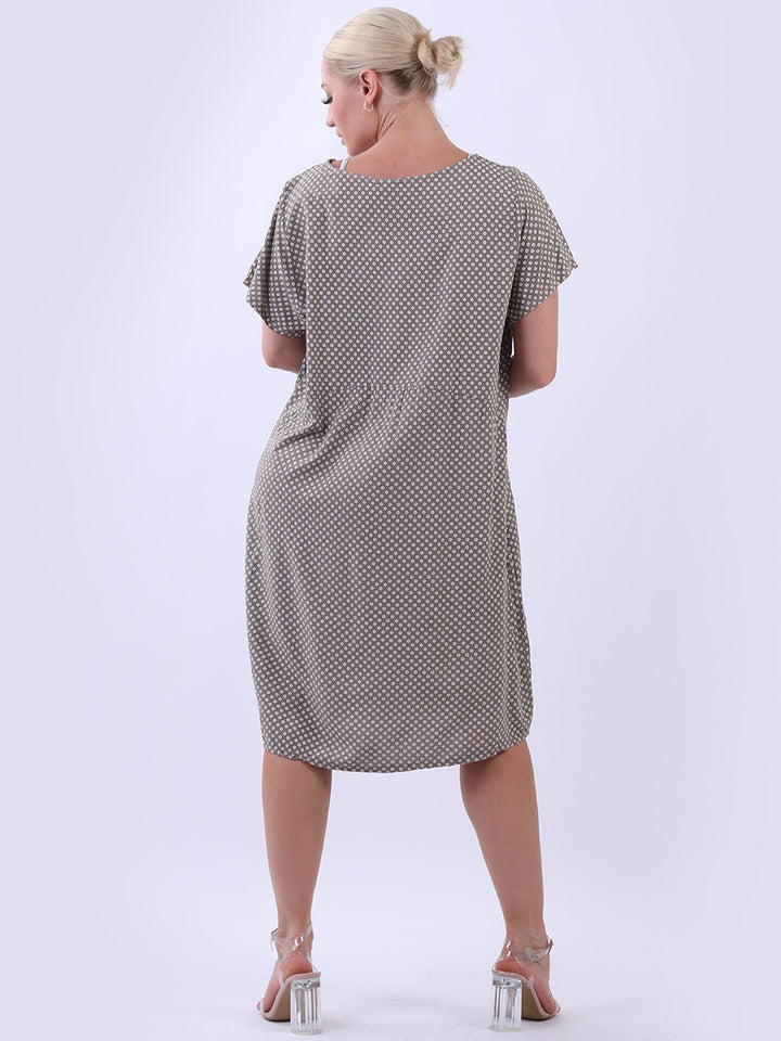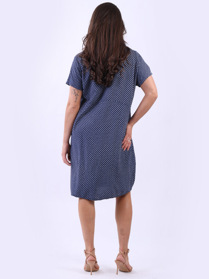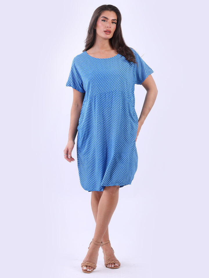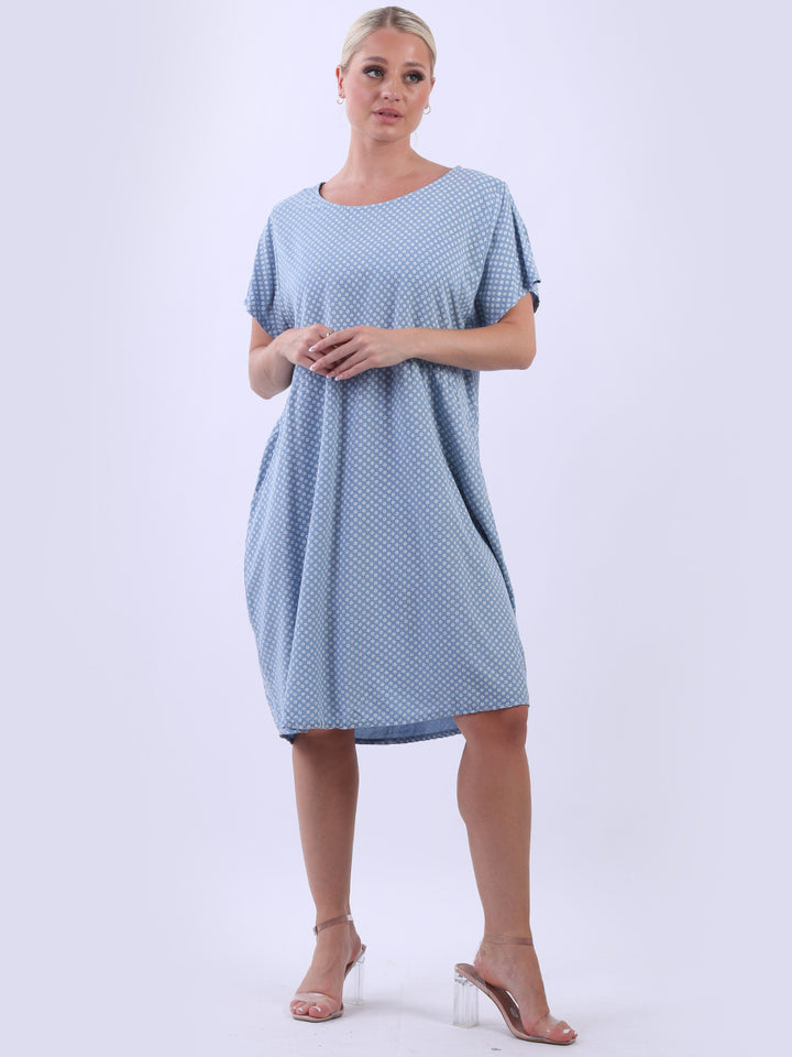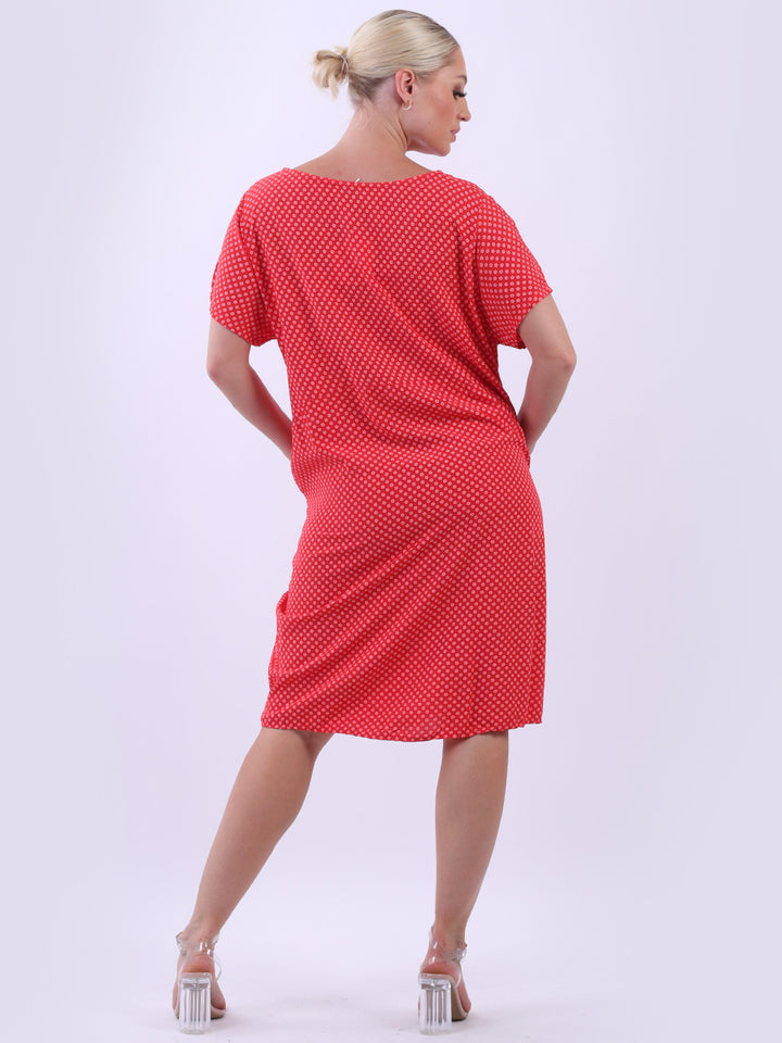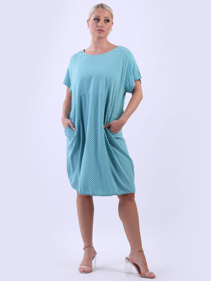 Redwholesale's latest collection features this Italian moda midi dress that has a stunning and iconic ditsy print to rock summer looks for women wearers. Made in Italy with the finest soft fabric mix, soft round neckline, baggy plus size fit and functional pockets, make the best of the season, giving an ideal choice for Italian women's casual fashion. Dress it with sneakers.