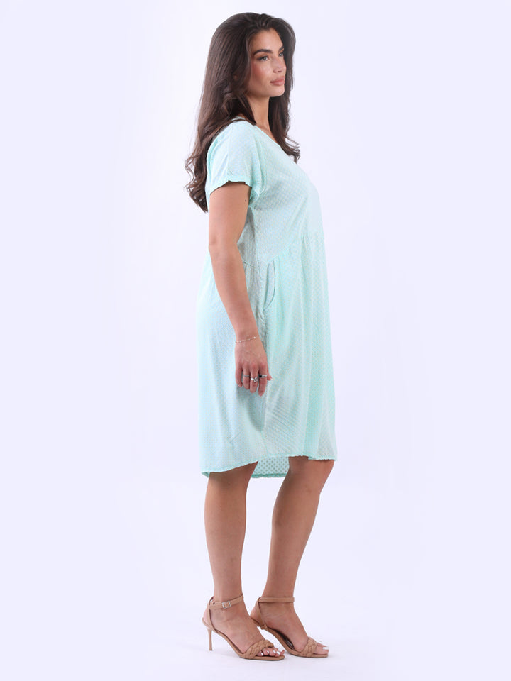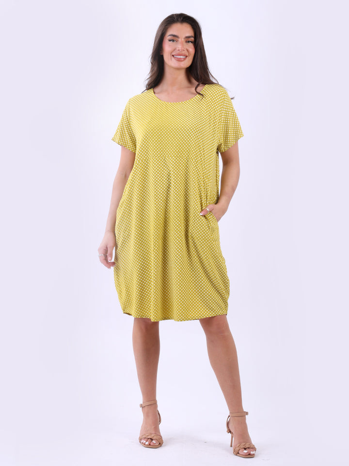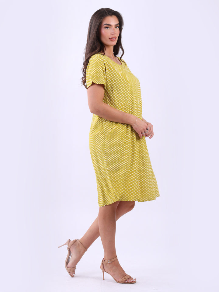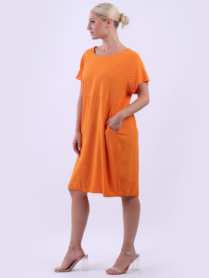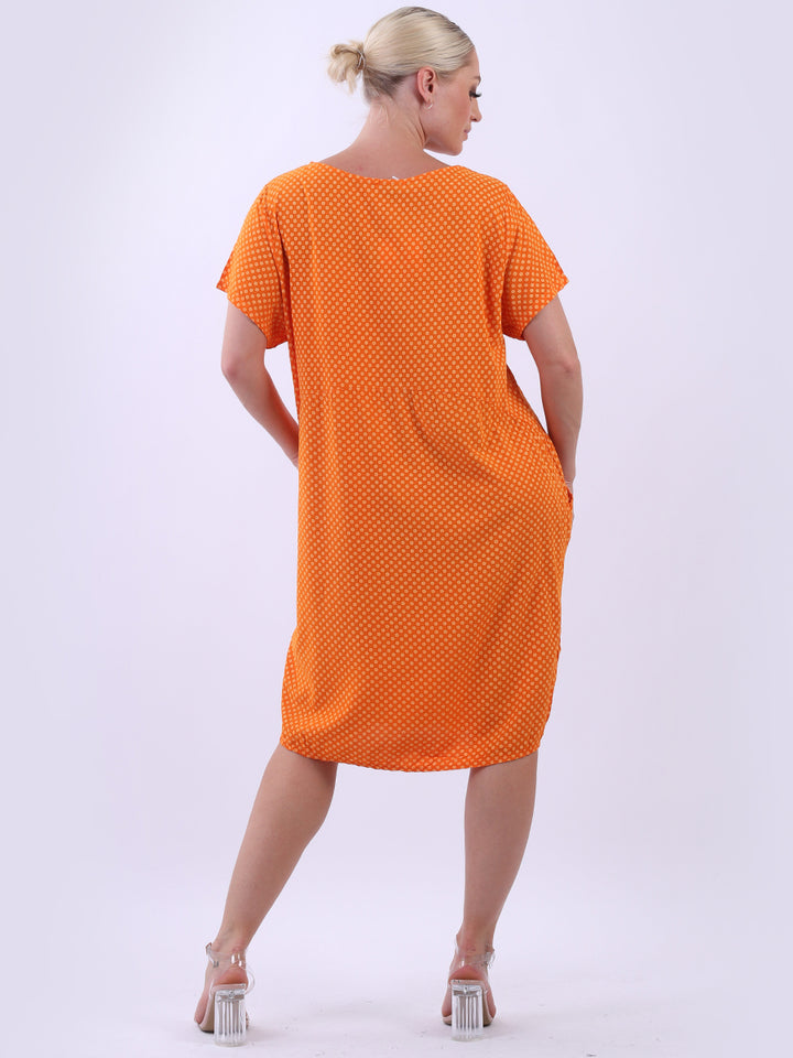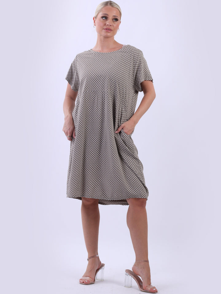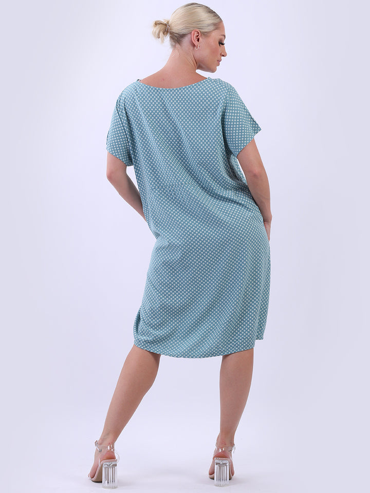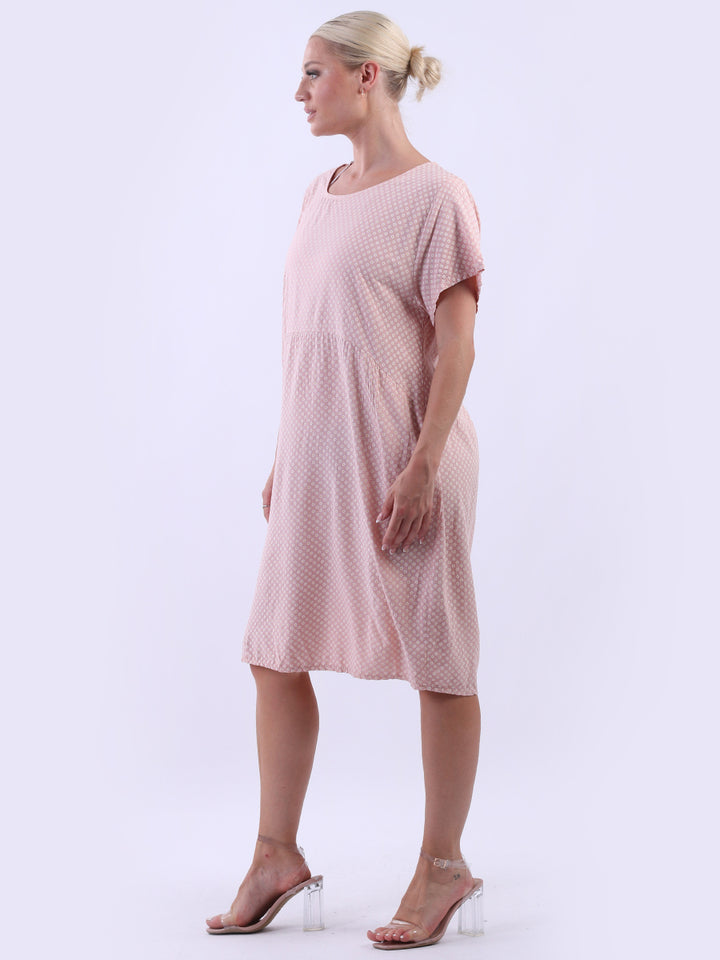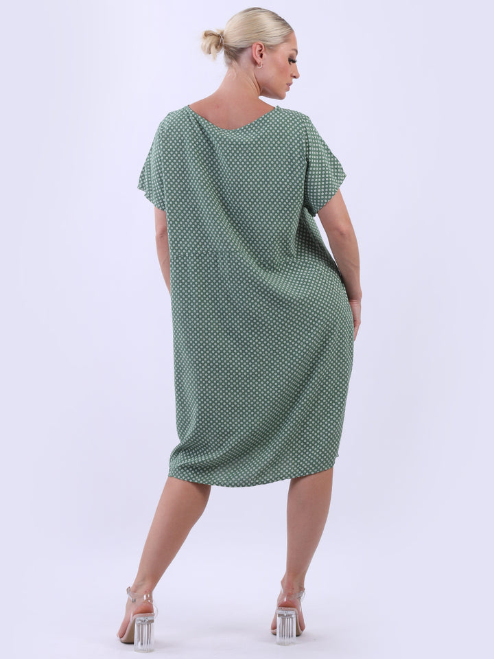Redwholesale's latest collection features this Italian moda midi dress that has a stunning and iconic ditsy print to rock summer looks for women wearers. Made in Italy with the finest soft fabric mix, soft round neckline, baggy plus size fit and functional pockets, make the best of the season, giving an ideal choice for Italian women's casual fashion. Dress it with sneakers.