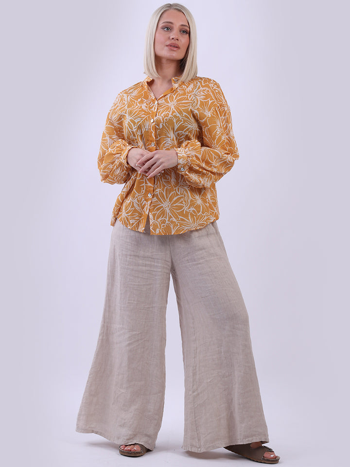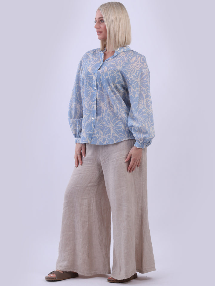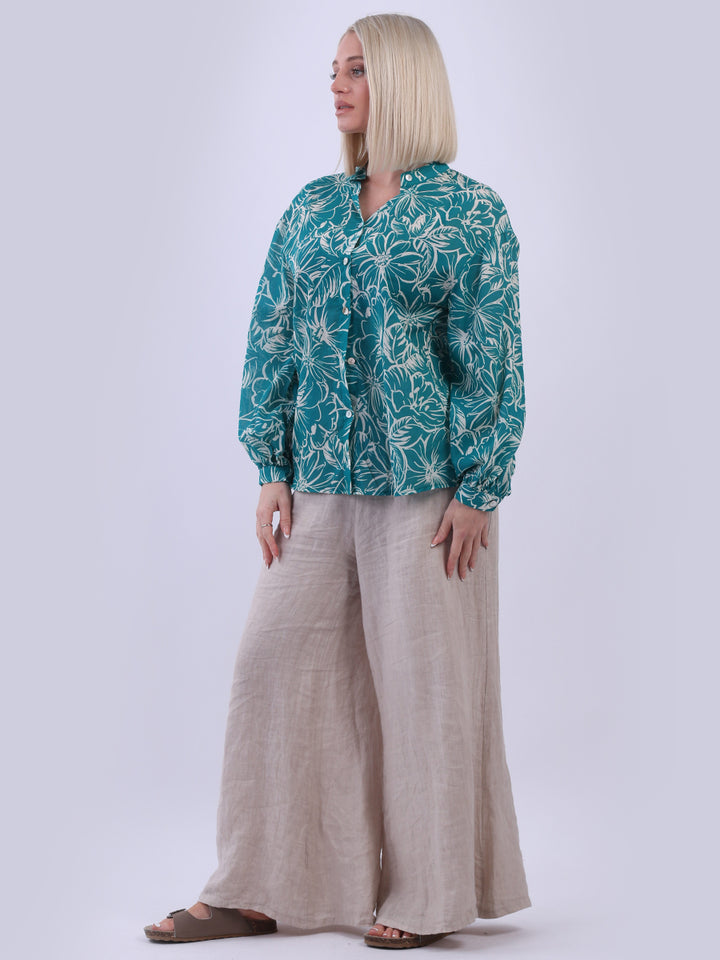 Refreshing and vibrant this carries all the seasonal bliss and freshness. Made in Italy with finest and high demand cotton ideal for all skin types, the band collar neckline with button fastening and baggy plus size fit, long cuff sleeves and front buttons makes it very formal and posh. Dress it with white wide leg trousers from Redhwolesale London and sneakers.