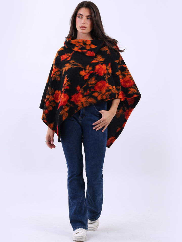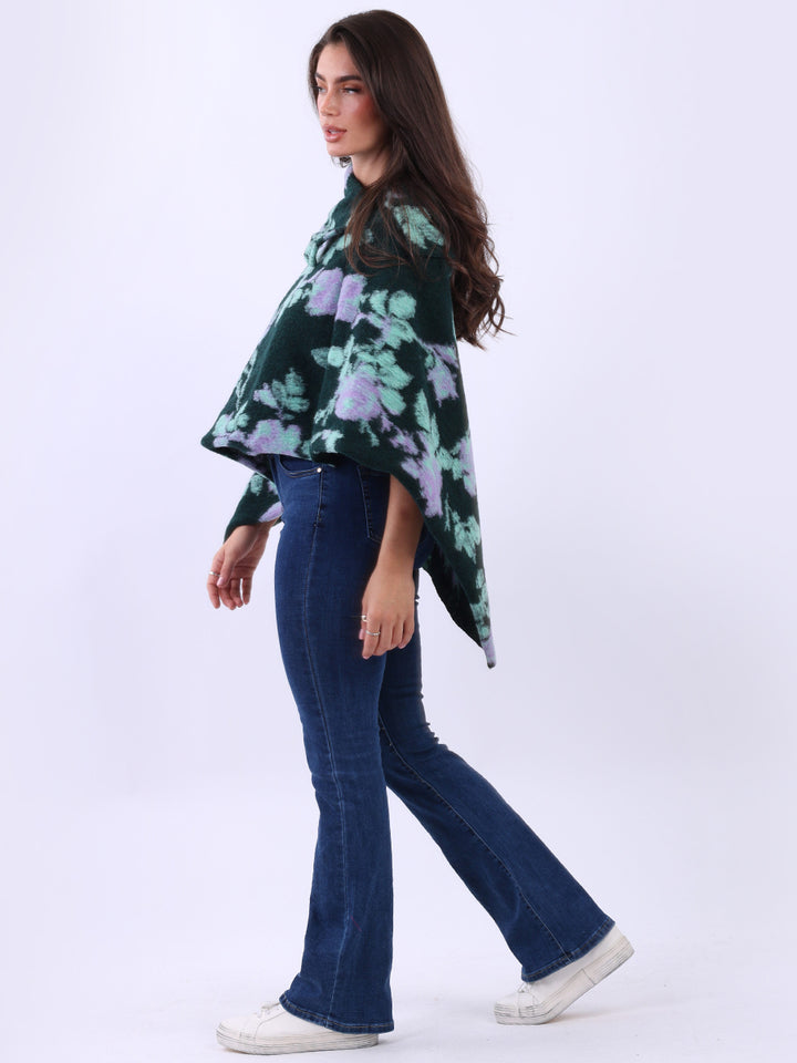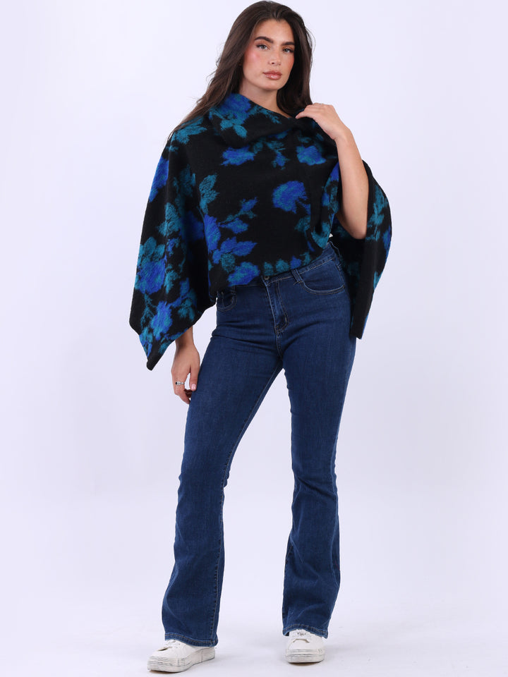 This batwing poncho, knitted in a gorgeous floral print is delicately made in Italy. Designed in a baggy fit with a stylish cowl neck and asymmetrical hem, it pairs excellently with skin-tight pants for a fashionable weekend look.