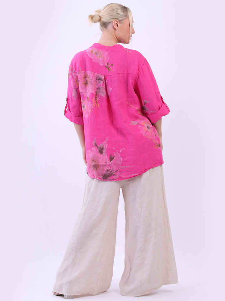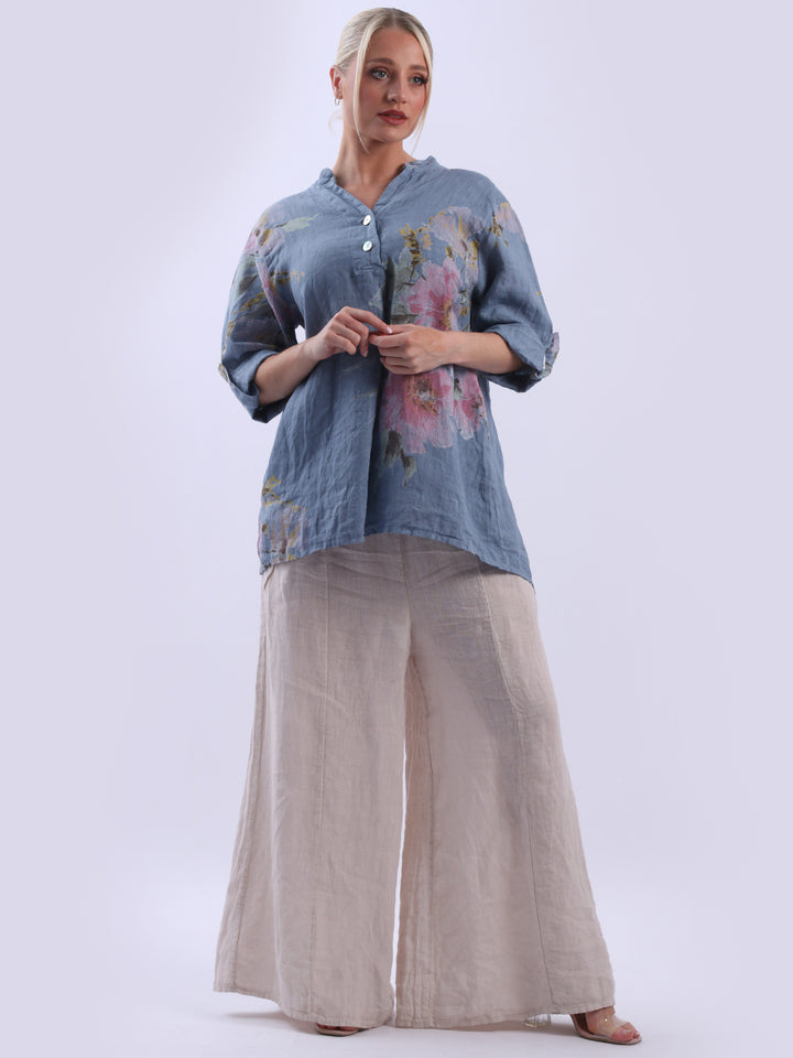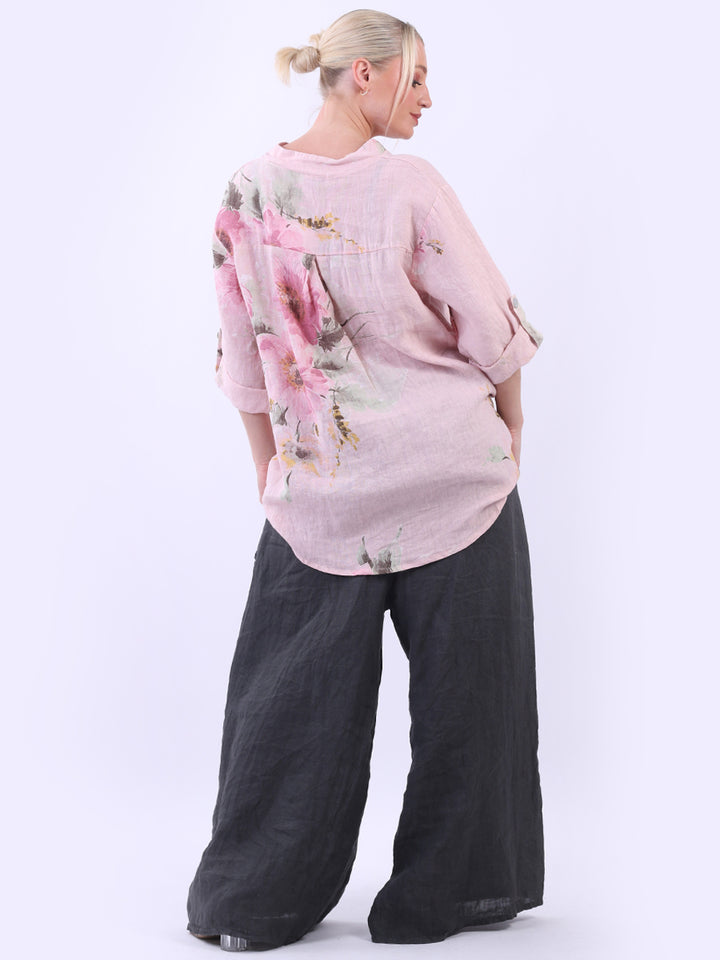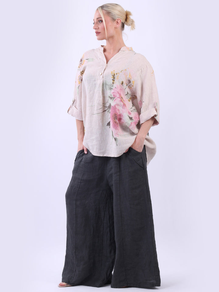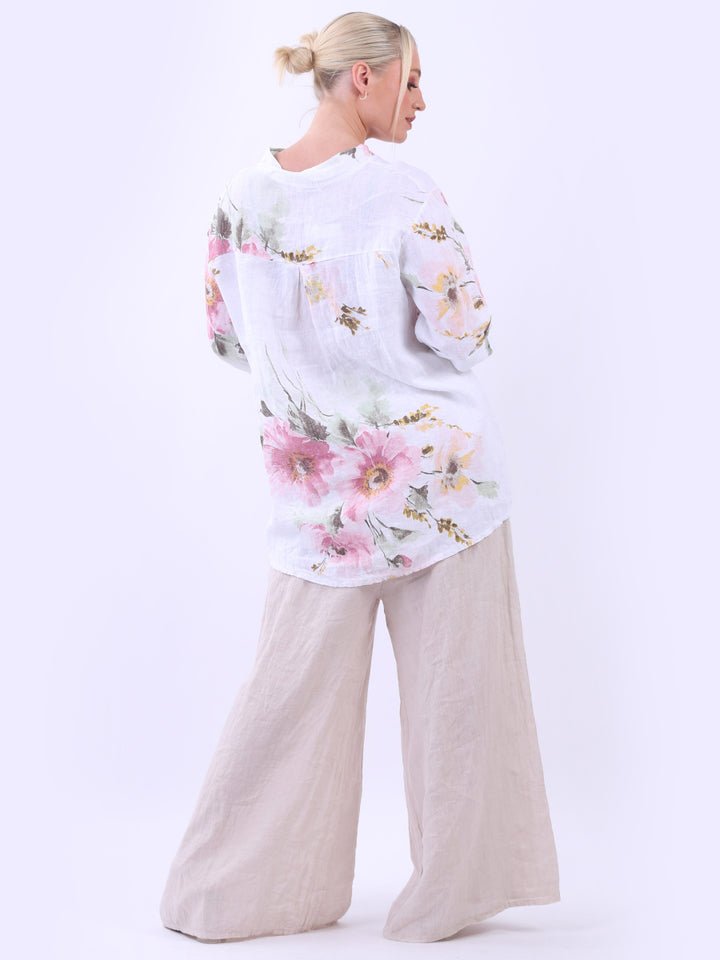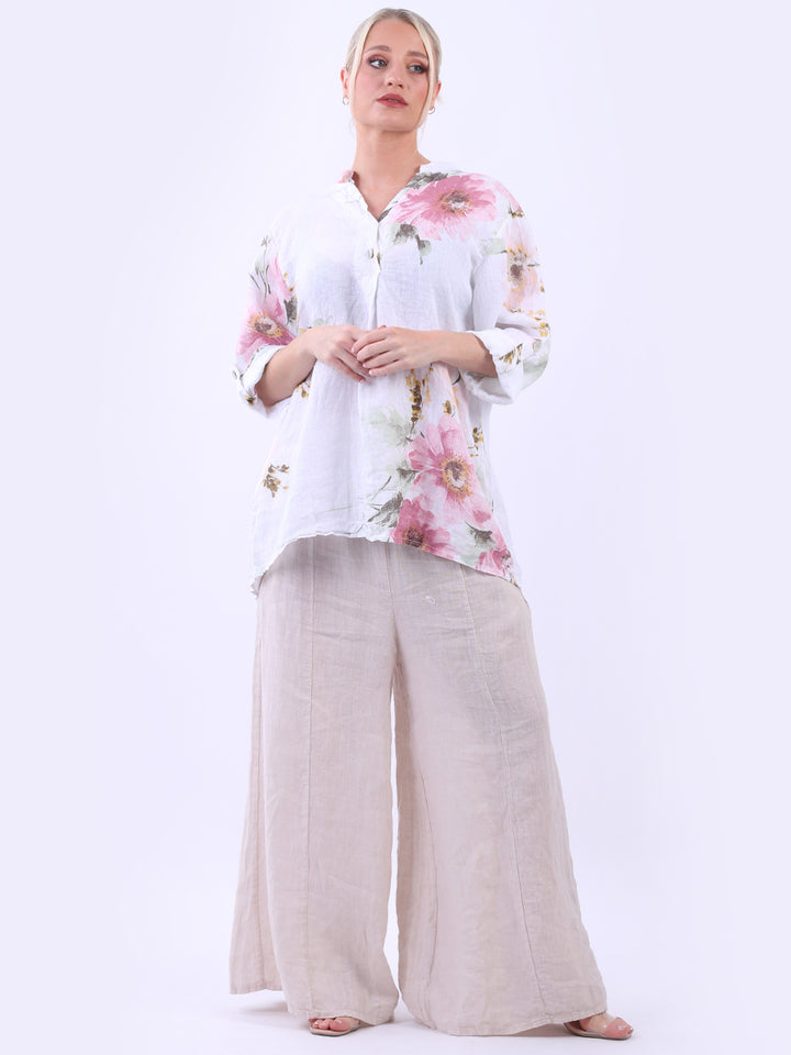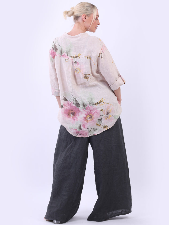 Made In Italy Floral Print Linen Baggy Tunic Top