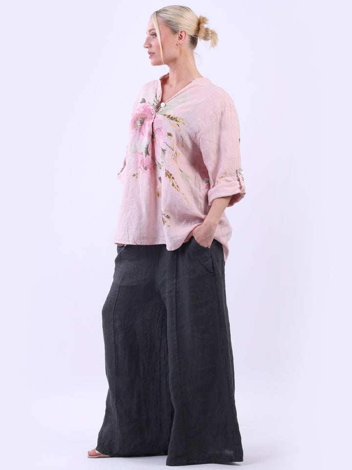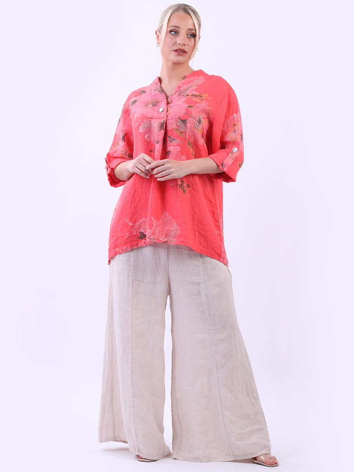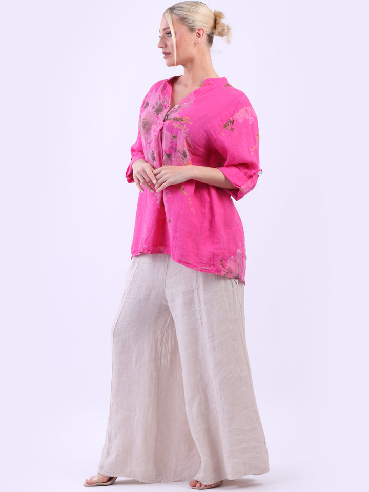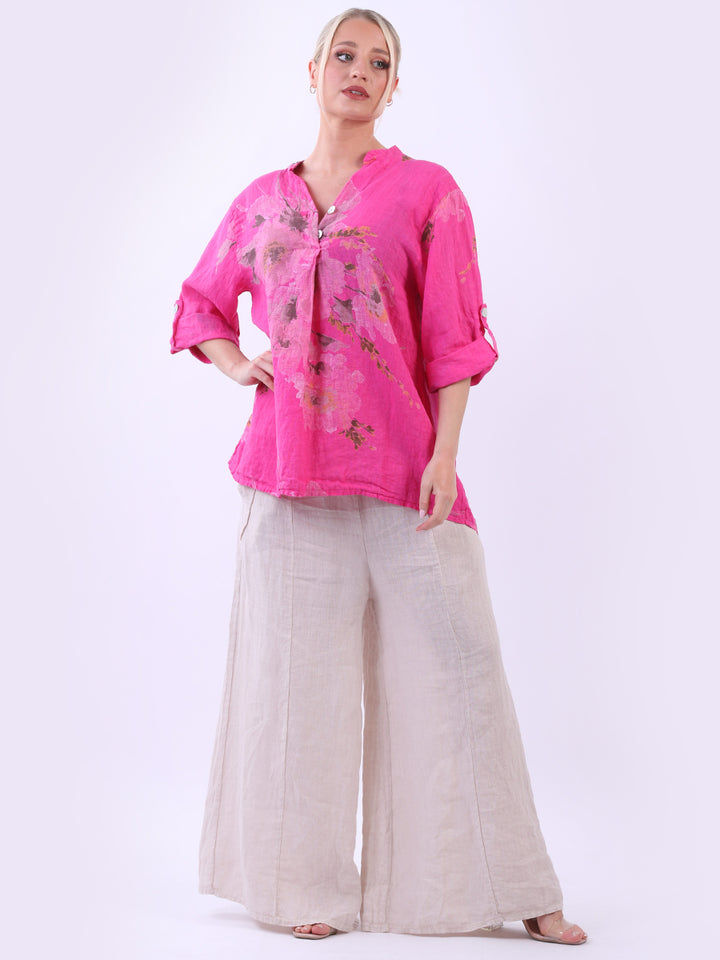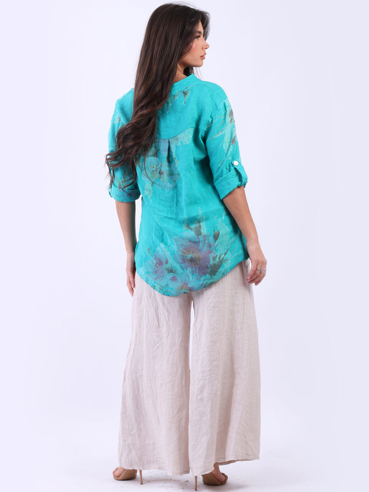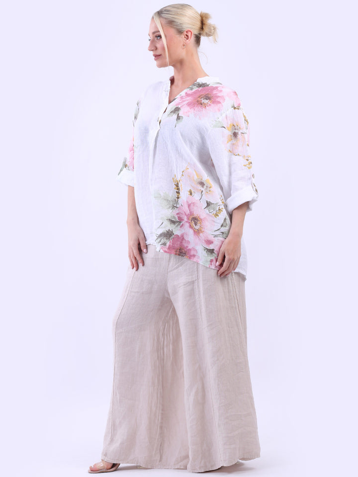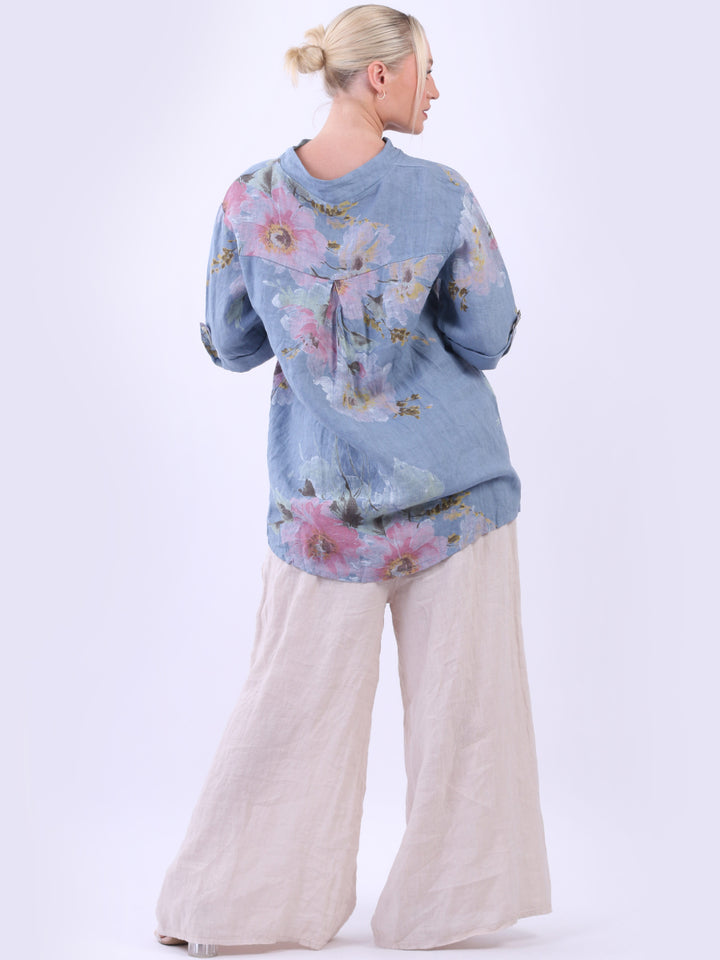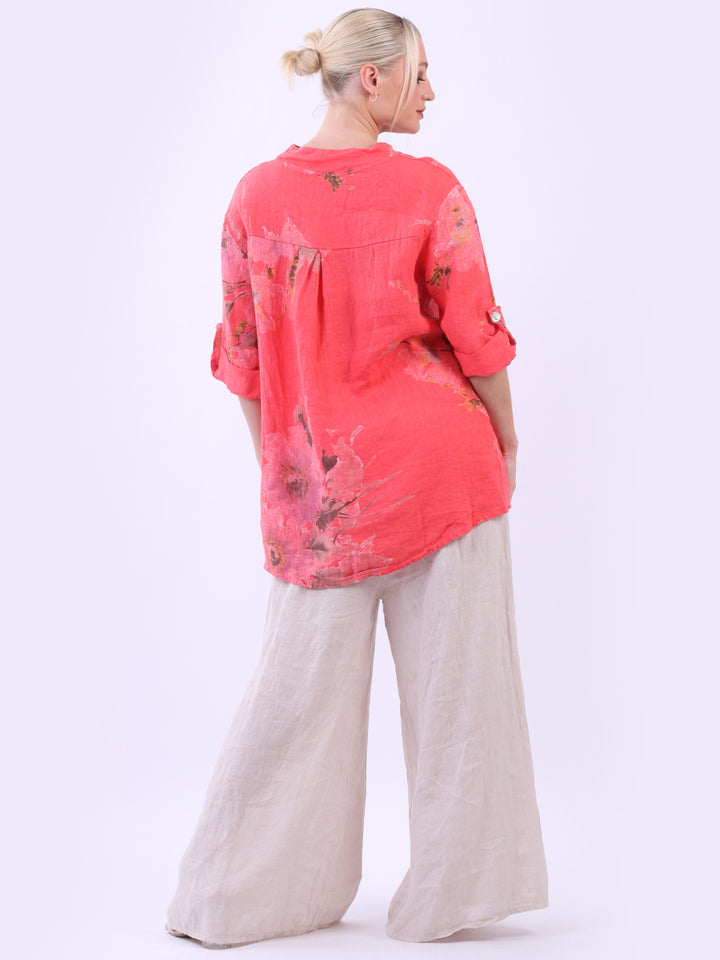 Made In Italy Floral Print Linen Baggy Tunic Top
