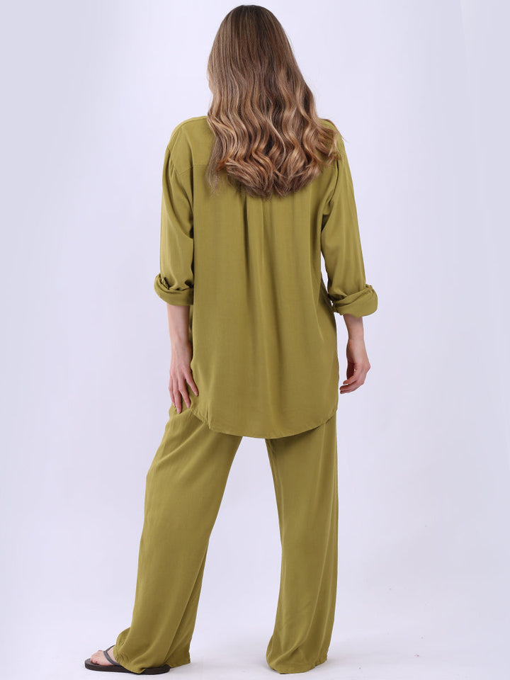 This lightweight loose fit button down shirt from Italy is like a breath of fresh air for women wearers fall wardrobe. It is versatile enough to be dressed up or down, thanks to its sleek, sophisticated features like collared neck, front button enclosure and long cuffed sleeves. Ladies can pair it with jeans for a casual walk or tuck it in dressy pants for an office look, either way it is desirable.