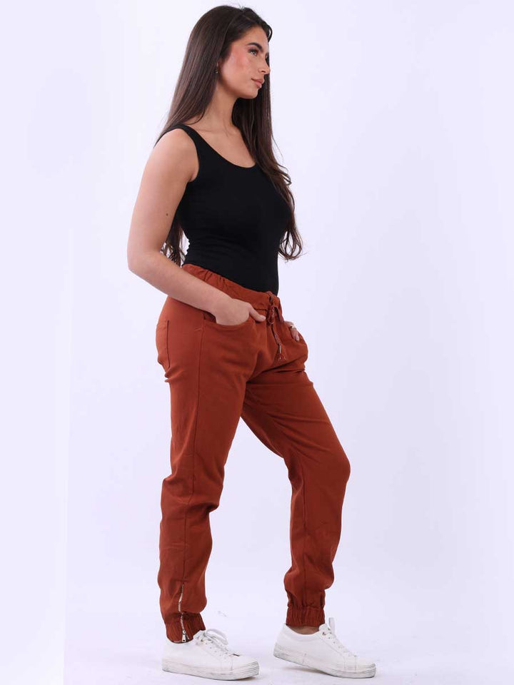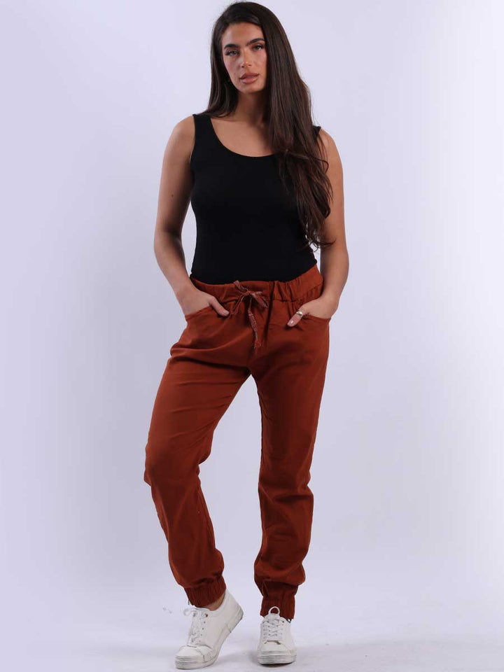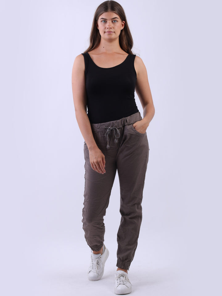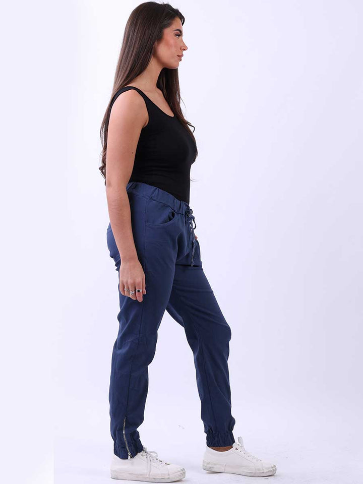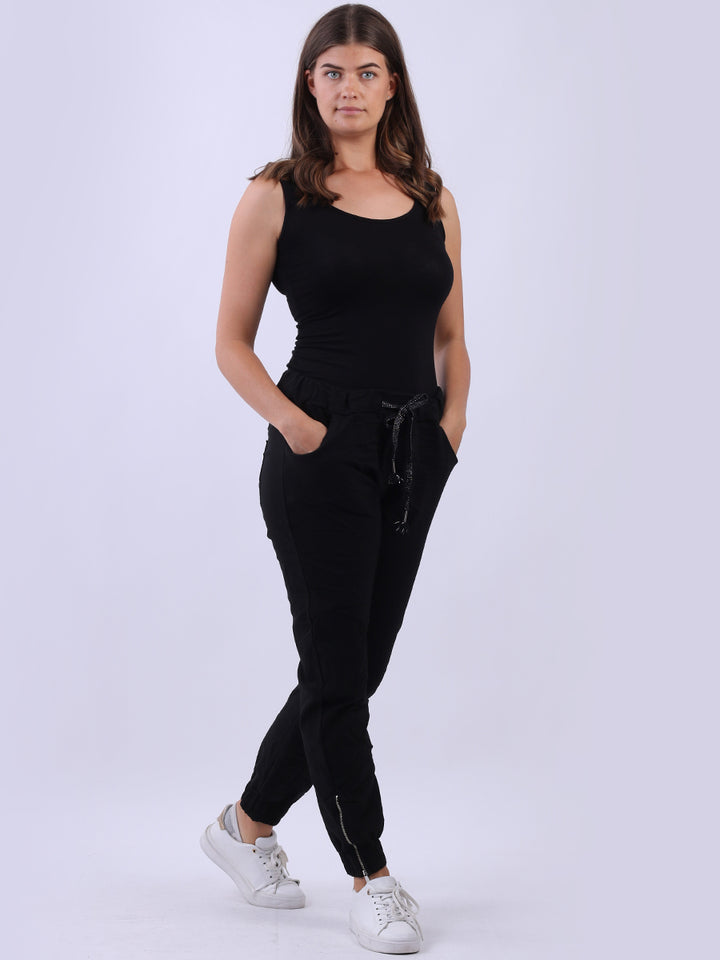 Essential for the wardrobe that makes women wearers admire the beauty within. Made in Italy with high quality fabric blend the pant have laidback features like adjustable waist belt, ruched ankles with zip fastening and functional pockets. Dress it with tropical print sequin top by Redwholesale London.