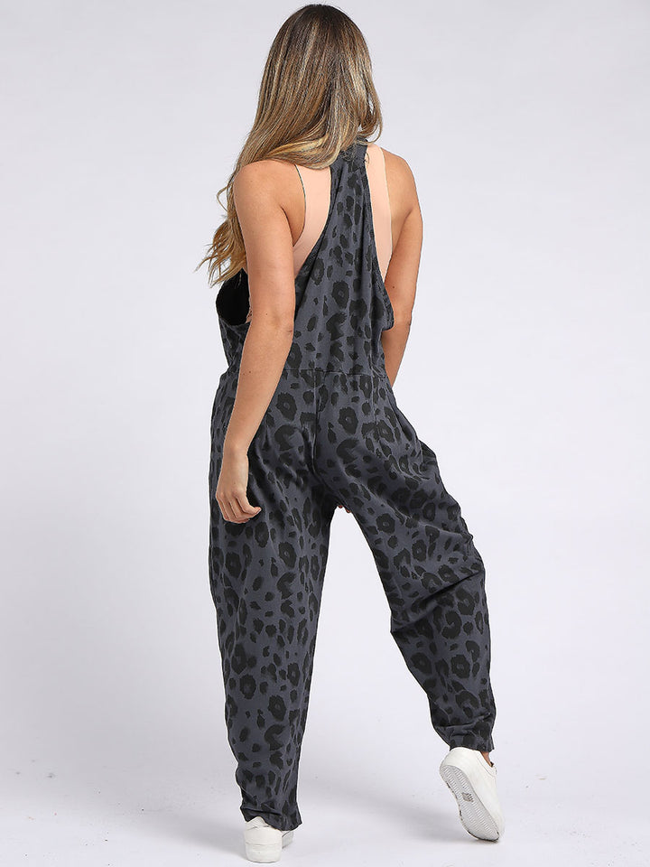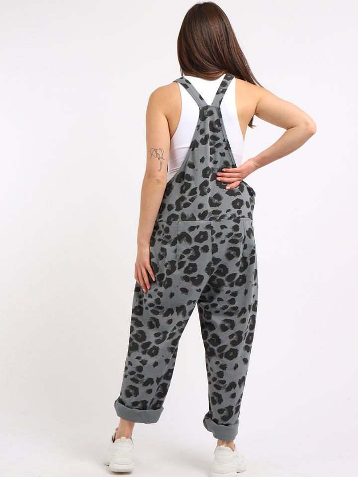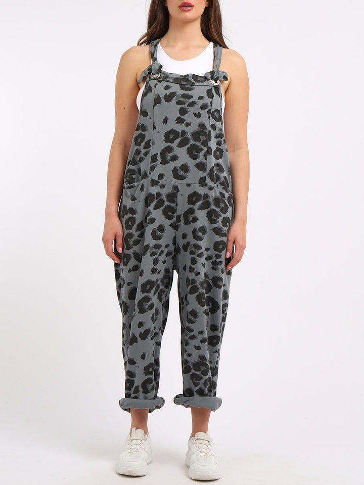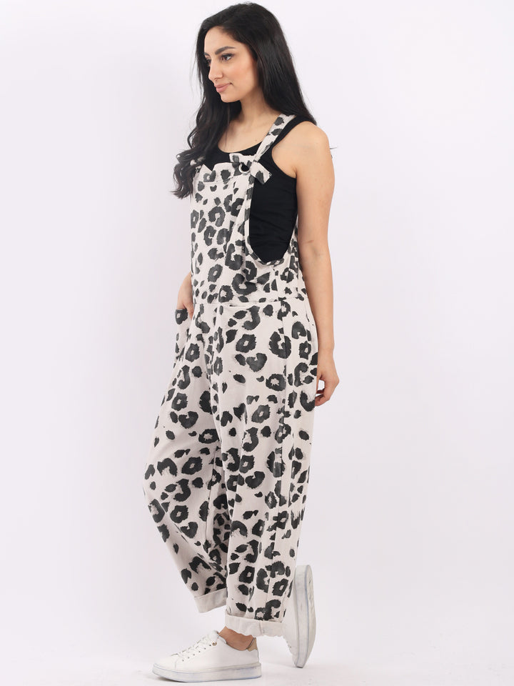 Made In Italy Leopard Print Cotton Lagenlook Dungaree