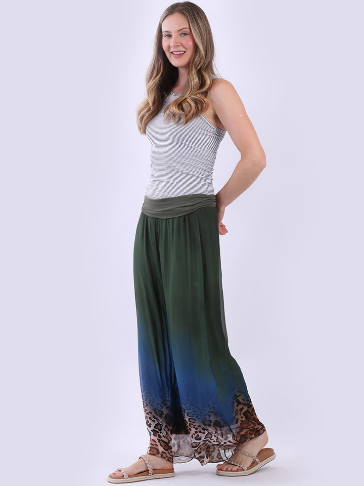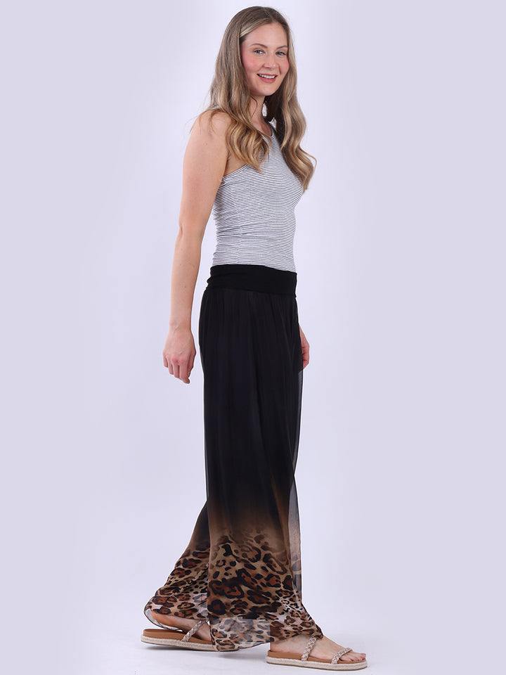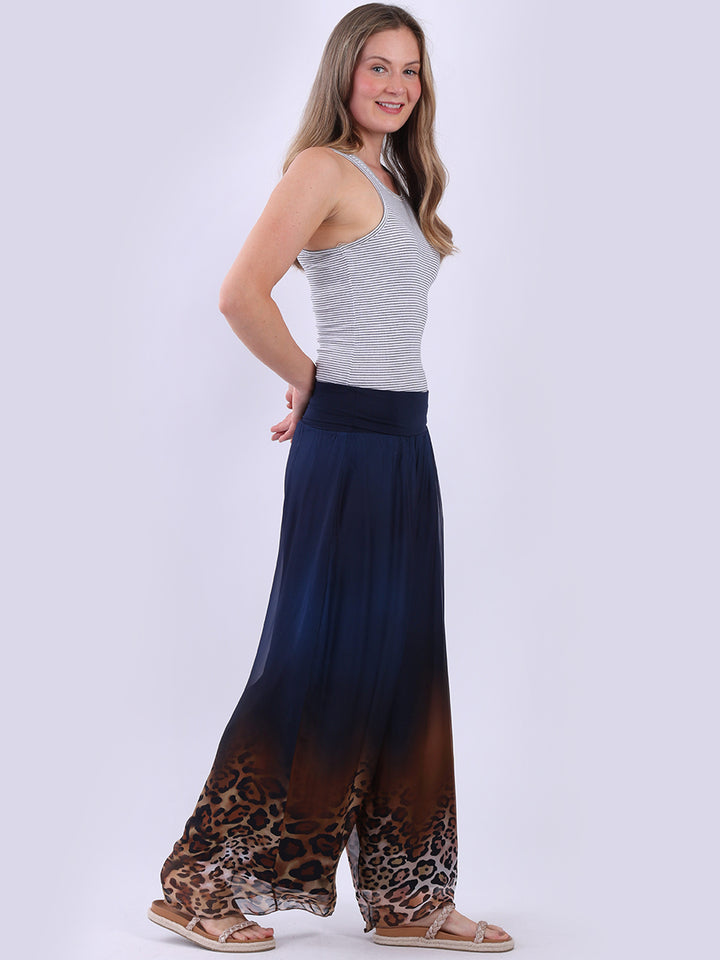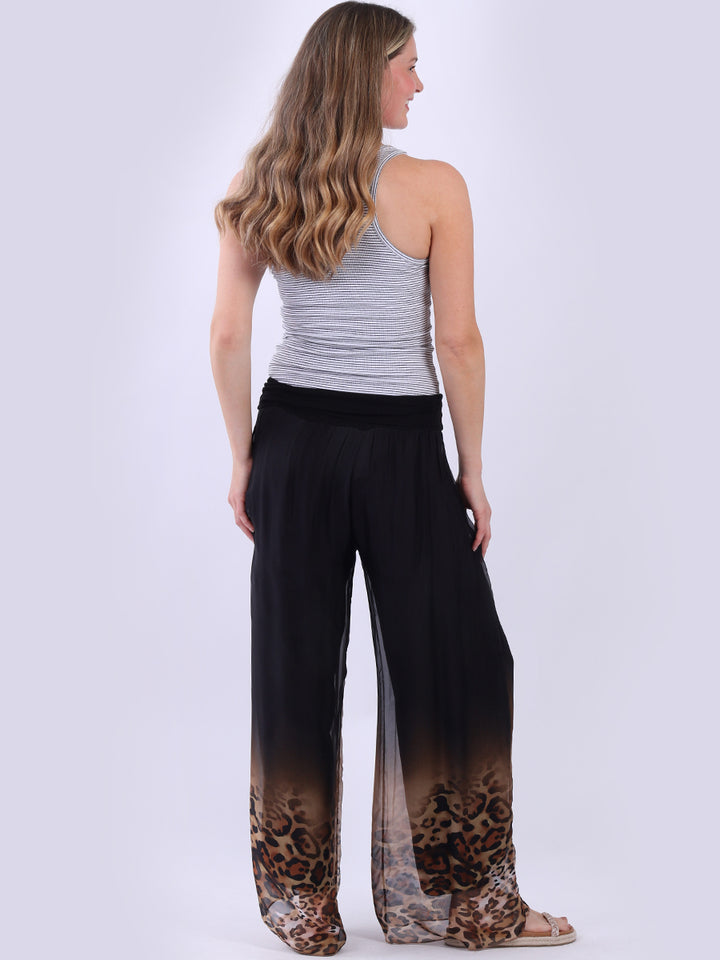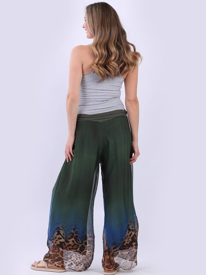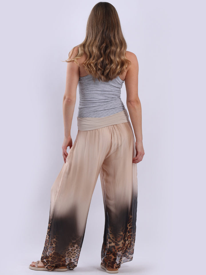 Italian Contrast Leopard Print Wide Leg Silk Trouser