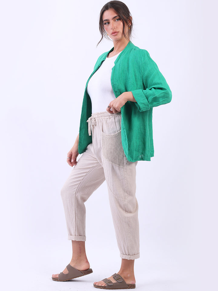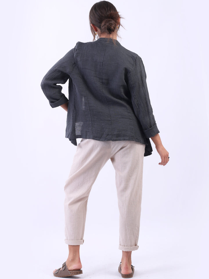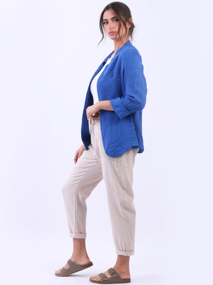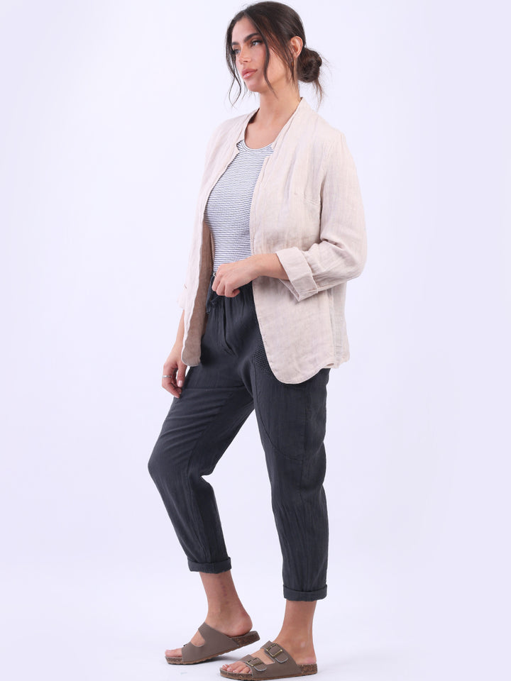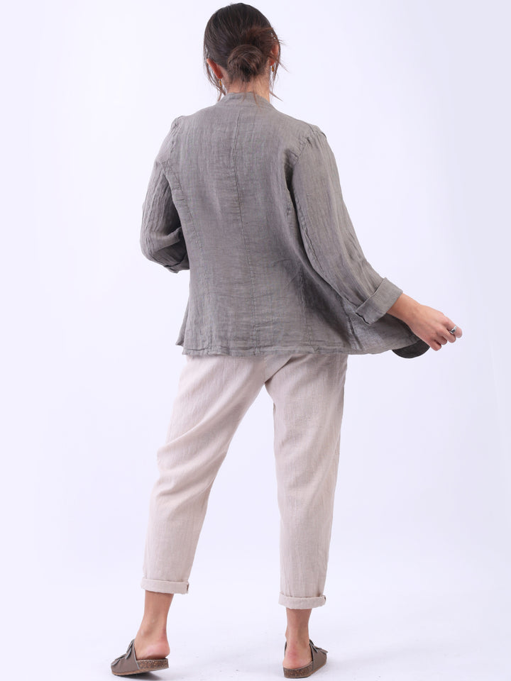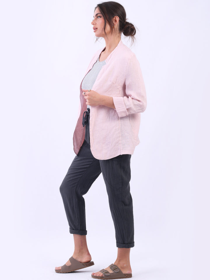 Made In Italy Open Front Ladies Lagenlook Linen Jacket