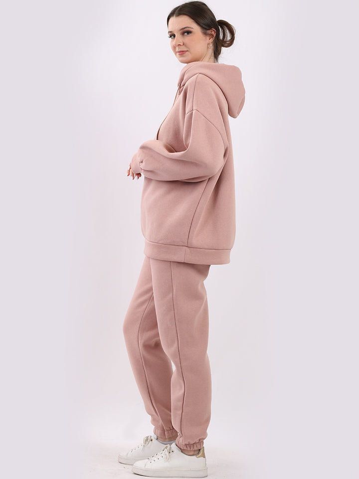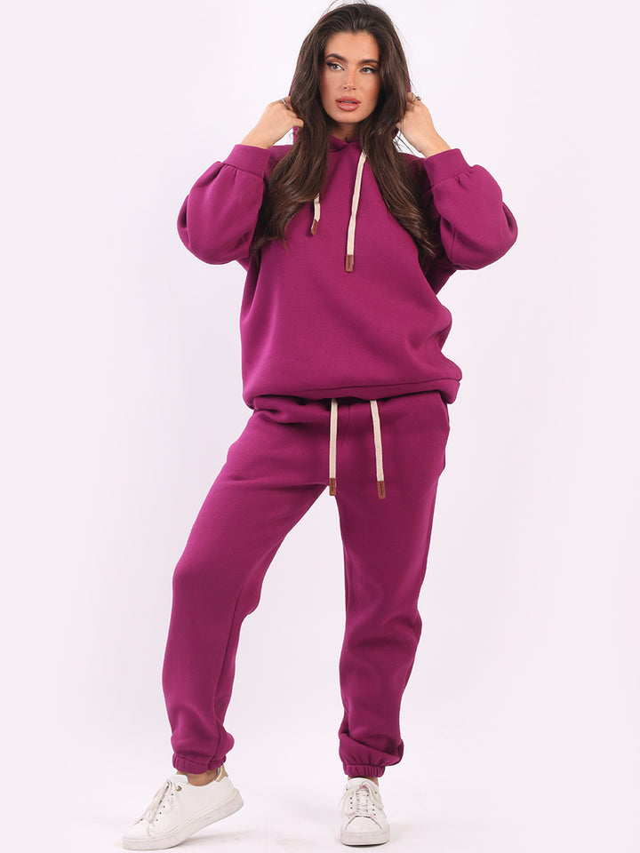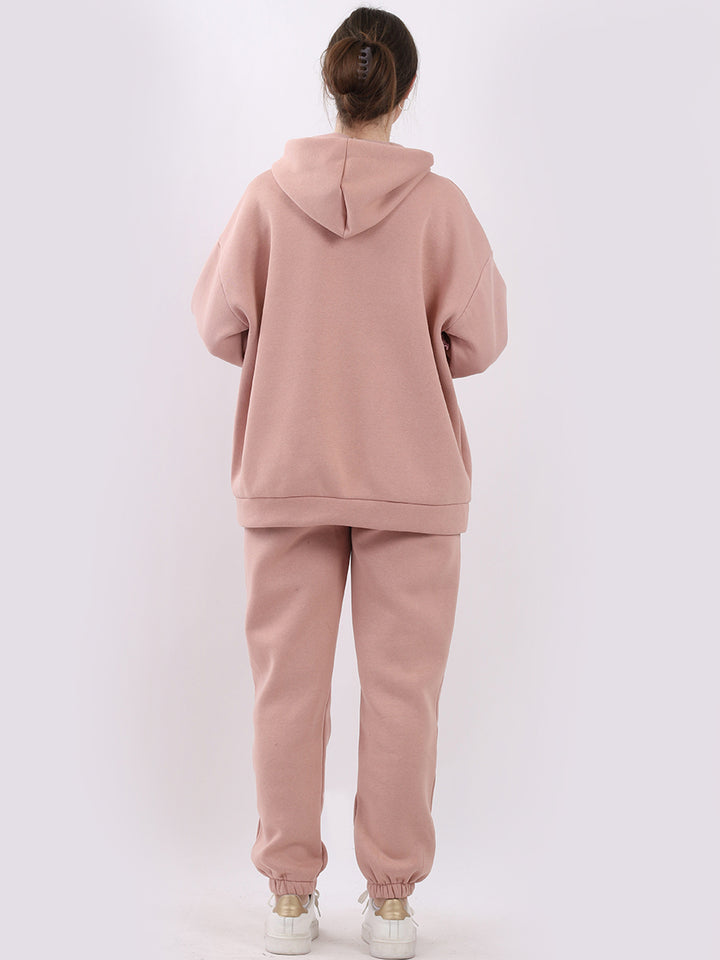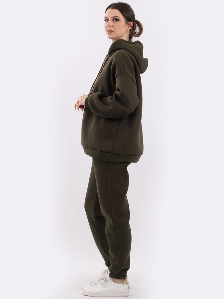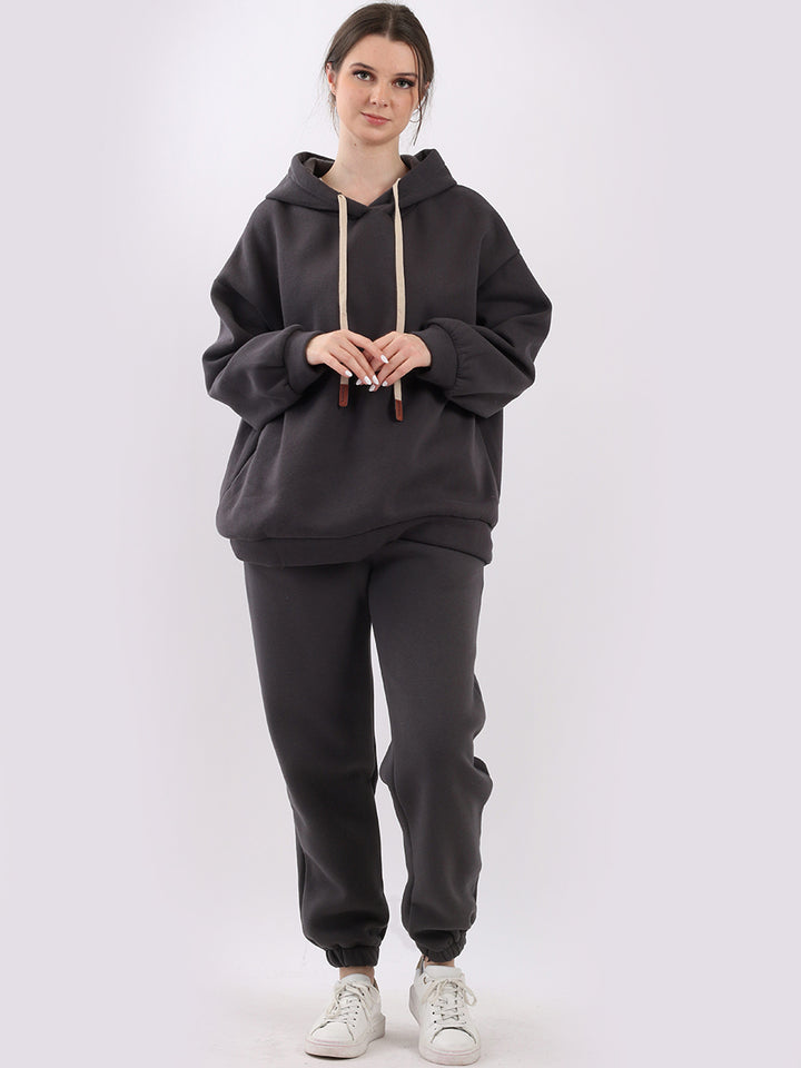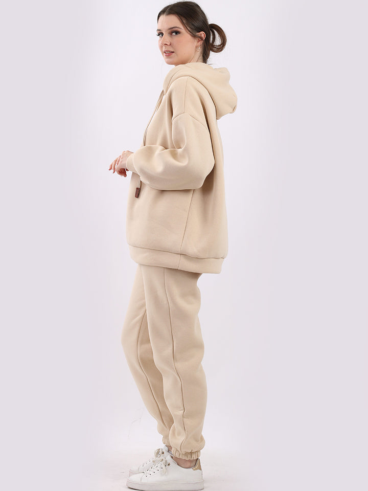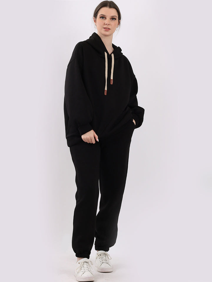 Made In Italy Plain Cotton Lagenlook Boxy Fleece Hoodie