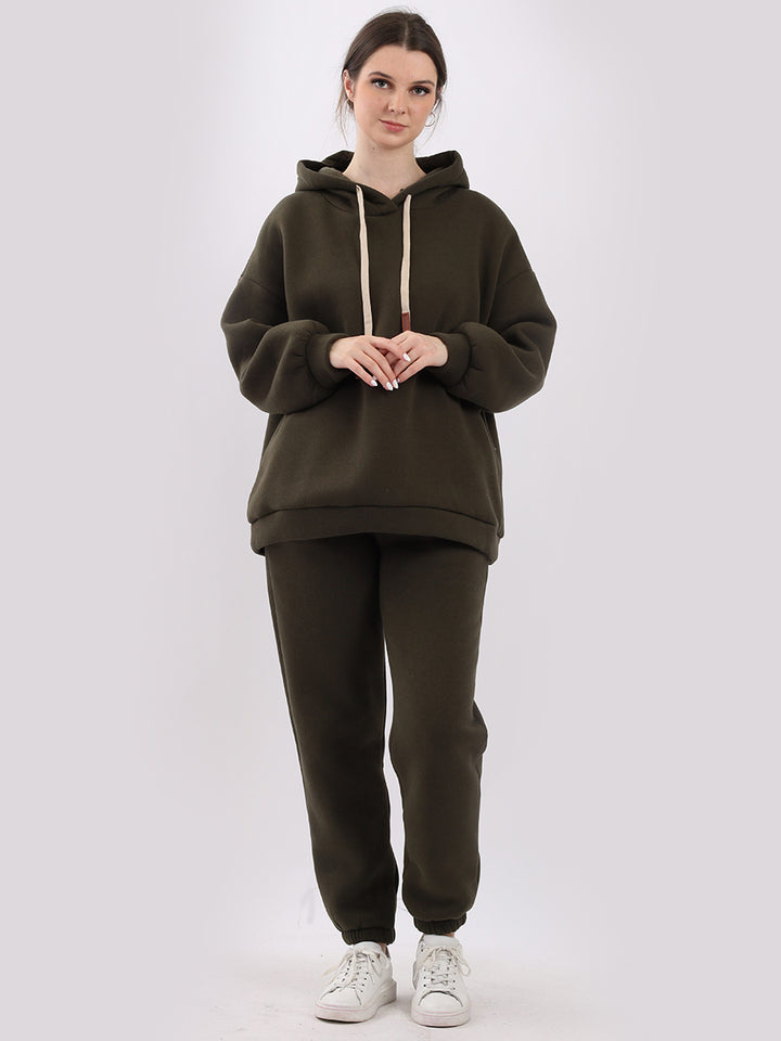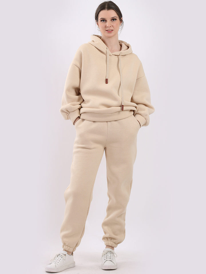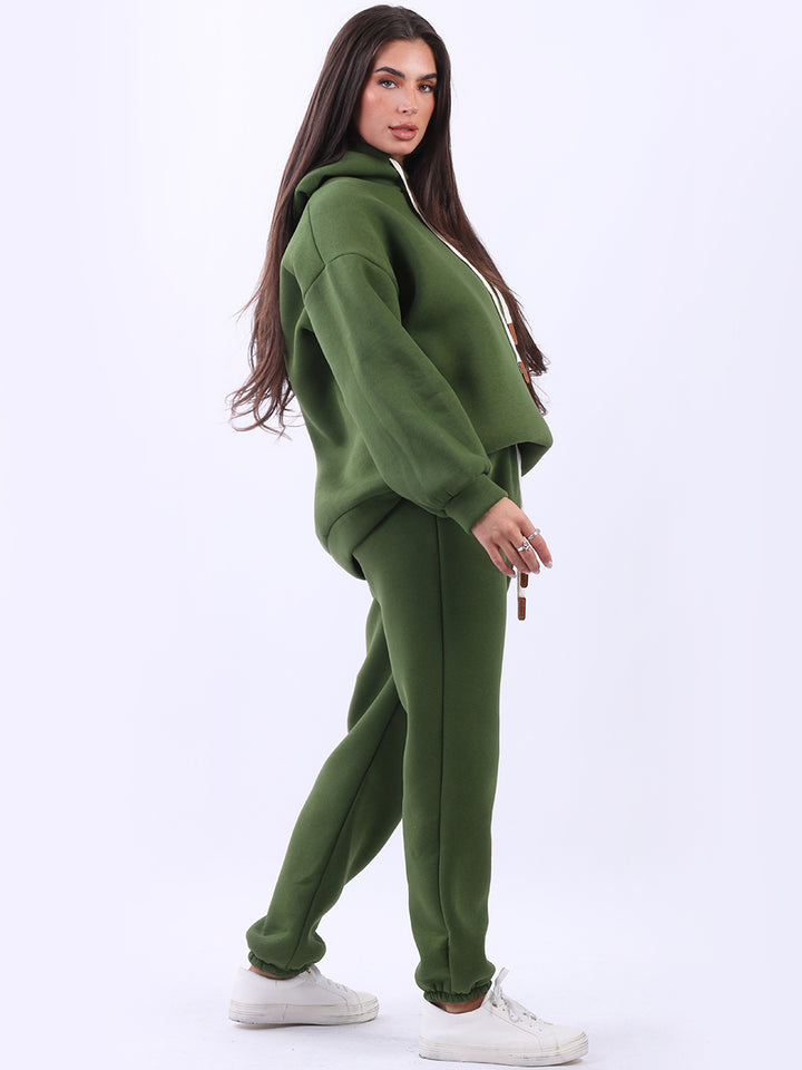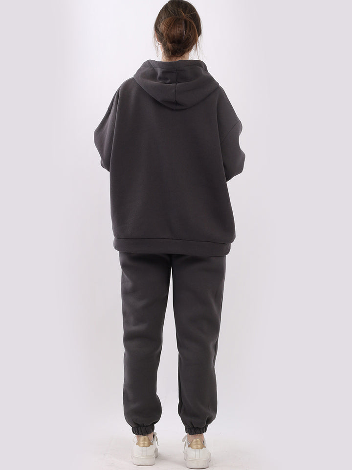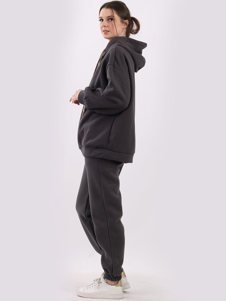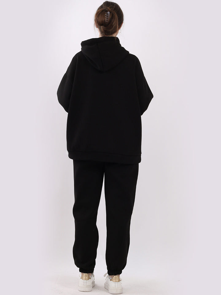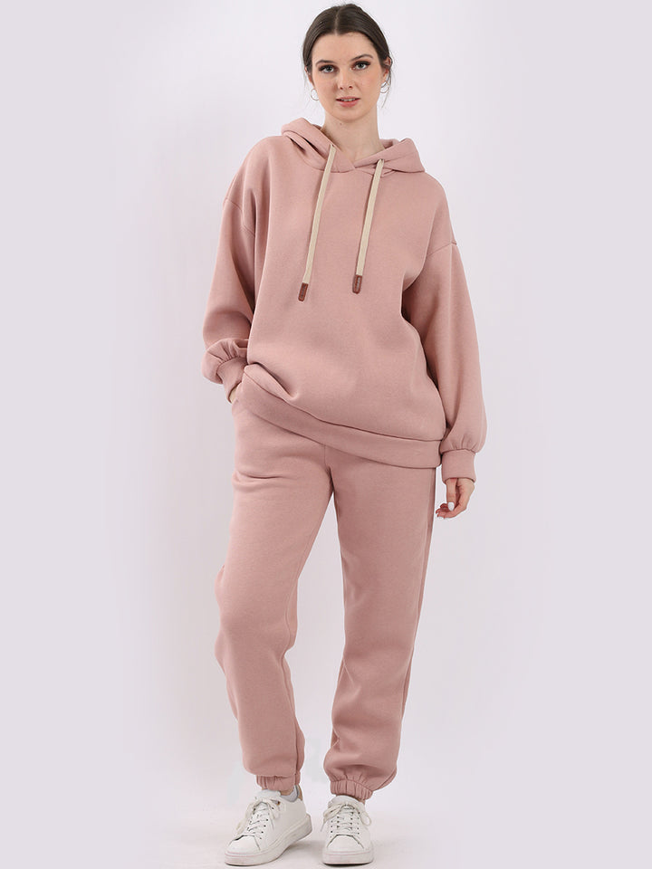 Made In Italy Plain Cotton Lagenlook Boxy Fleece Hoodie