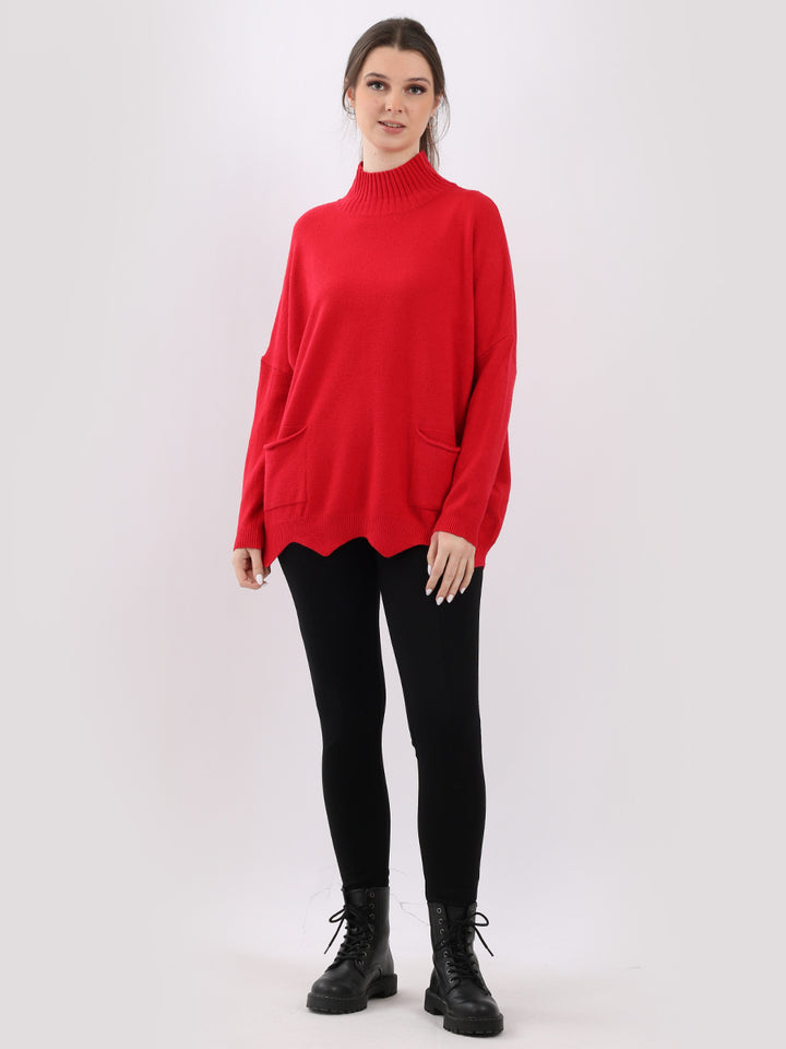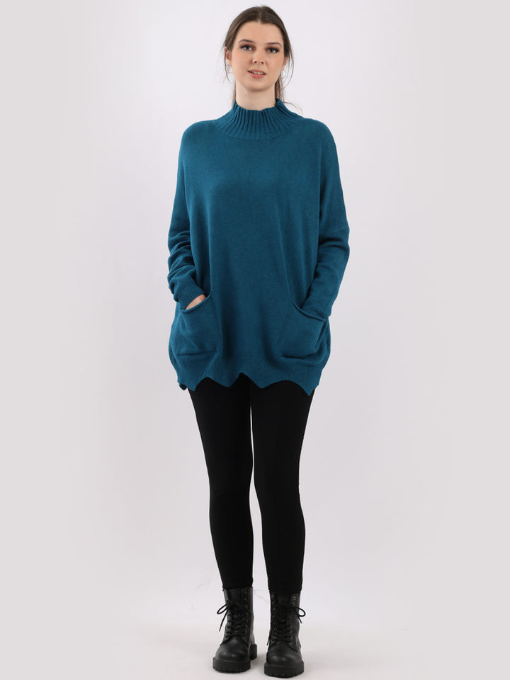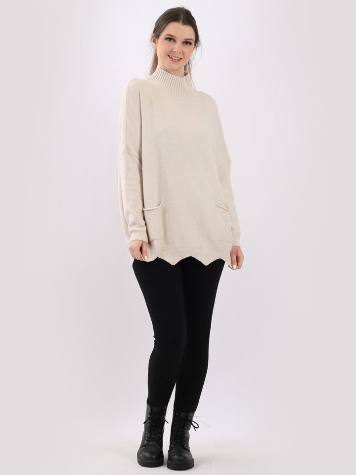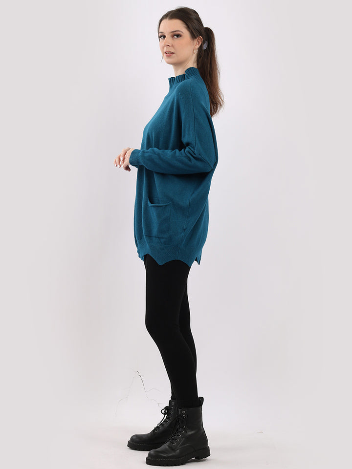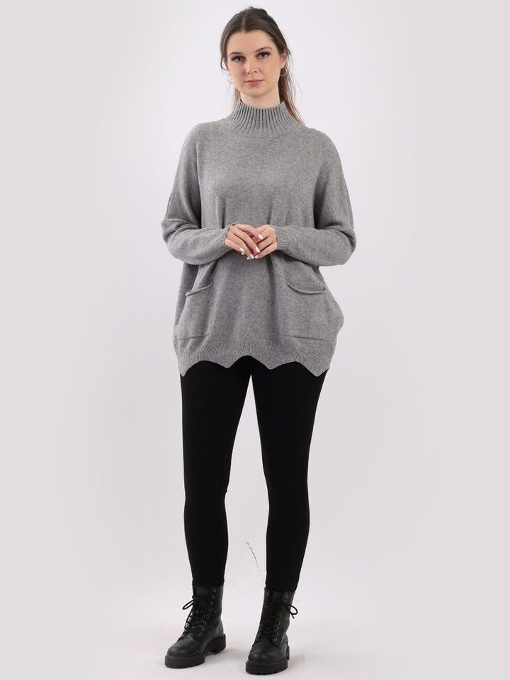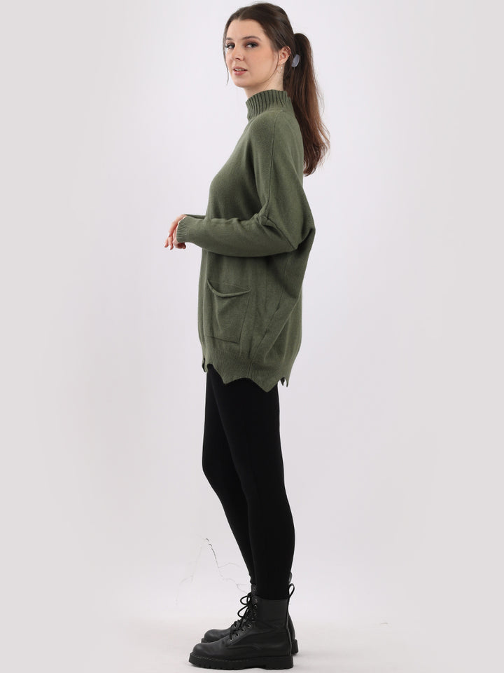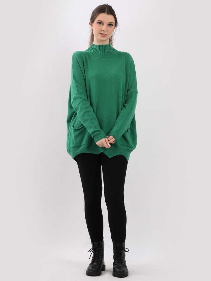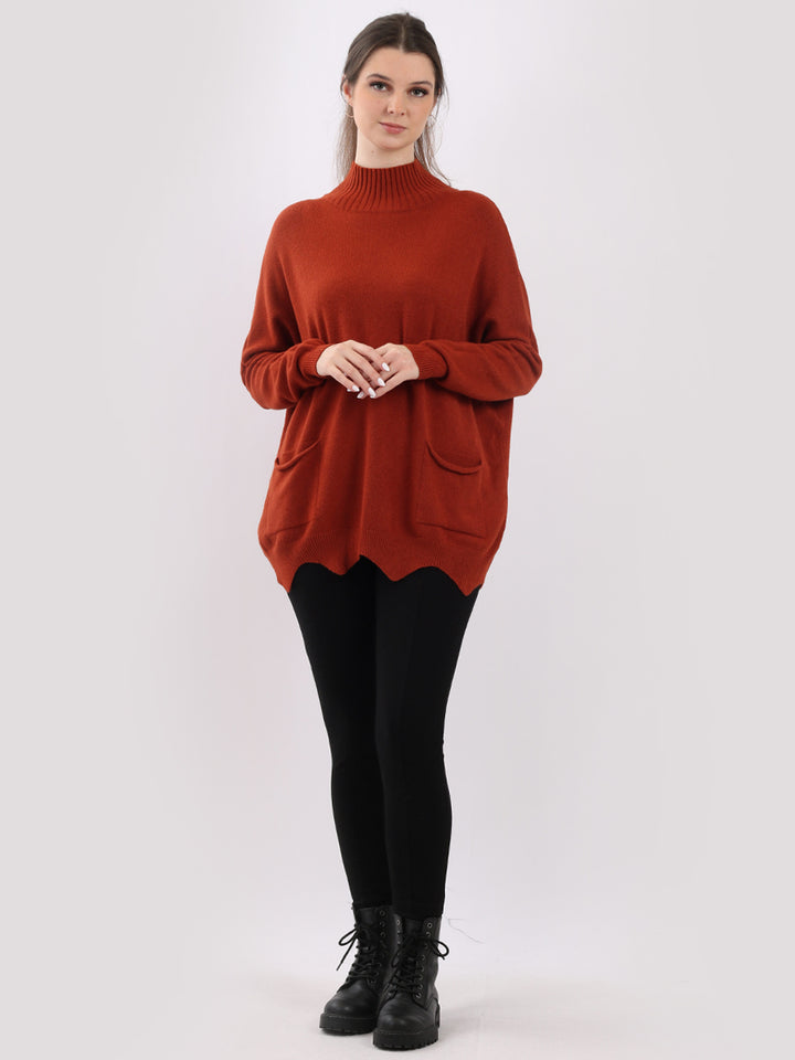 Stylish and chic this made in Italy top has all the desired characteristics of women wearers’ favorite. Features that inspire and enhance the look like lush and posh looking funnel neckline, baggy plus size fit with soothing fall ready colors, long sleeves and front pockets. Dress it over wide leg pants and high heels with cross body bag.