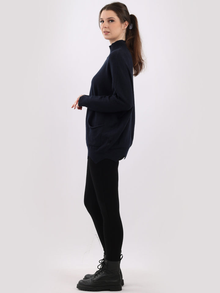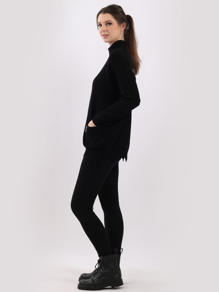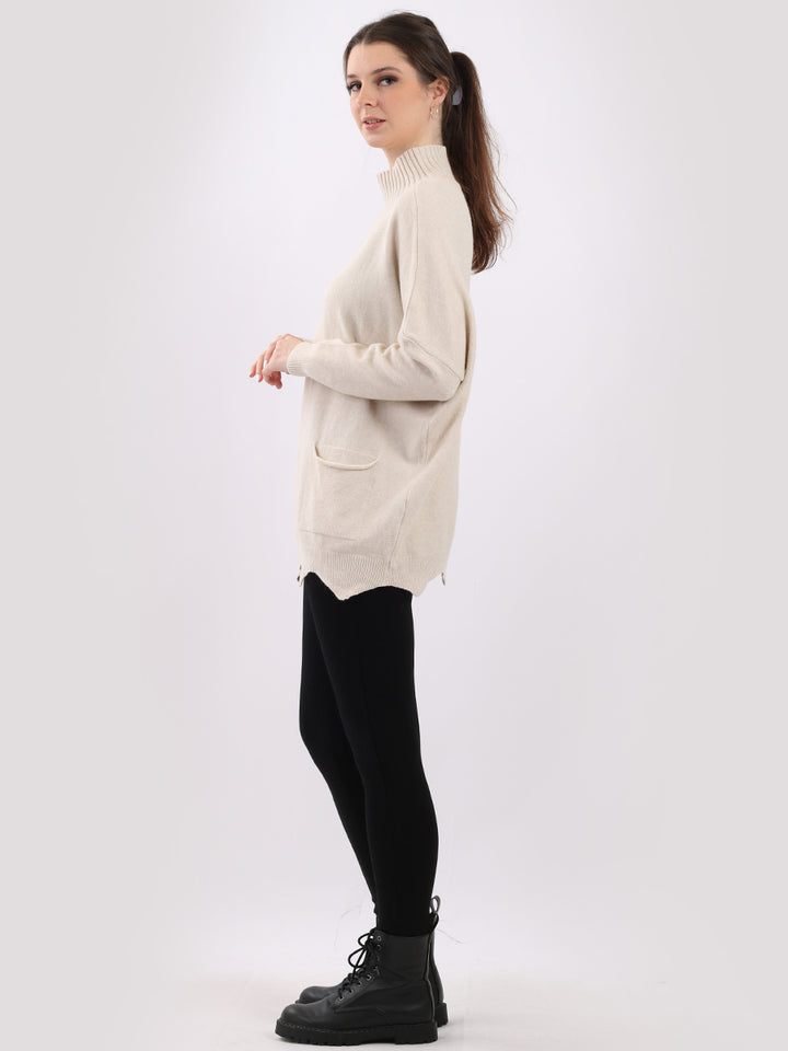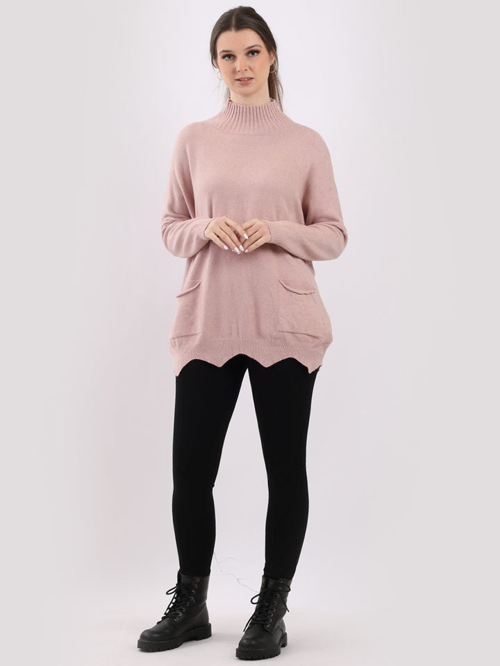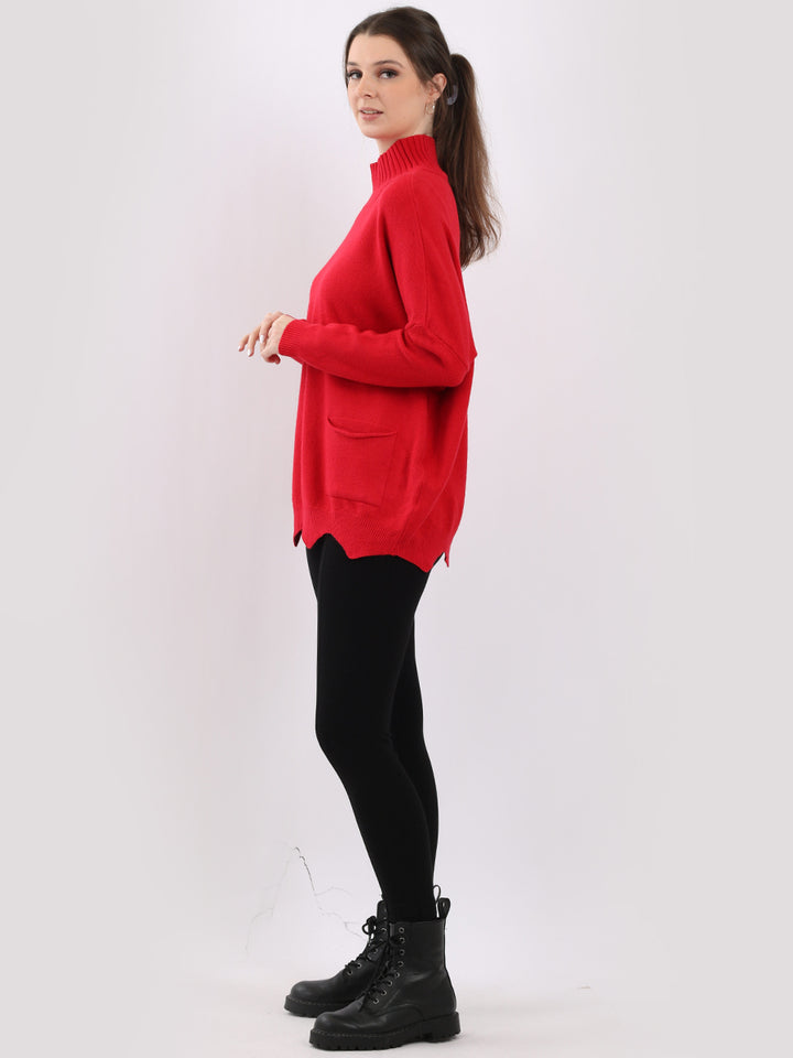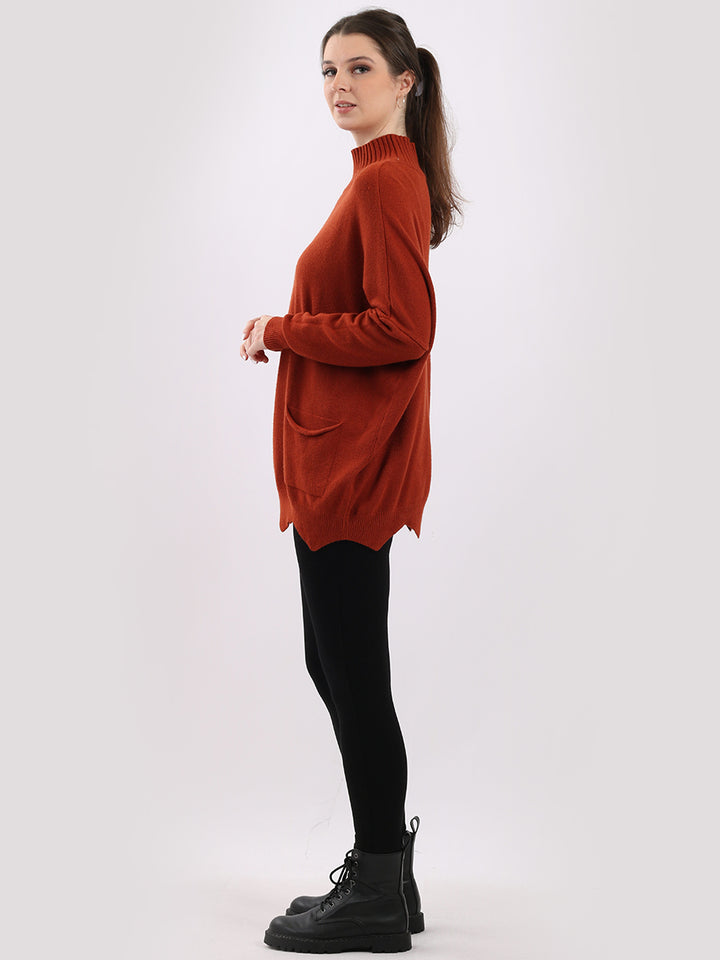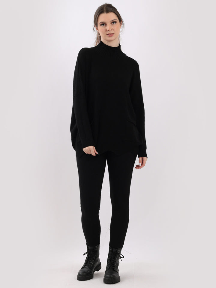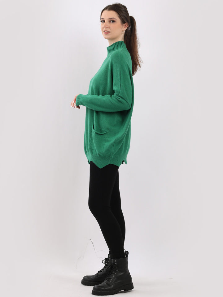 Stylish and chic this made in Italy top has all the desired characteristics of women wearers’ favorite. Features that inspire and enhance the look like lush and posh looking funnel neckline, baggy plus size fit with soothing fall ready colors, long sleeves and front pockets. Dress it over wide leg pants and high heels with cross body bag.
