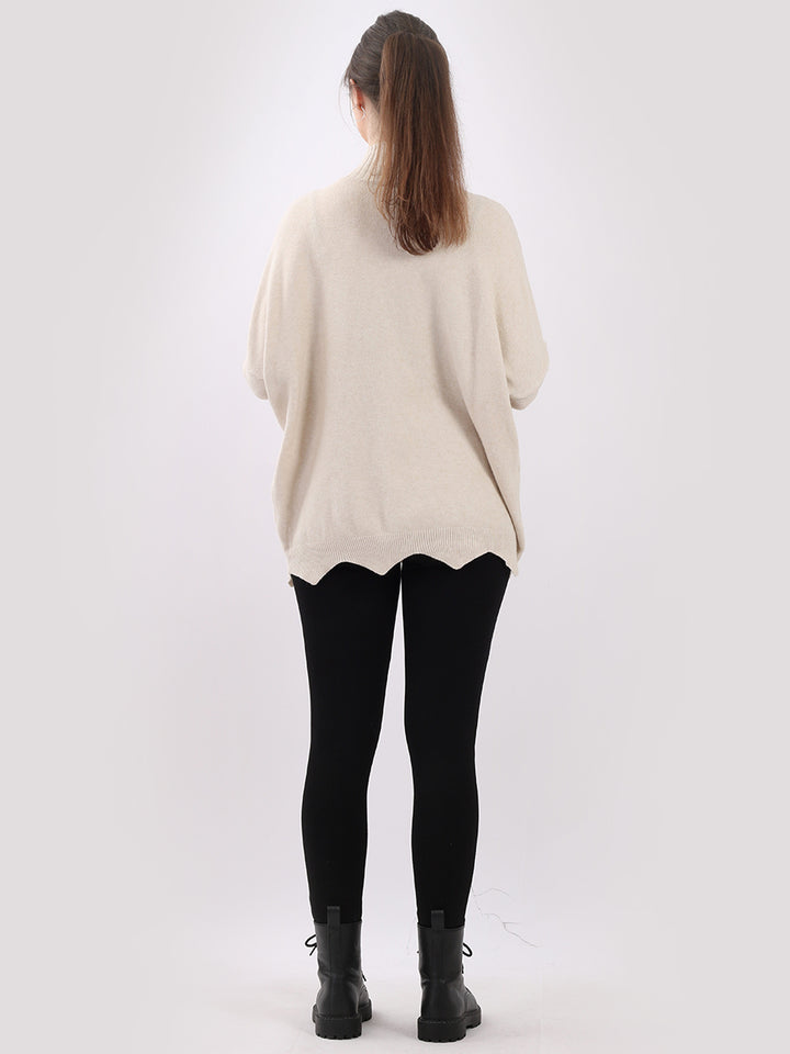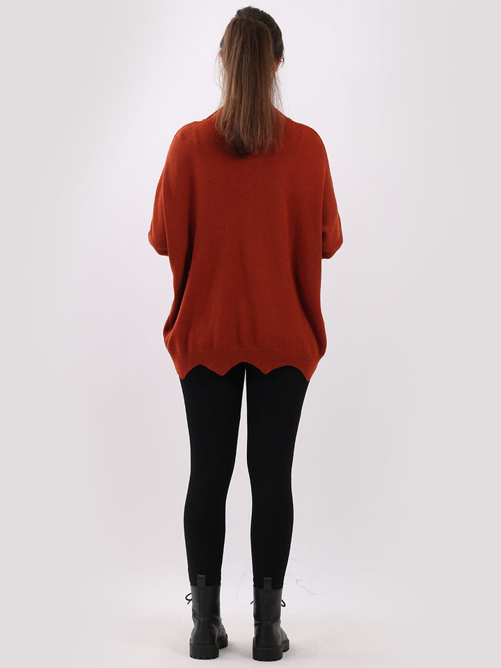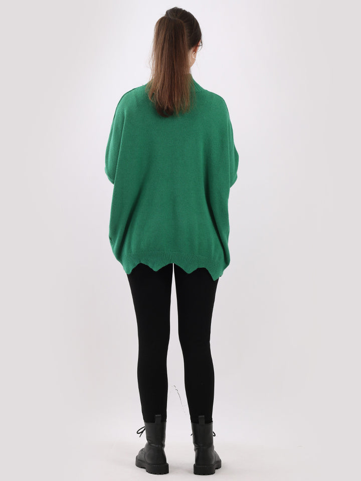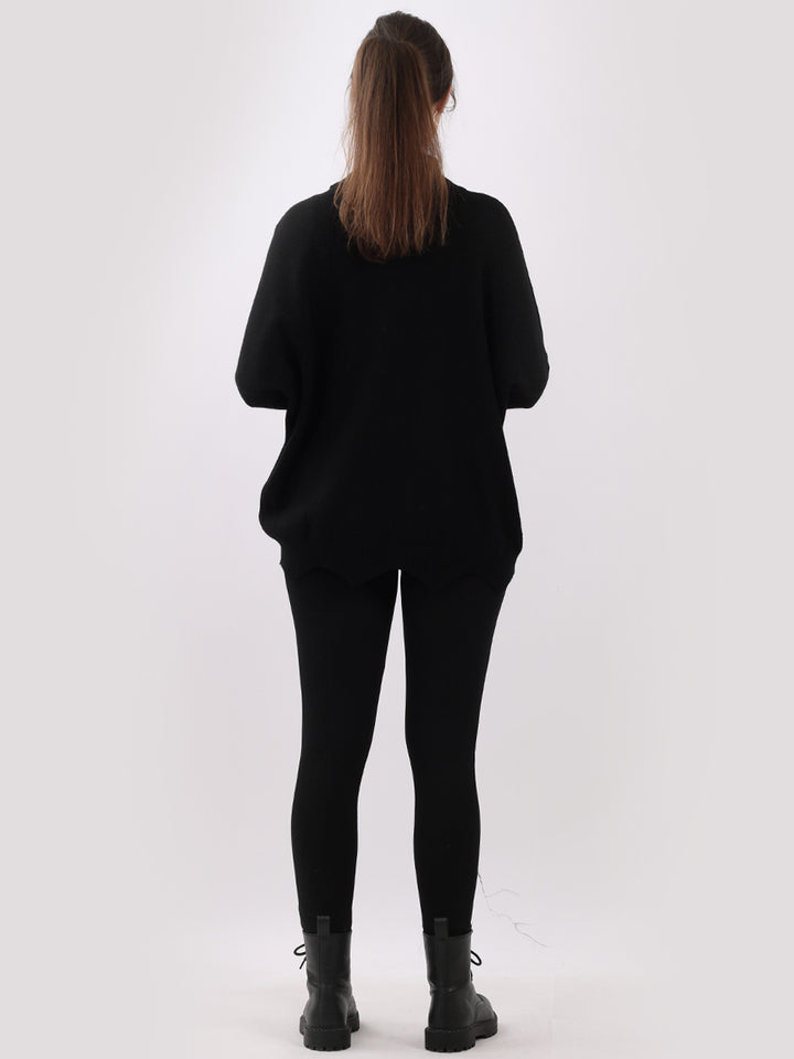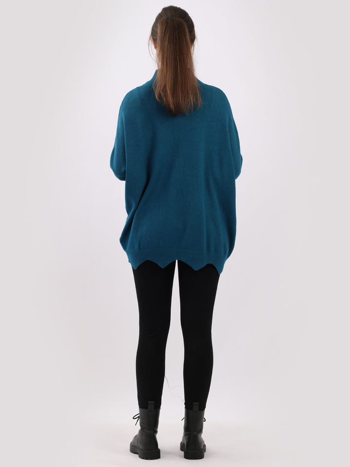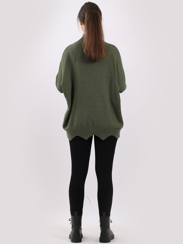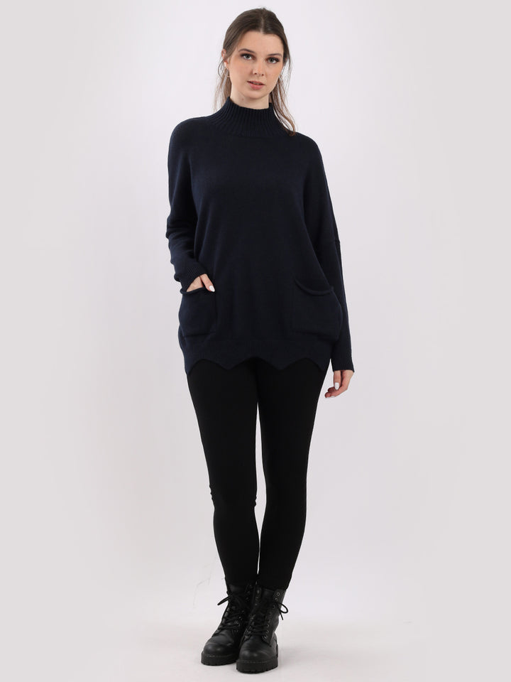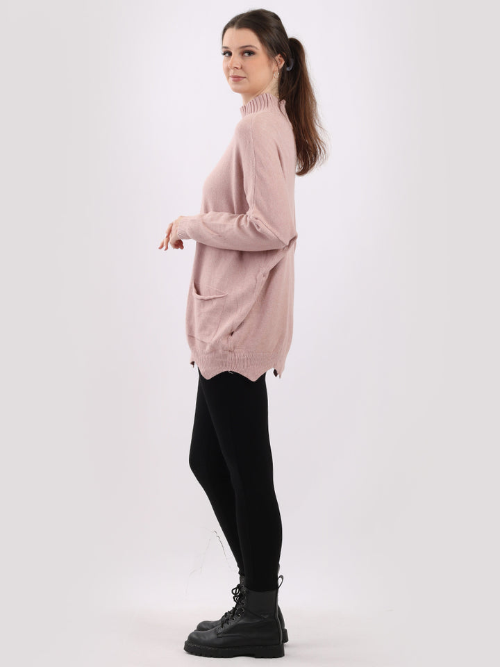 Stylish and chic this made in Italy top has all the desired characteristics of women wearers’ favorite. Features that inspire and enhance the look like lush and posh looking funnel neckline, baggy plus size fit with soothing fall ready colors, long sleeves and front pockets. Dress it over wide leg pants and high heels with cross body bag.