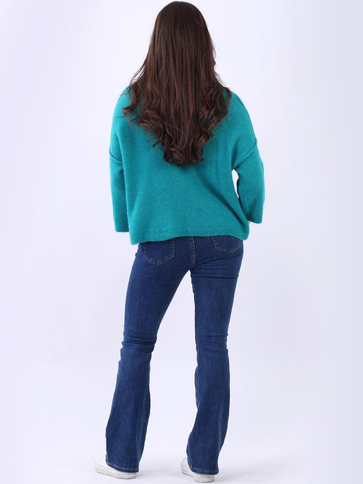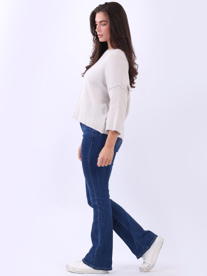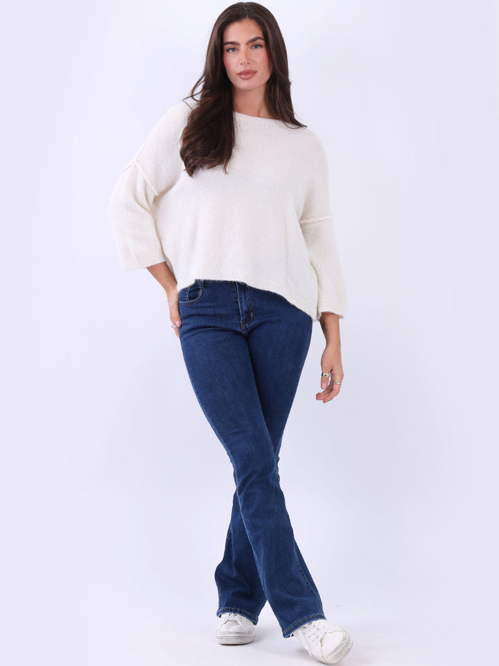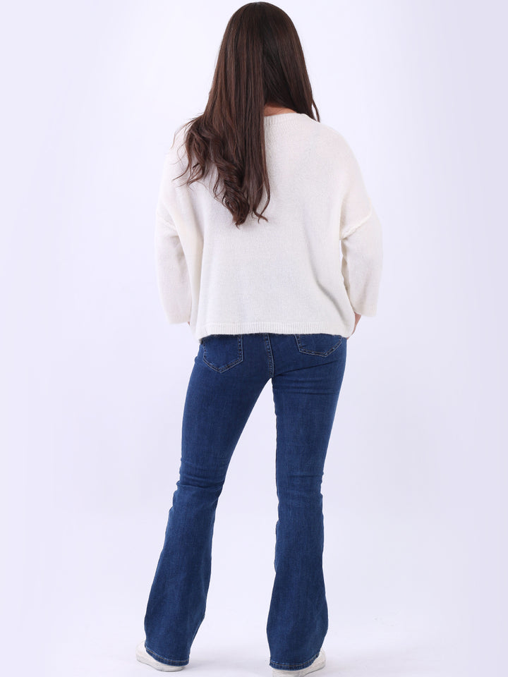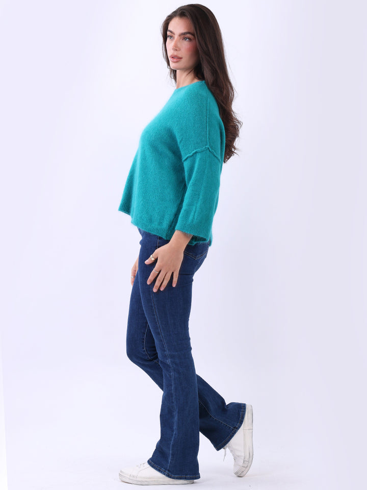This cozy knitted crop jumper is just what women wearers demand in winter collection. Crafted in Italy, it is designed to be thrown on for instant warmth and grace, with its crew neck, long baggy sleeves and plain color. Being the top seller from Red Wholesale's latest collection, this jumper is truly appealing.