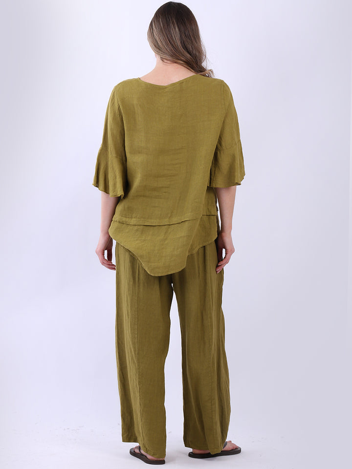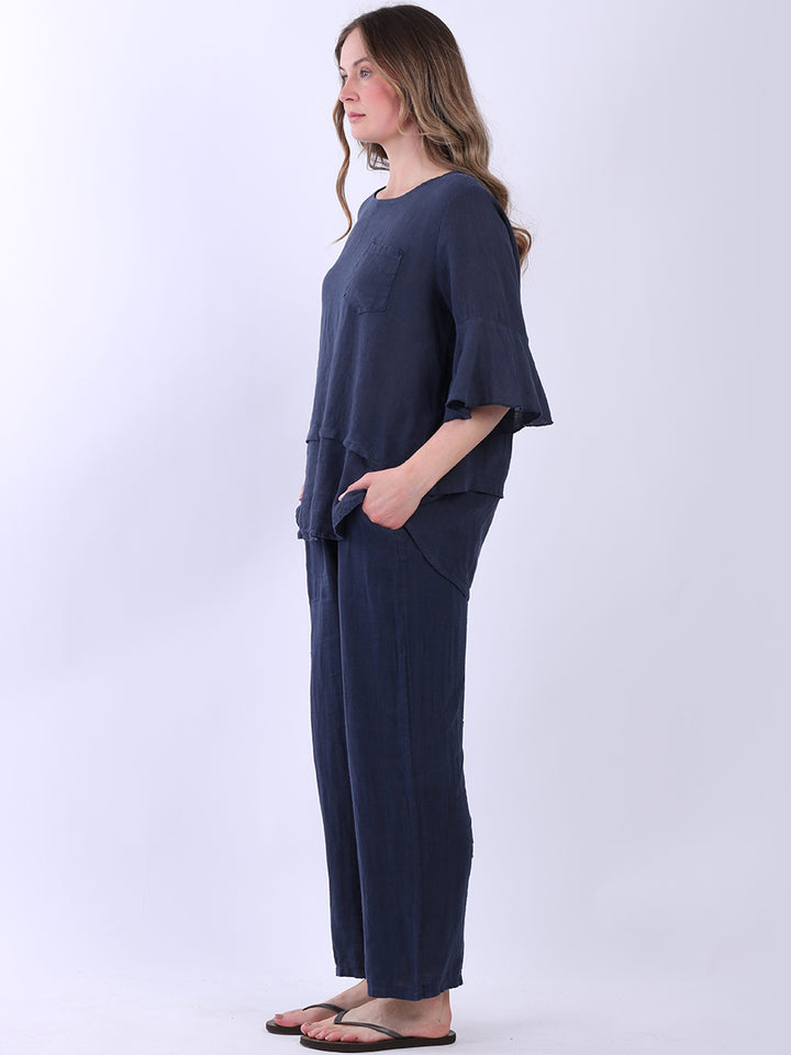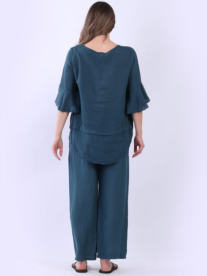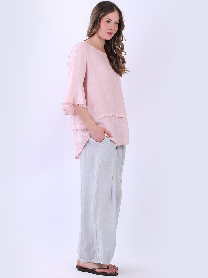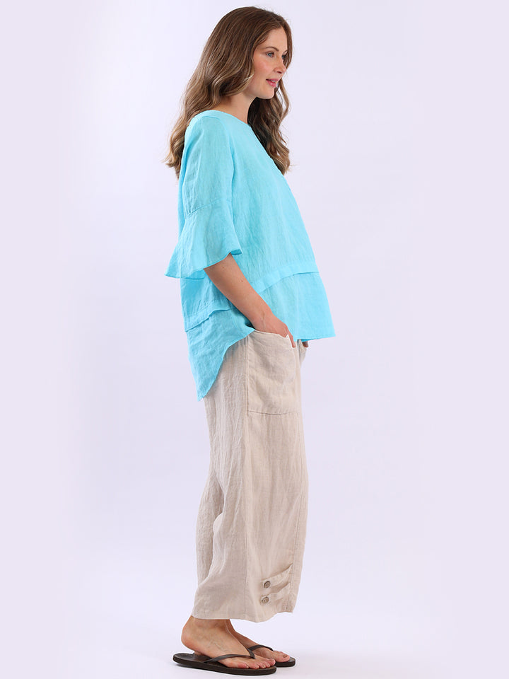 Made In Italy Plain Linen Lagenlook Top