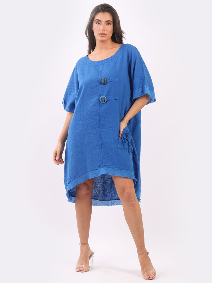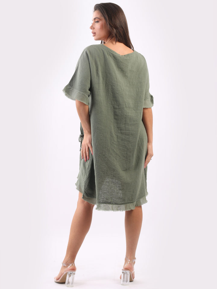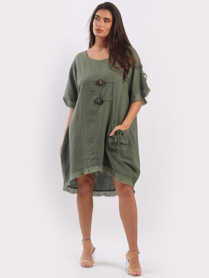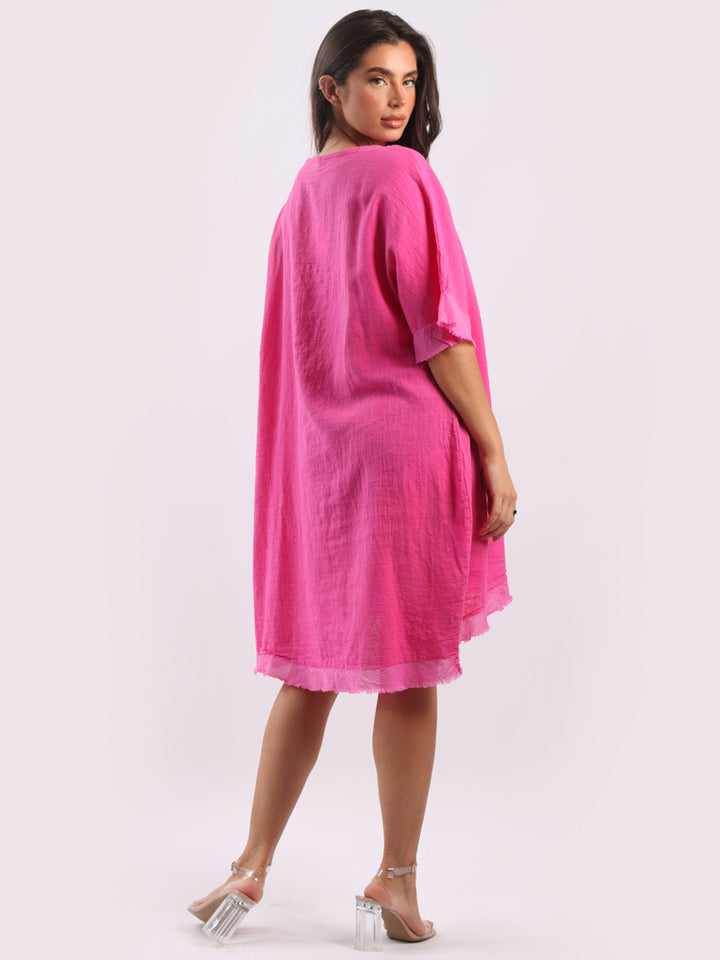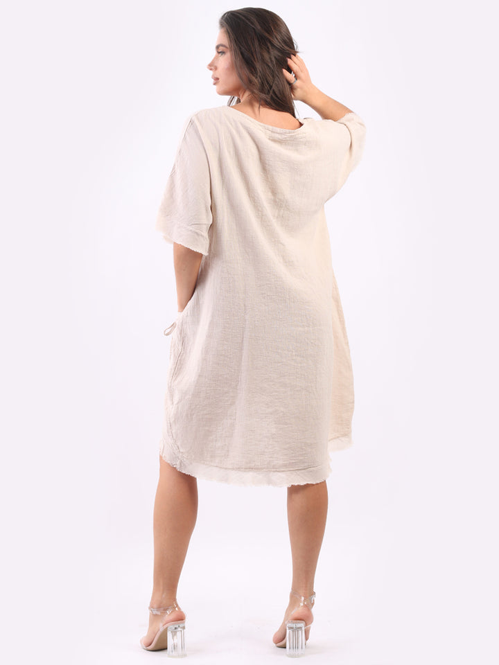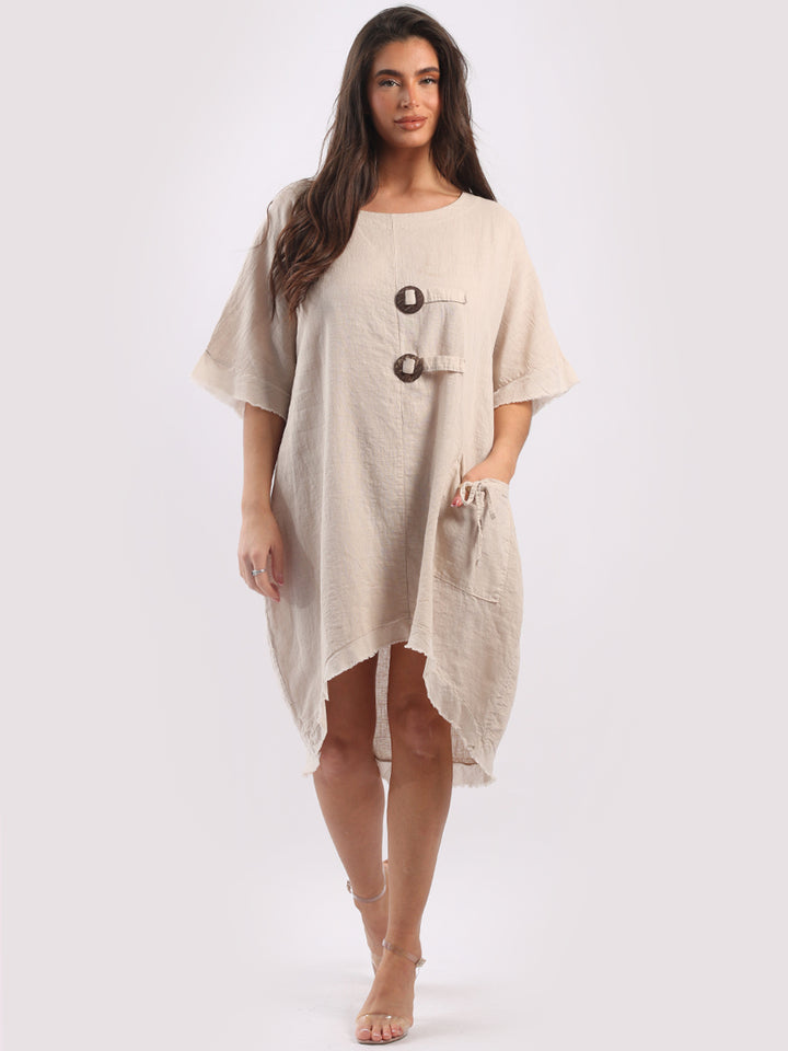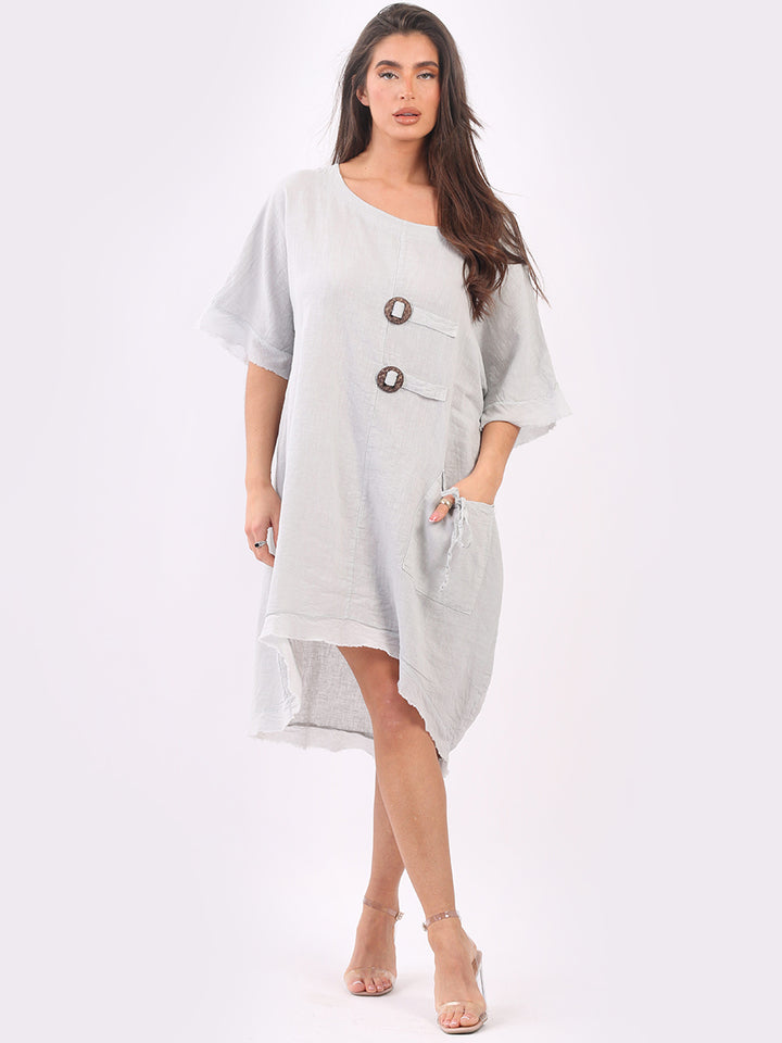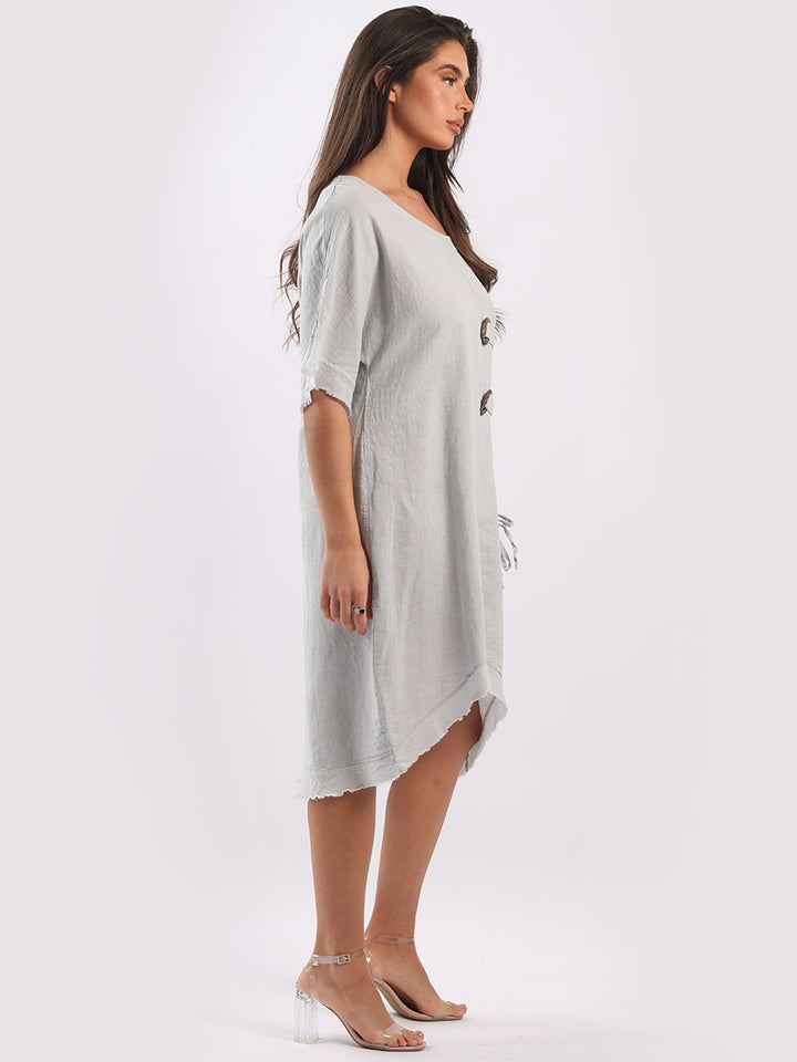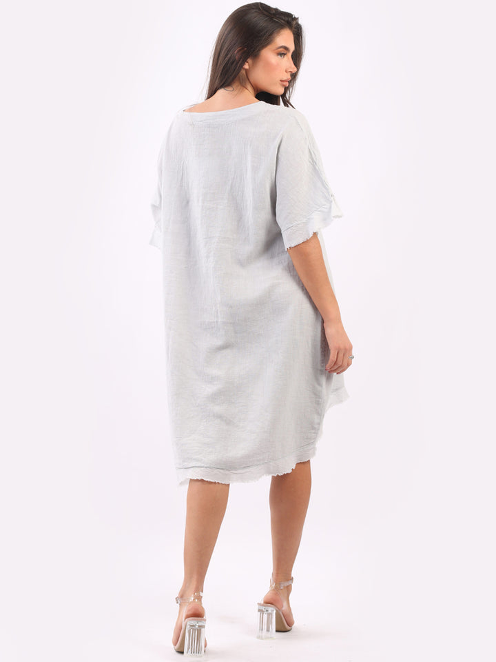 Made In Italy Plain Linen Raw Edges Hi-Lo Baggy Dress