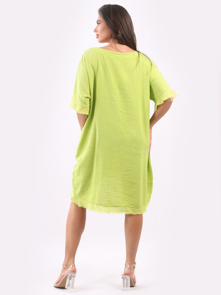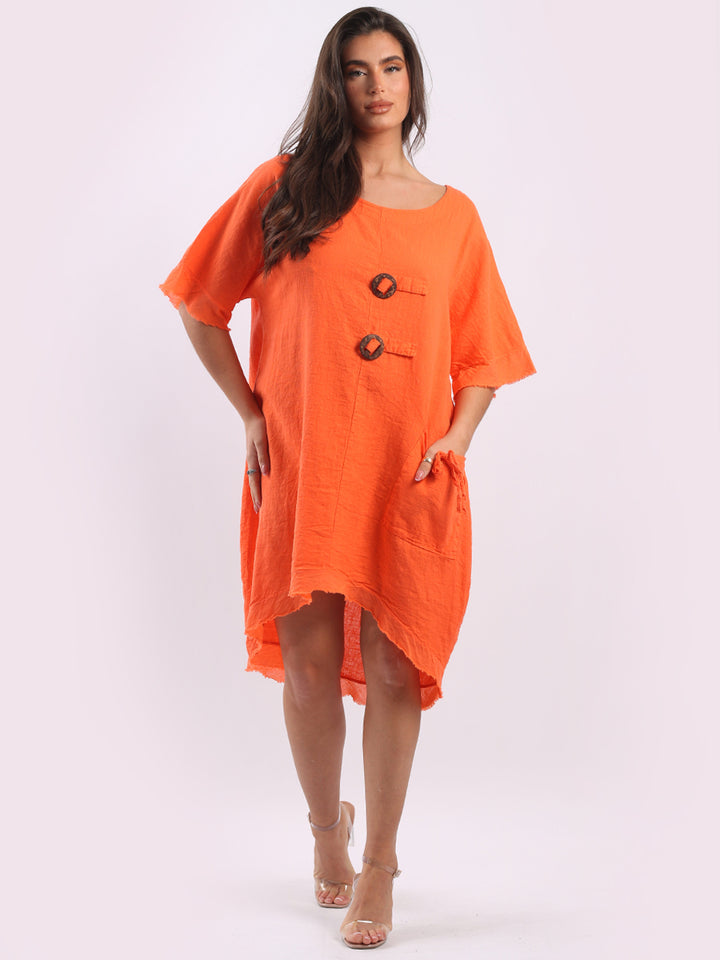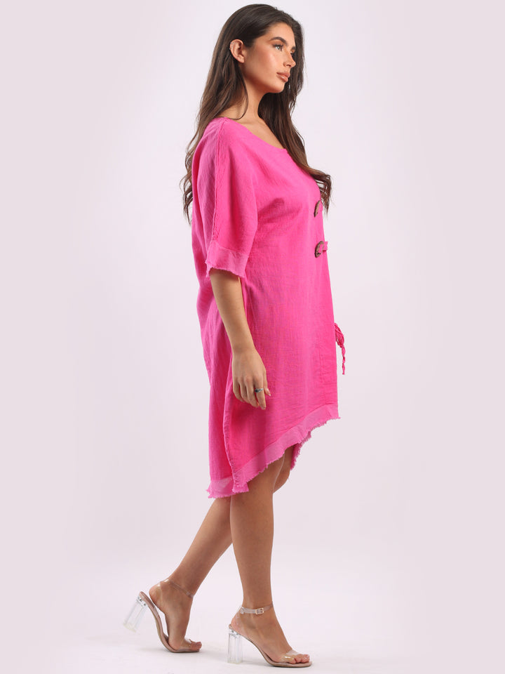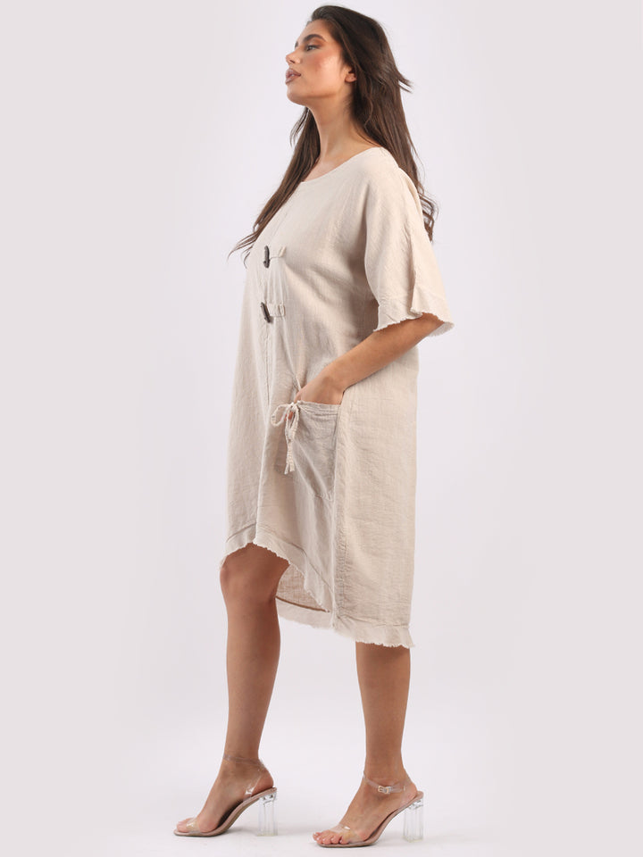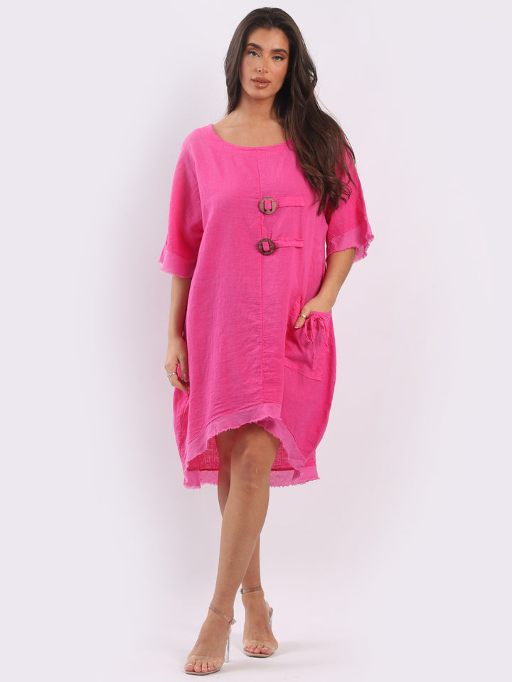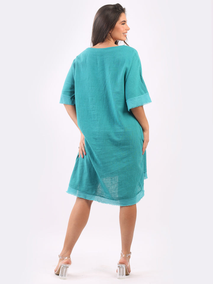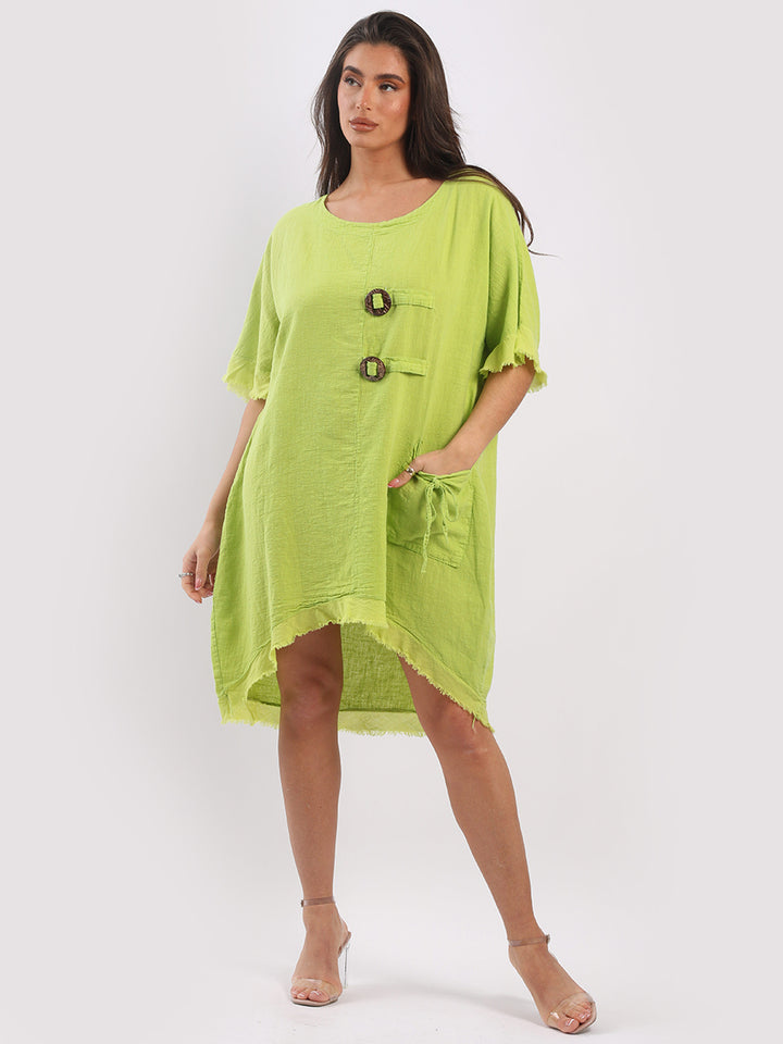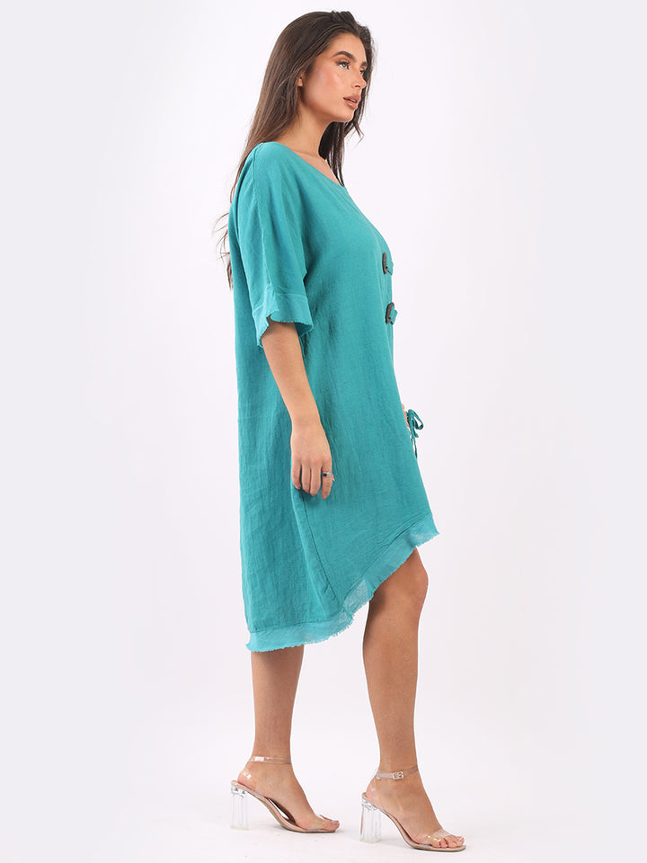 Made In Italy Plain Linen Raw Edges Hi-Lo Baggy Dress