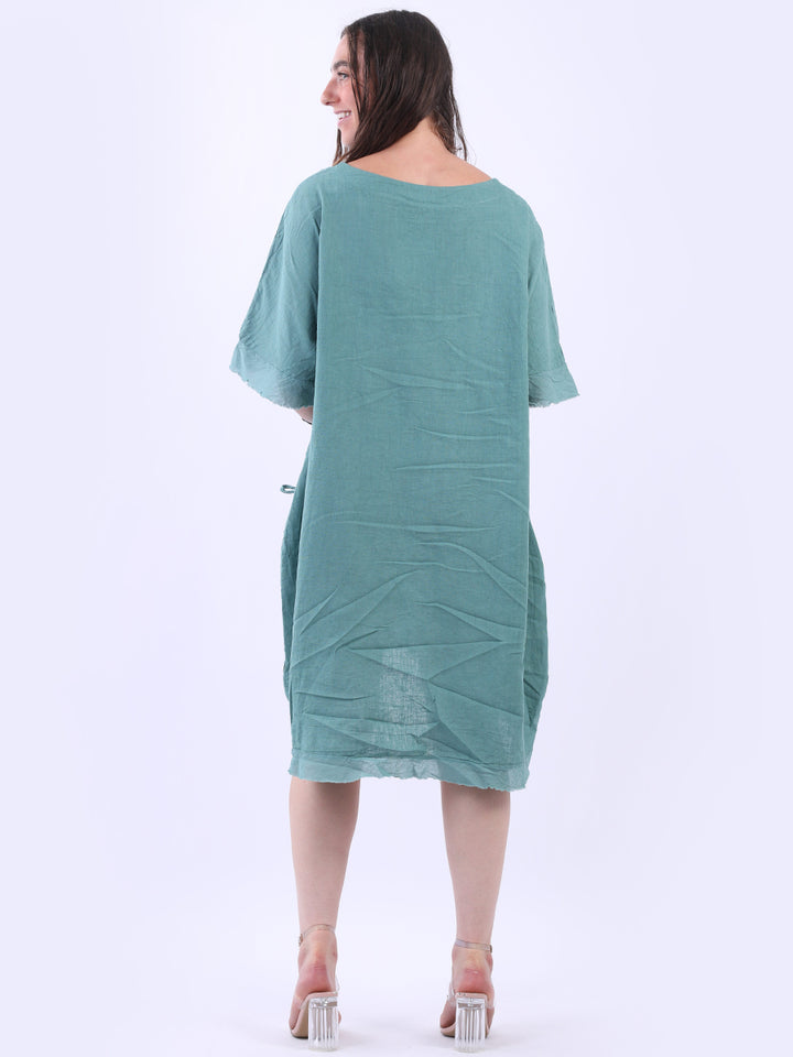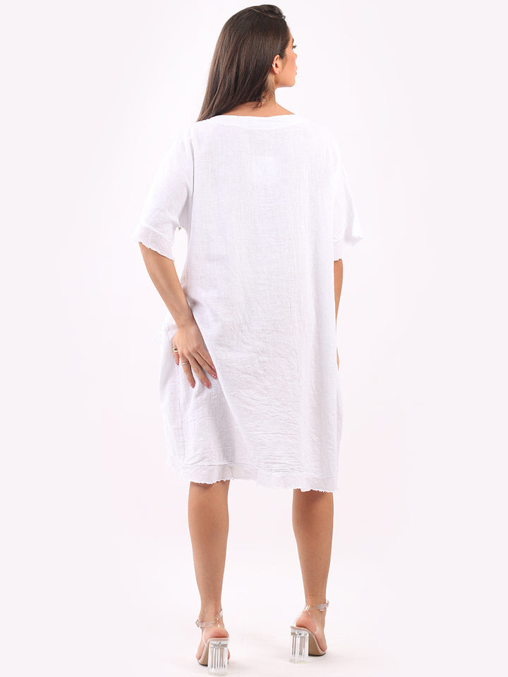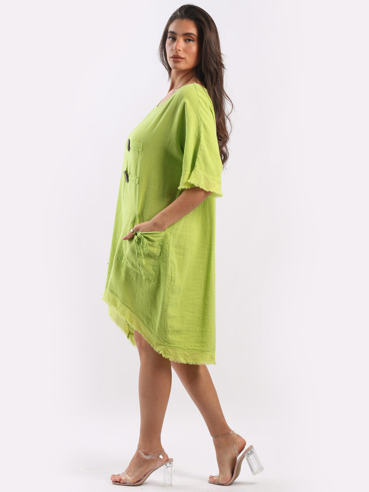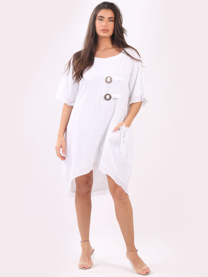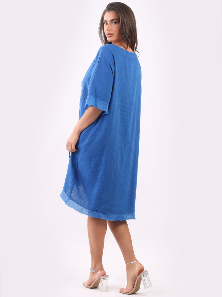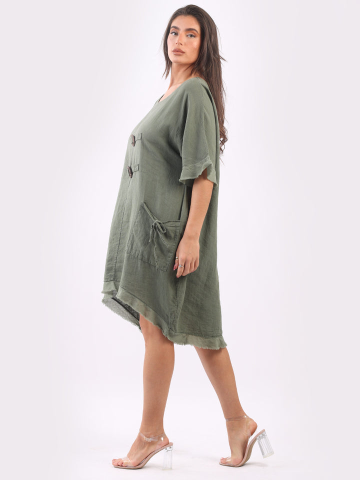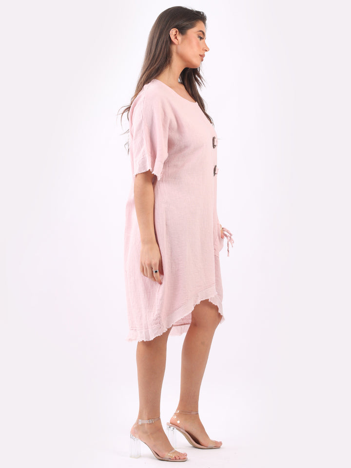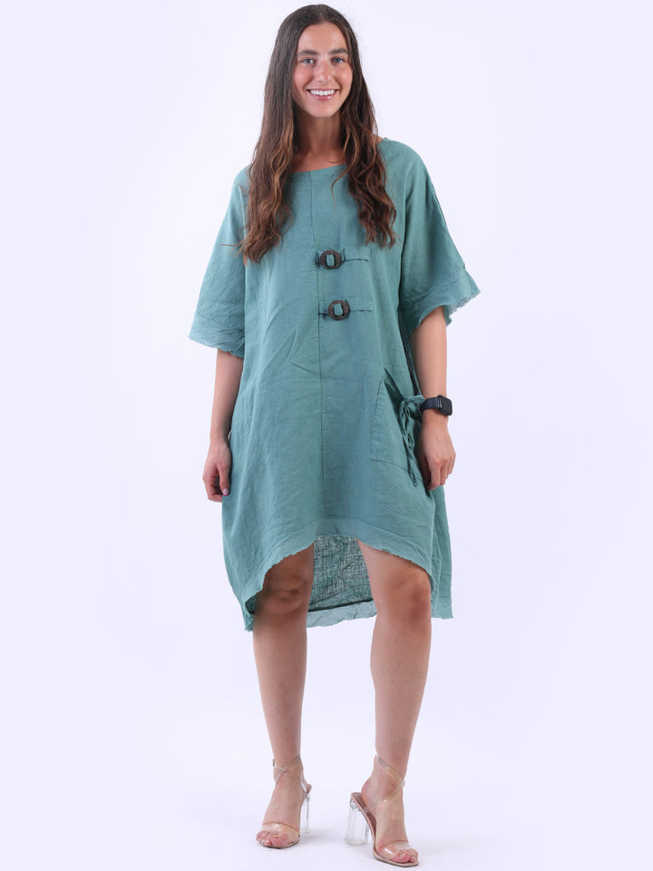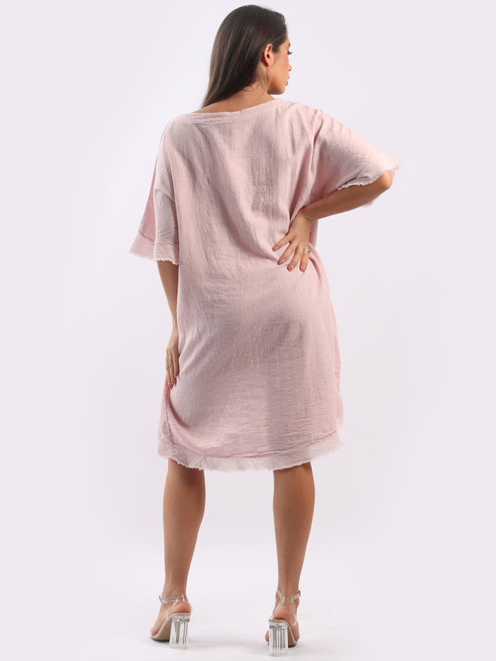 Made In Italy Plain Linen Raw Edges Hi-Lo Baggy Dress