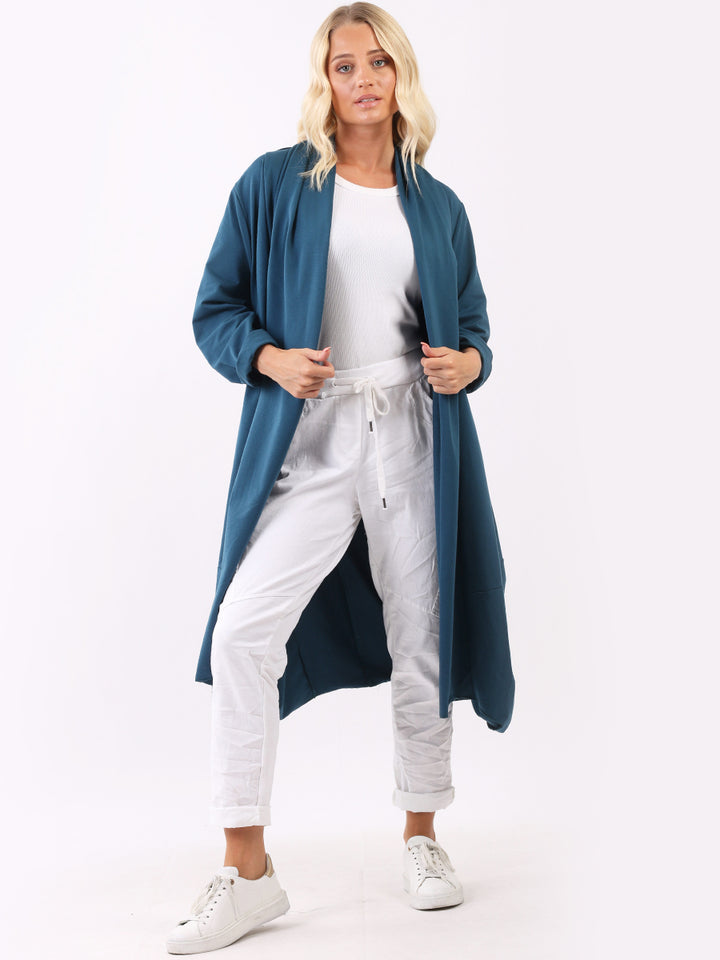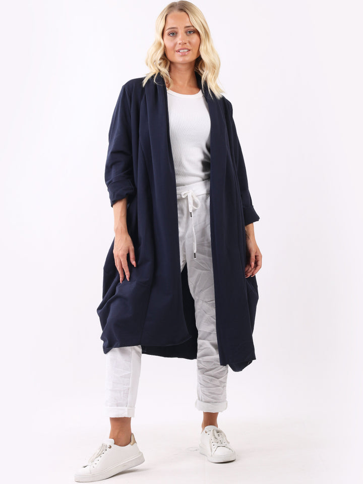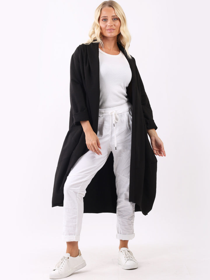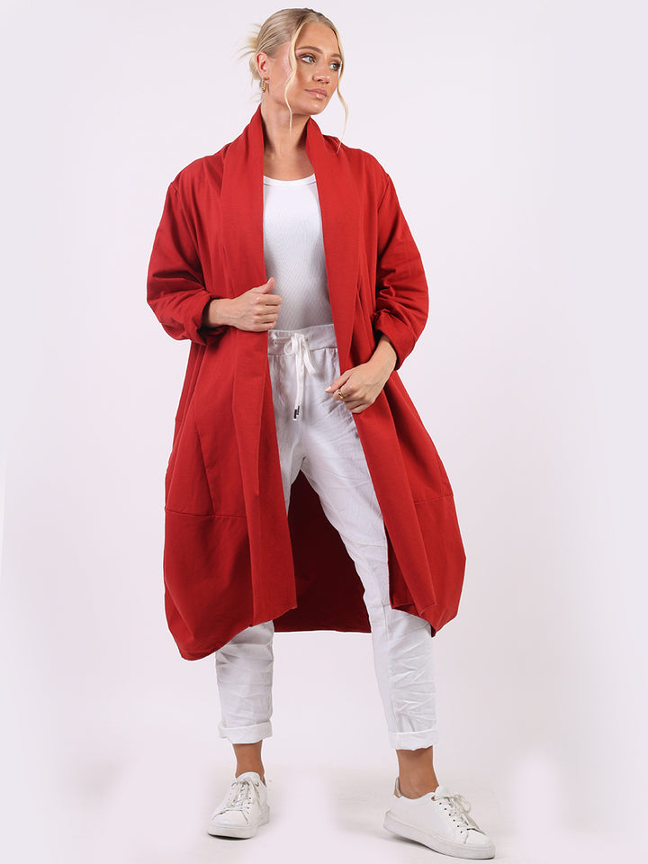 Chic and trendy on authentic cotton from trusted quality brand Redwholesale! Made in Italy with high quality this cardigan has open front with wide lapels all the way to the hem. Side pockets makes it very functional and ideal to layer over jean and crop tops for iconic finish.