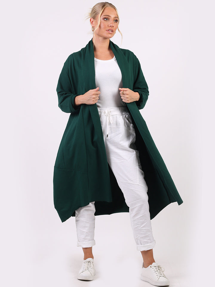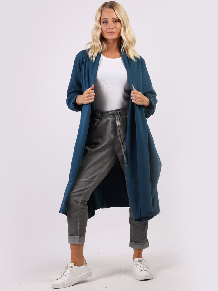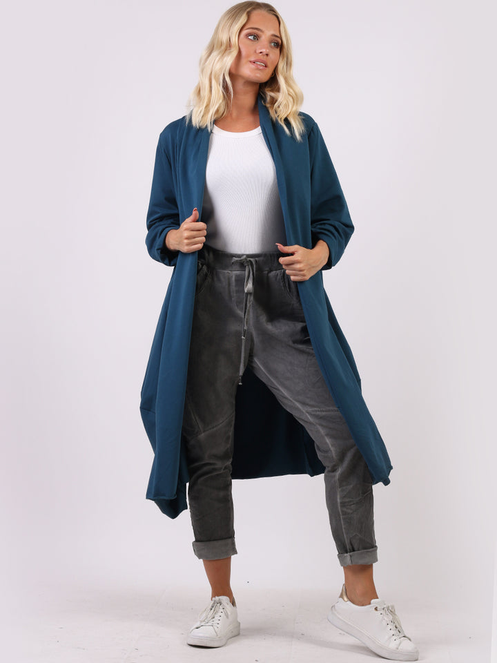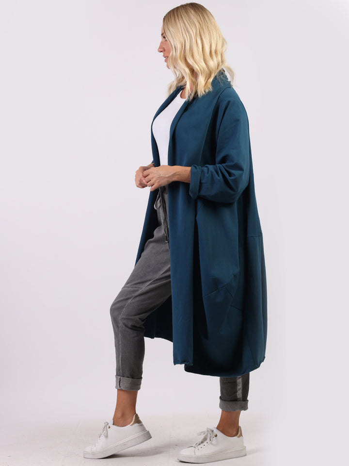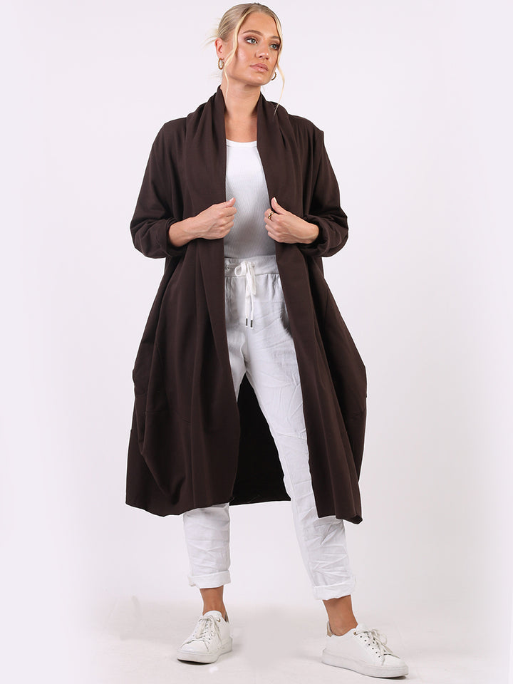 Chic and trendy on authentic cotton from trusted quality brand Redwholesale! Made in Italy with high quality this cardigan has open front with wide lapels all the way to the hem. Side pockets makes it very functional and ideal to layer over jean and crop tops for iconic finish.