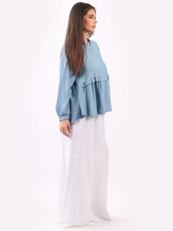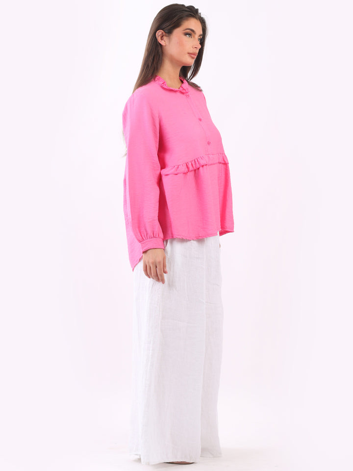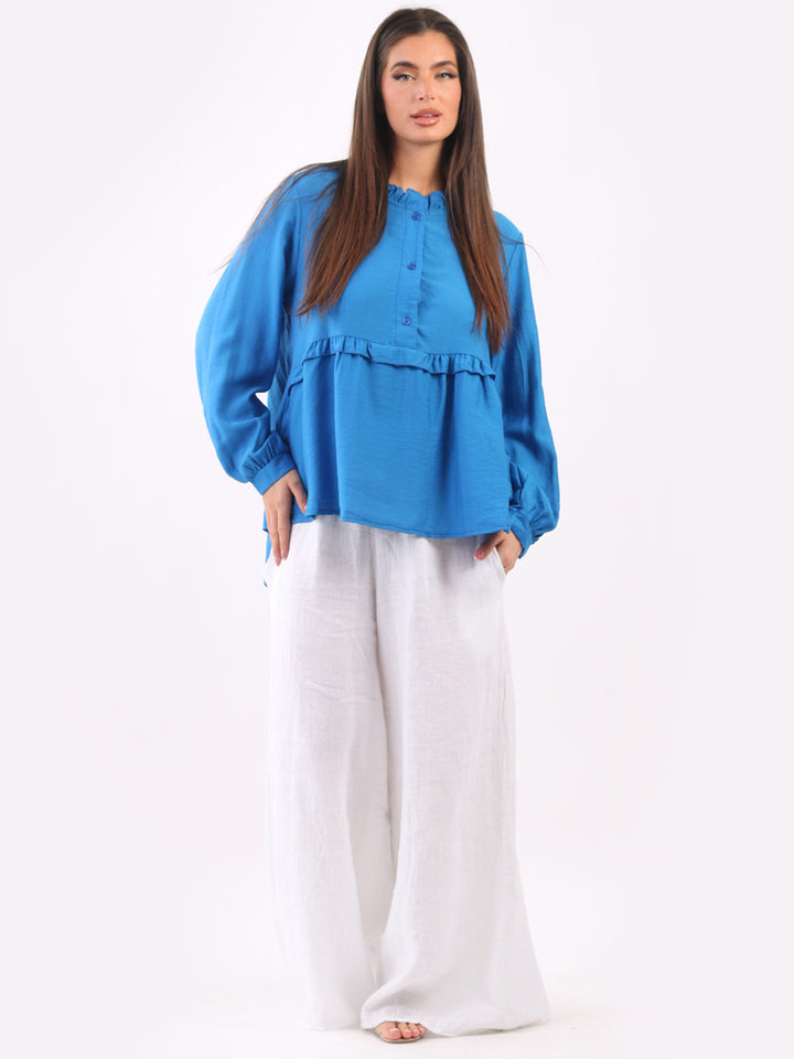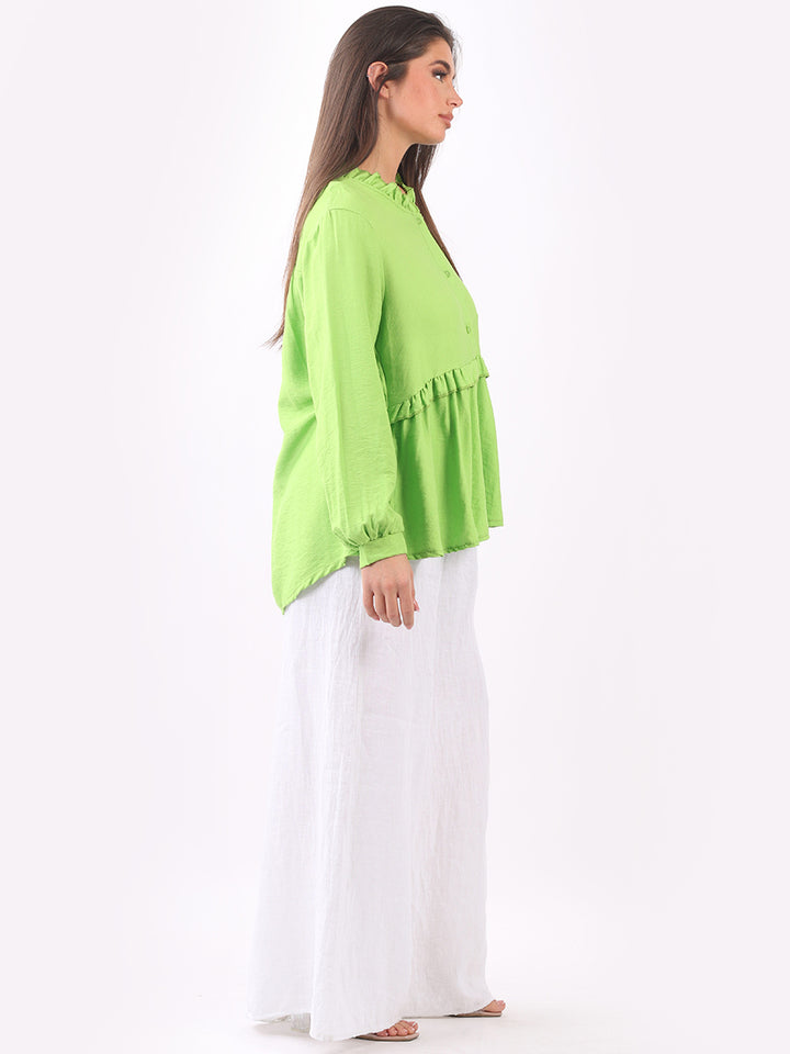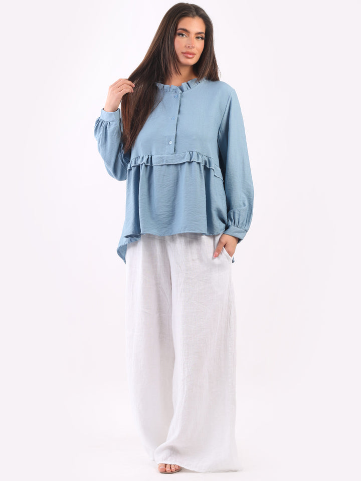 Made In Italy Front Buttons Ladies Ruffle Peplum Tunic Top