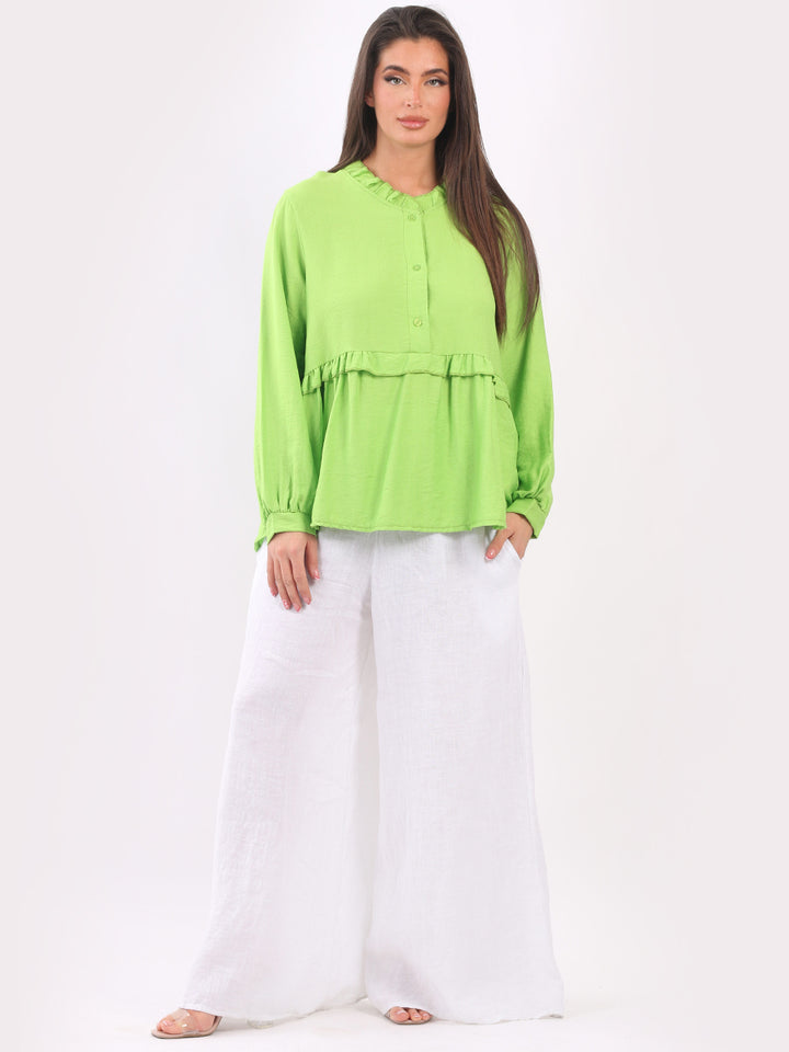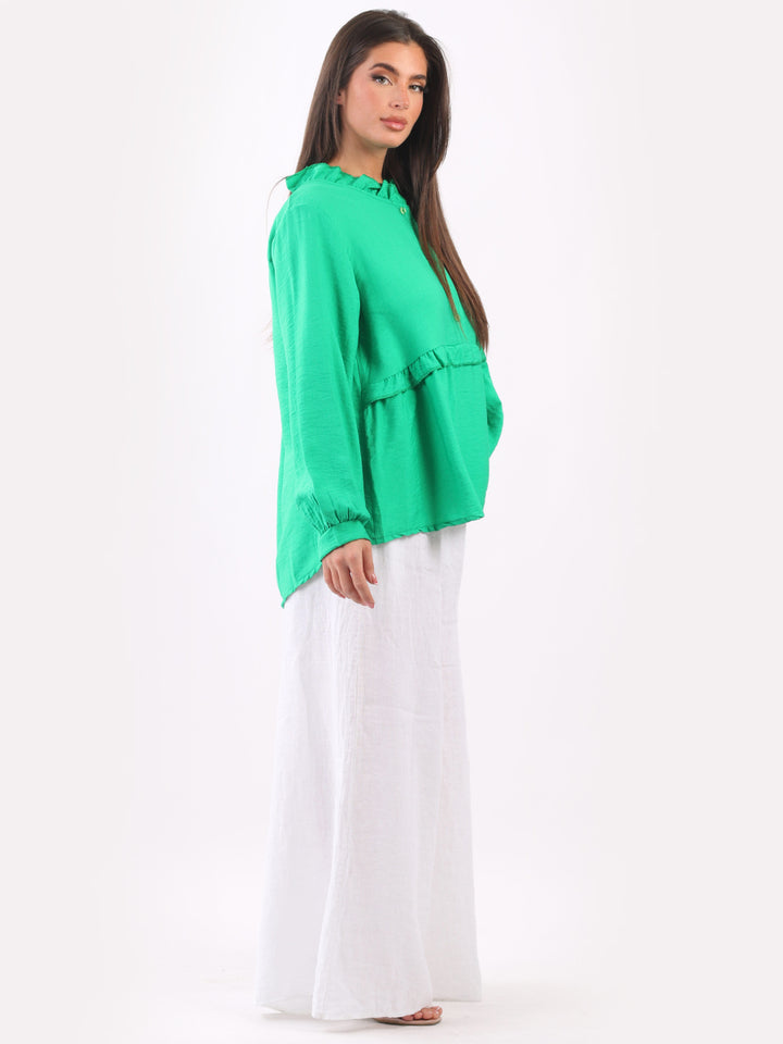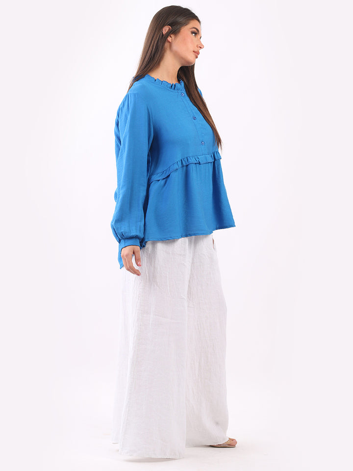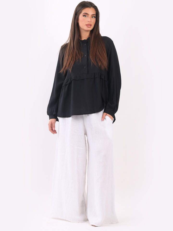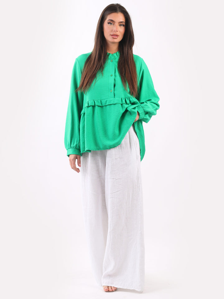 Made In Italy Front Buttons Ladies Ruffle Peplum Tunic Top