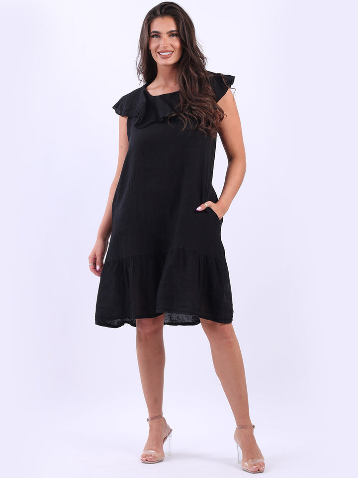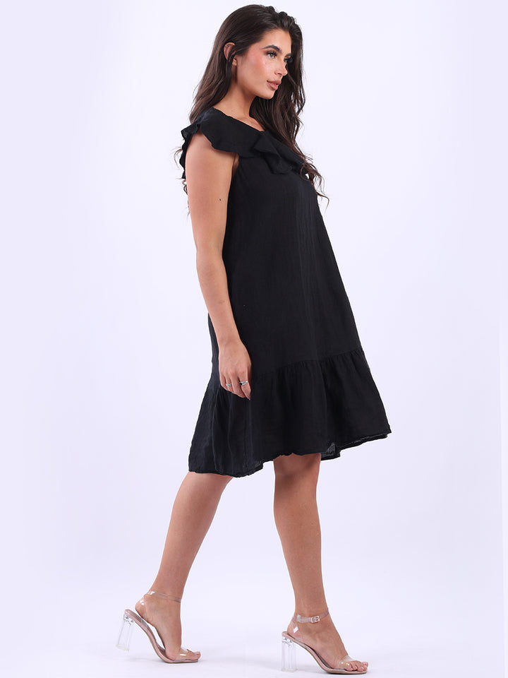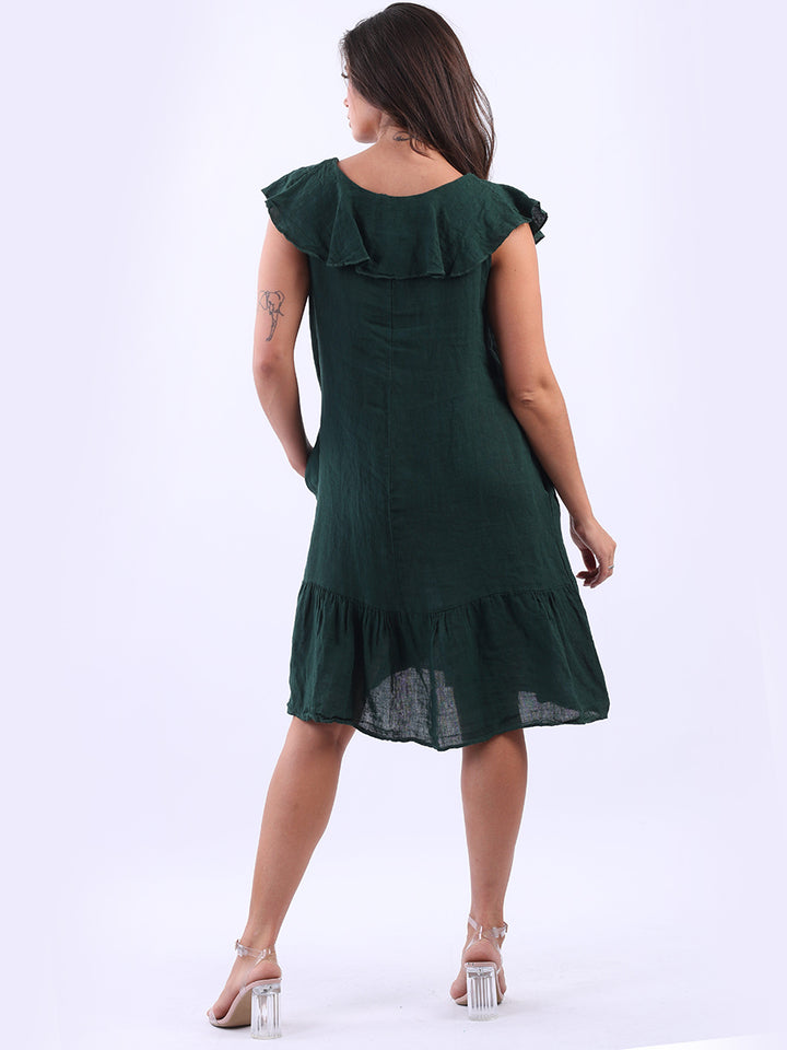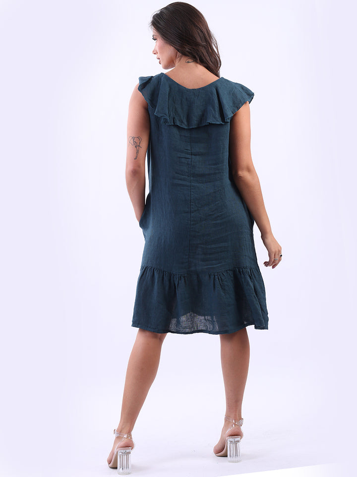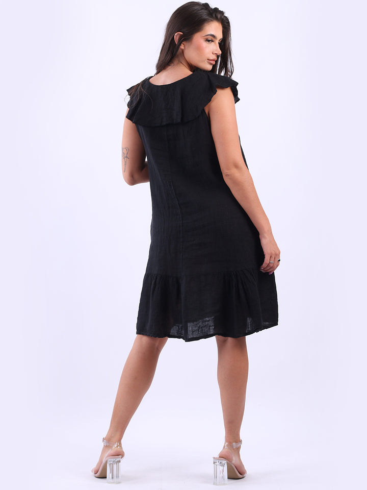 Made In Italy Ruffle Neck Sleeveless Linen Longline Top