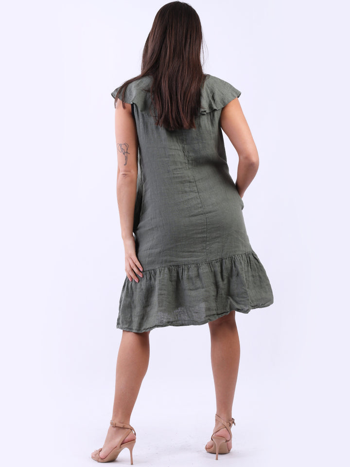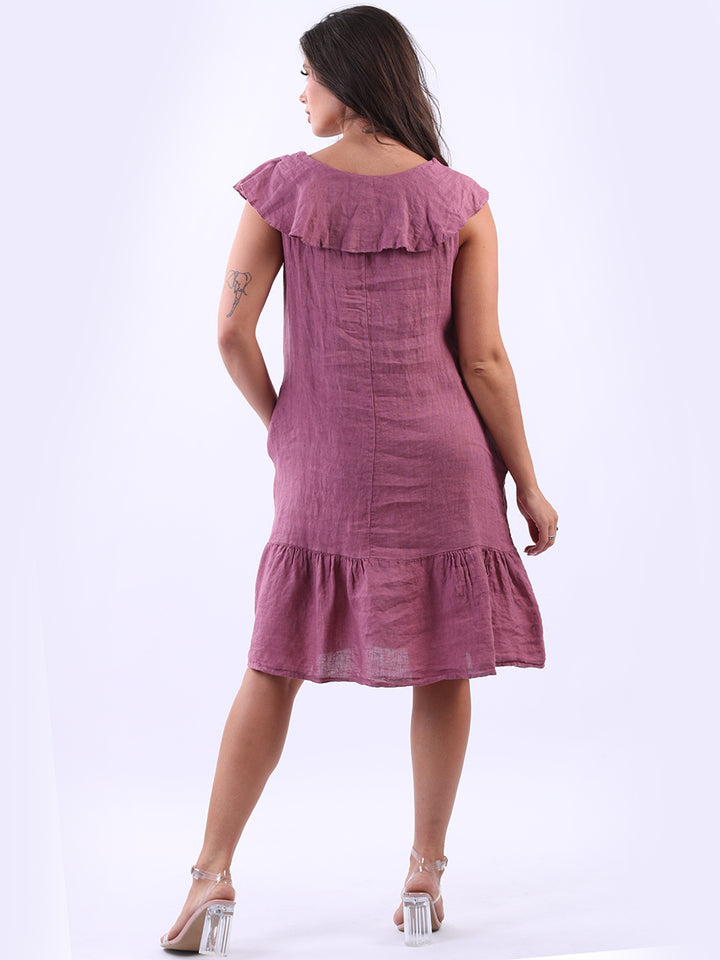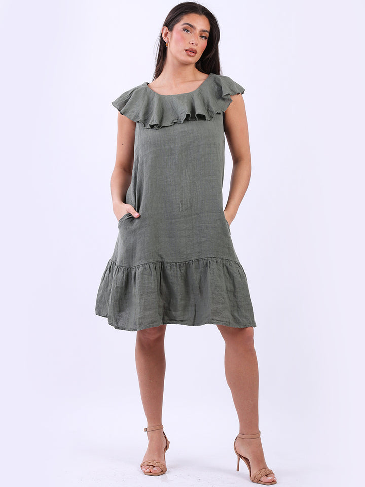 Old school memories with all the awesomeness of adventure and comfort. Made in Italy with finest soft linen fabric, round neckline with ruffle trim that would give a characteristic finish with ruffle hem.