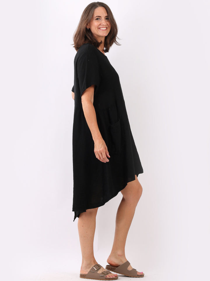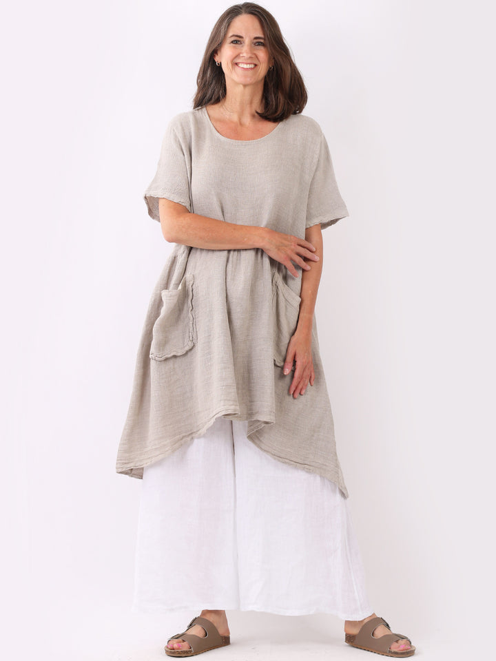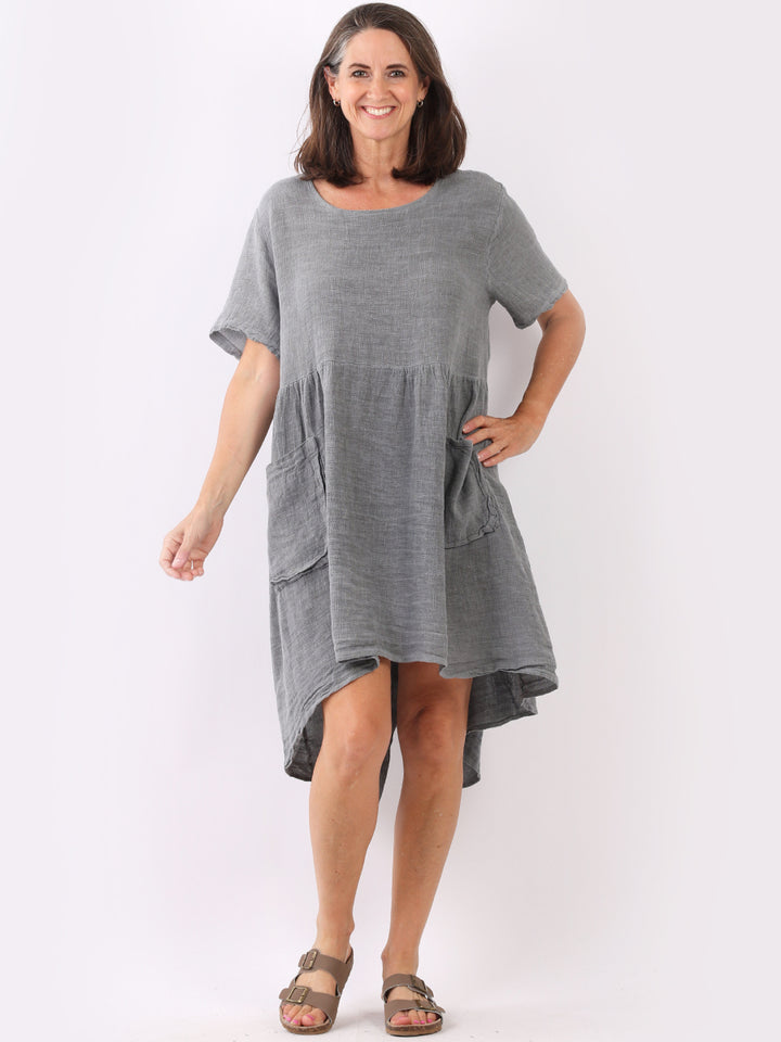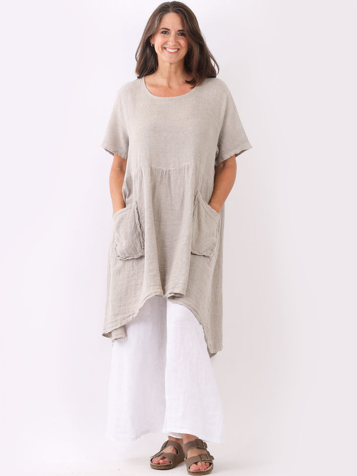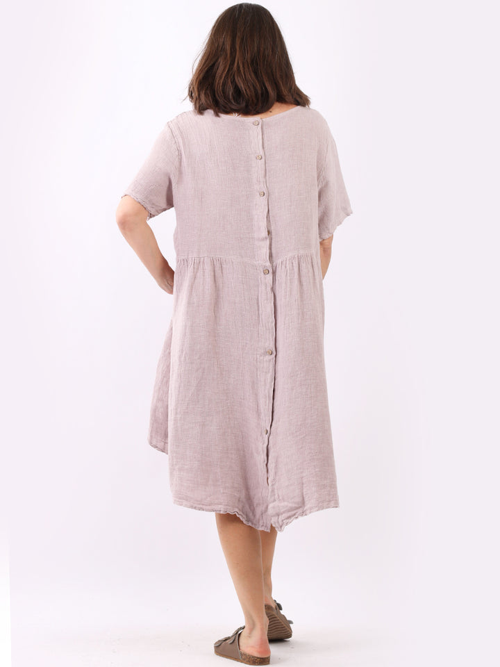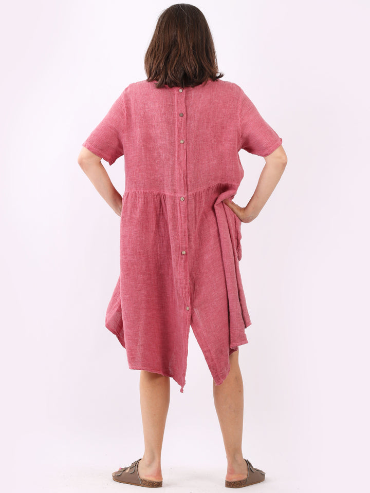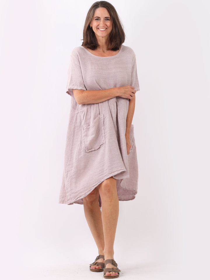Made In Italy Plain Vintage Washed Linen Lagenlook Swing Midi Dress