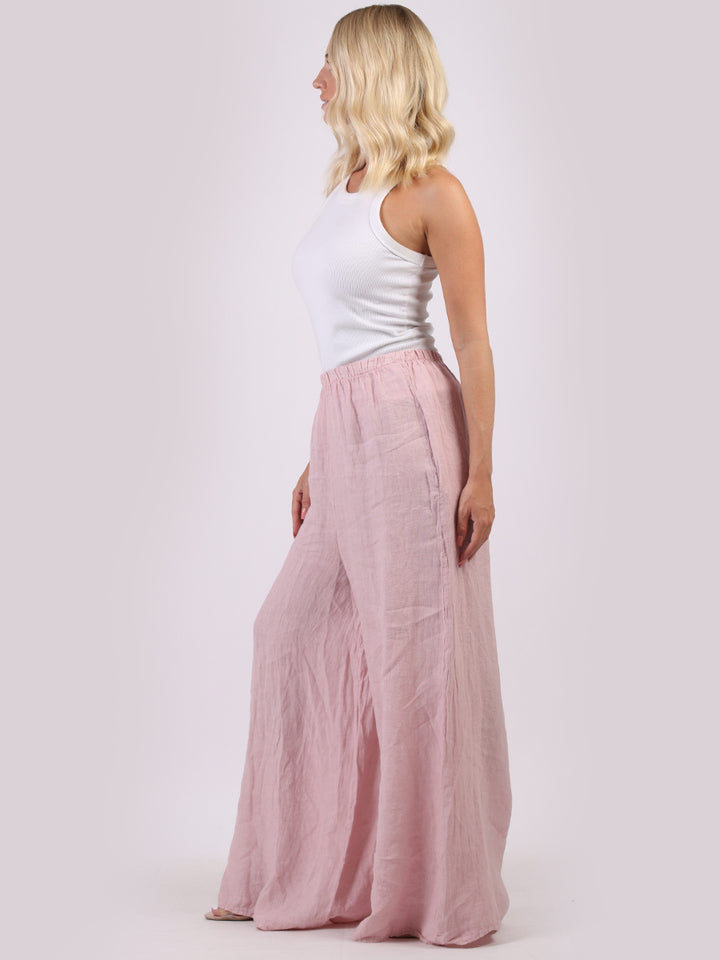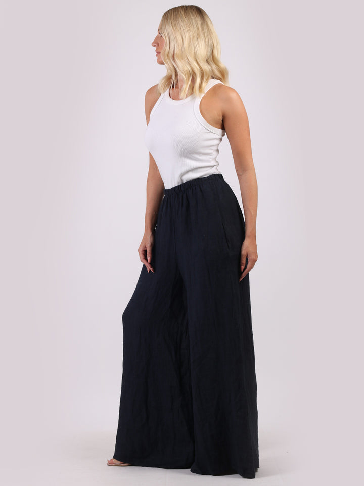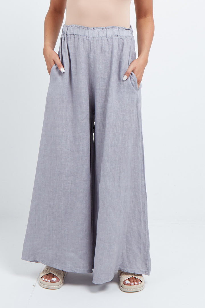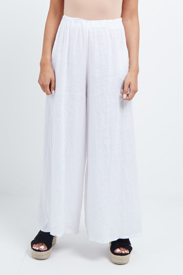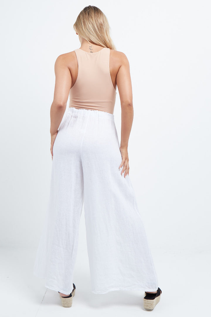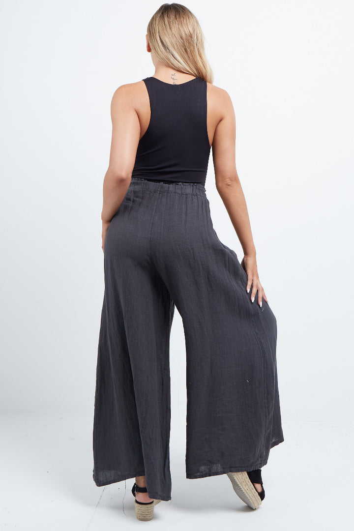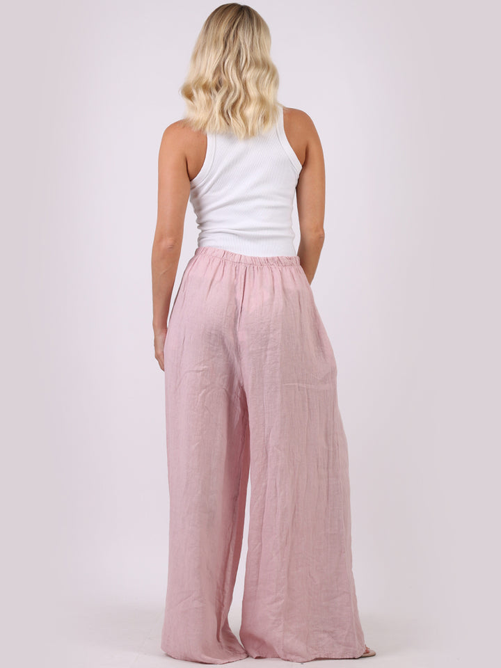 The wardrobe must have that woman wearers need for turning their casual looks into fun-fiestas tic affair! Made to perfection with pure skin friendly linen that flows very nicely with every step, made in Italy with promising quality these wide leg and elastic easy pull on style palazzo pants is classically chic. Dress with skinny crop tops and high heels.