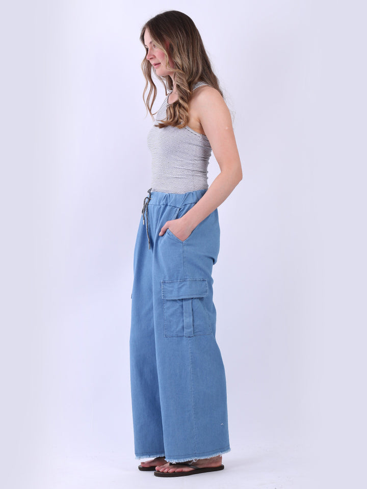 Made in Italy, these denim cargo pants offer summer wardrobes a laid-back yet sophisticated look. Combining lightweight cotton with the relaxed fit guarantees an easygoing appeal for oversized styles. a summer must-have from Redwholesale online fashion store.