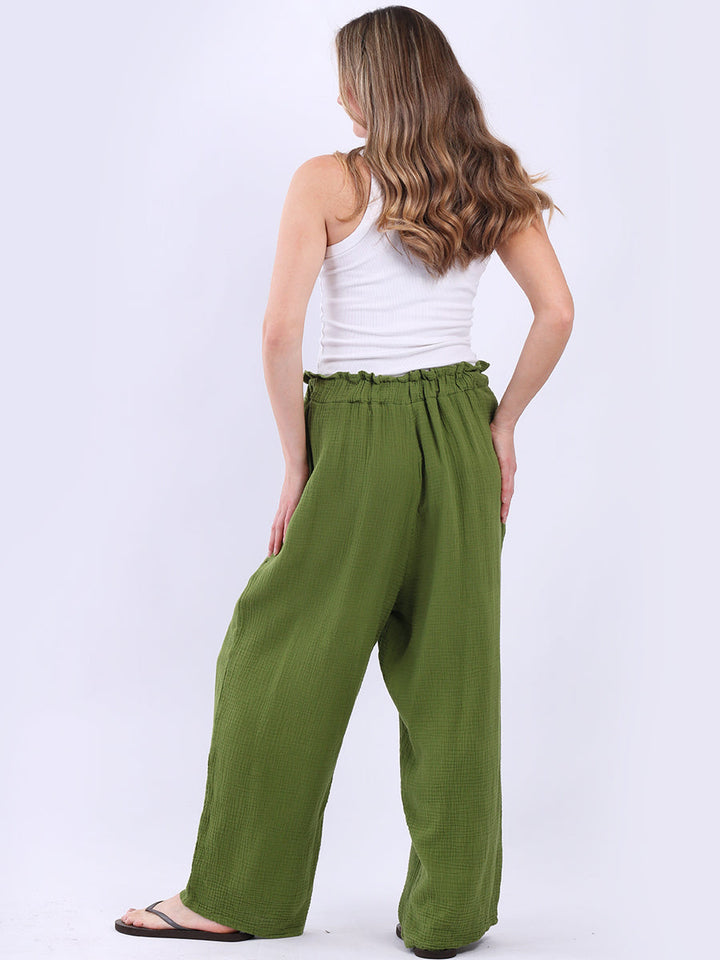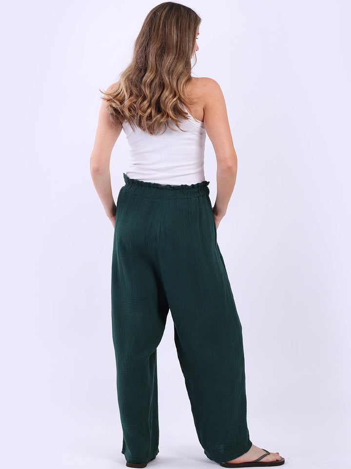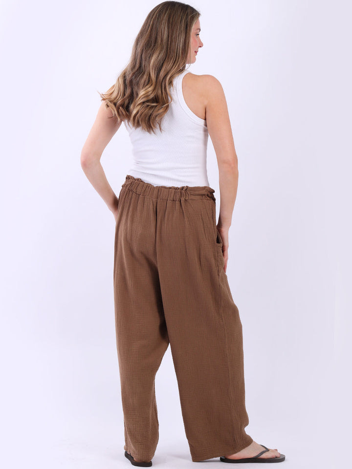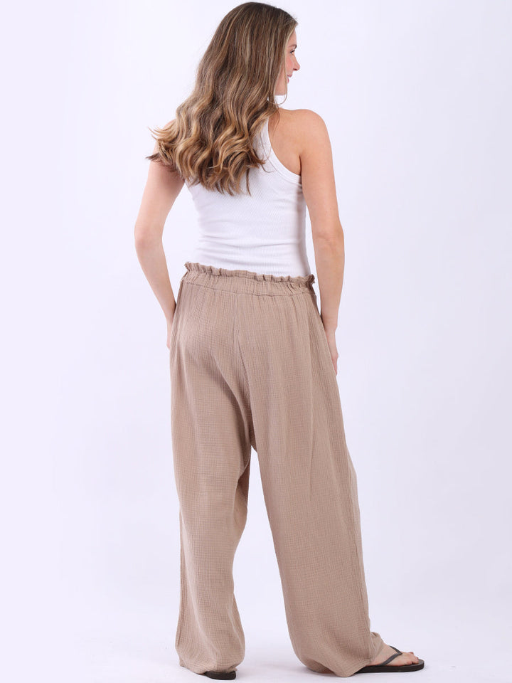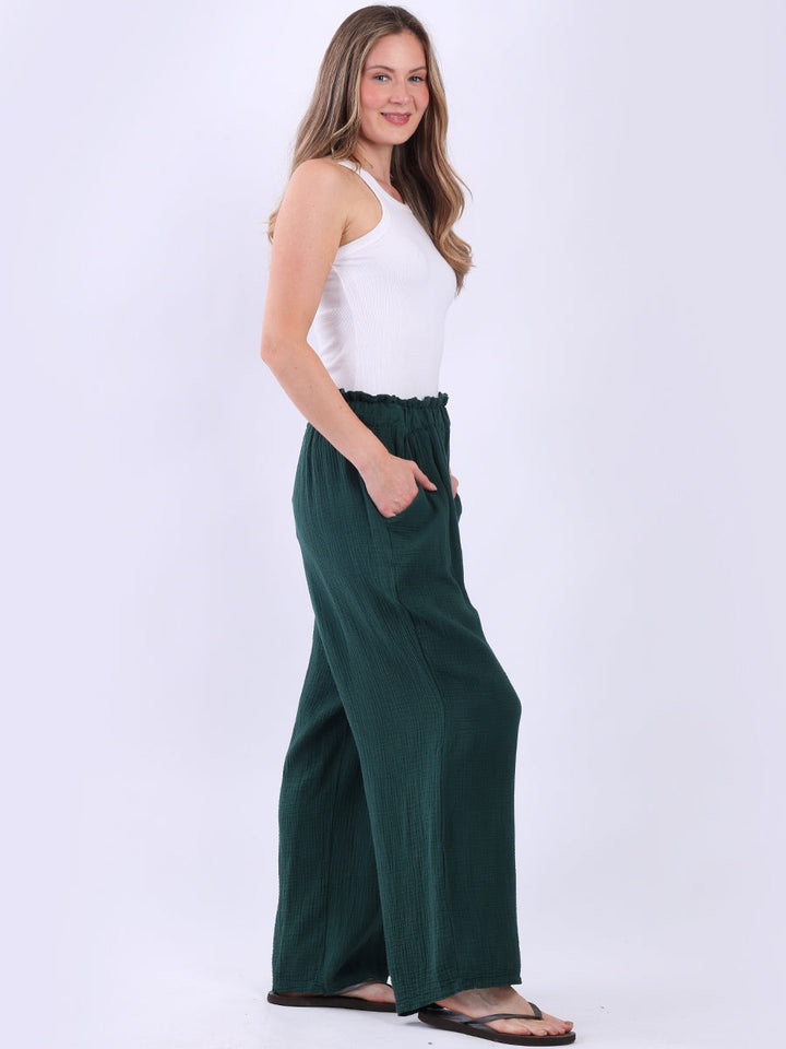 From the latest collection of Redwholesale UK, these plain wide-leg cotton trousers are a wardrobe essential. Everything women wearers desire in a casual outfit, these trousers have, including comfortable elastic waistband, side pockets and wide flowy silhouette. Mix and match them with a floral top for a casual outings with friends.