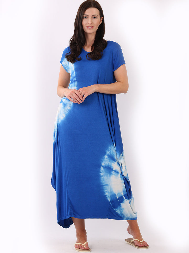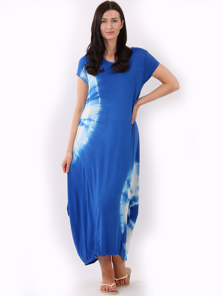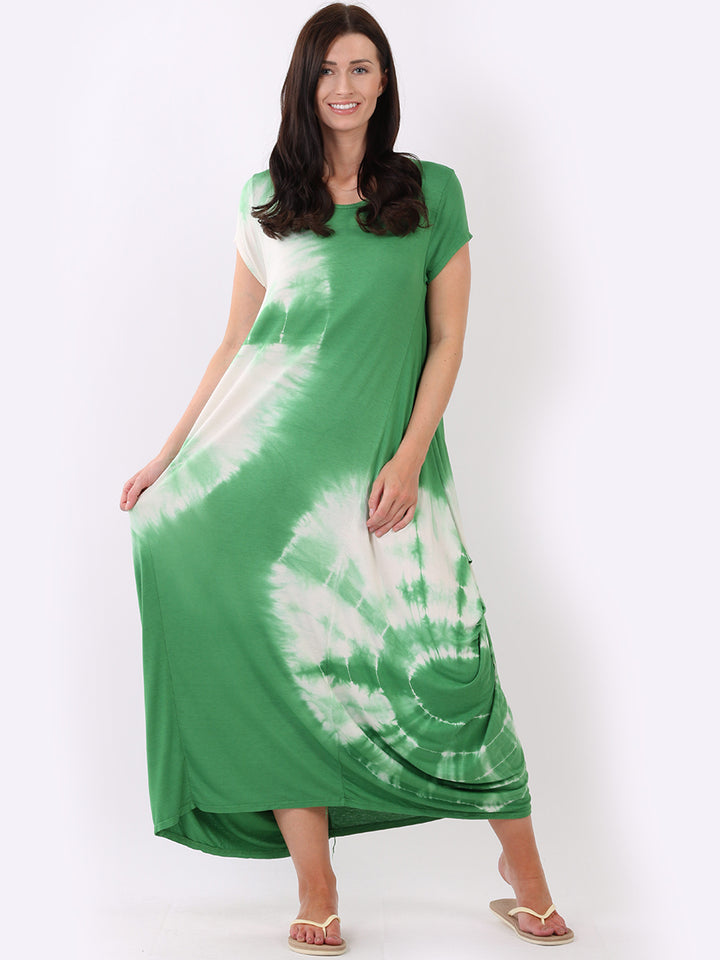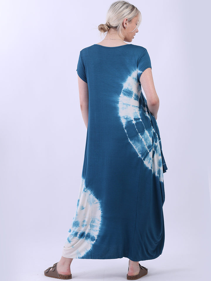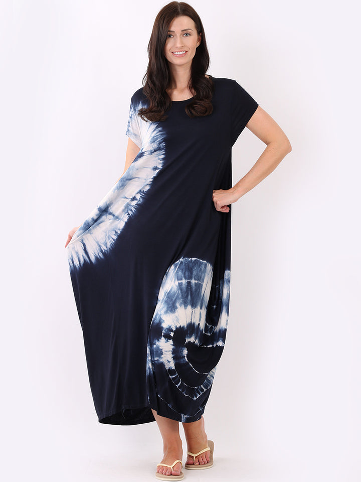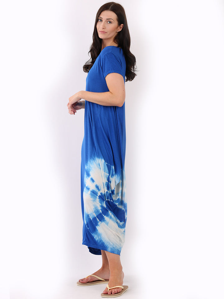 Simple and splendid this is ideal summer attire women wearers would love to add to wardrobes. Made in Italy with perfection baggy and plus size fit the classic timeless tie and dye print with basic round neckline, front pockets and maxi style makes it a go-to cover-all from every day wear to sandy beaches. Team it with flip-flops and Mexican hat.