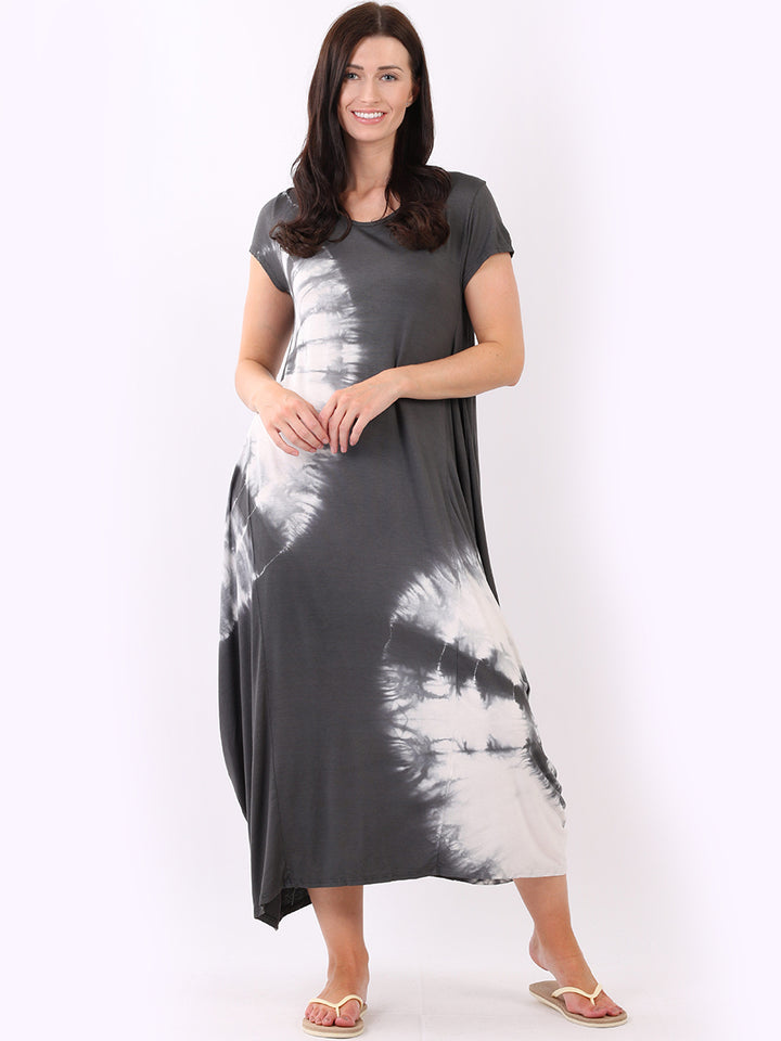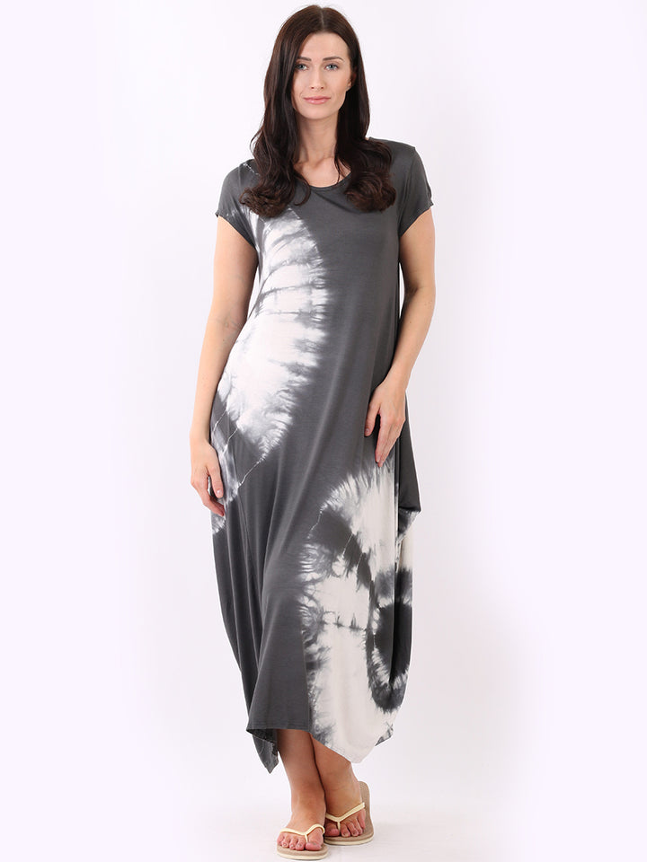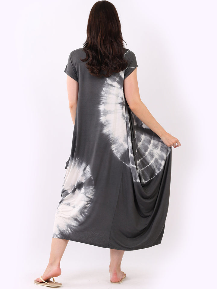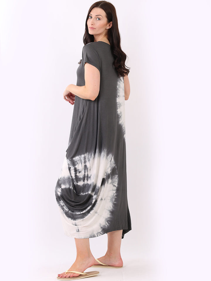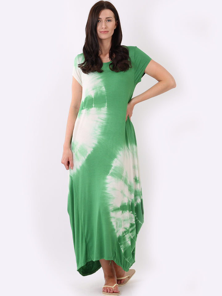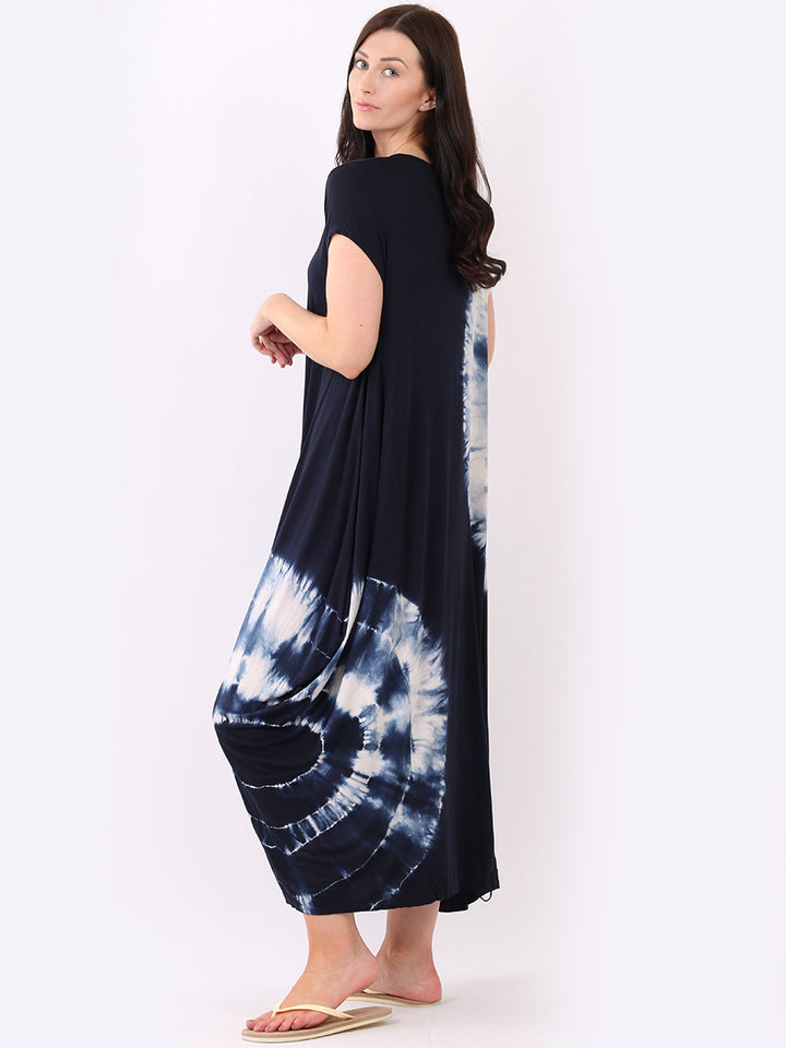 Simple and splendid this is ideal summer attire women wearers would love to add to wardrobes. Made in Italy with perfection baggy and plus size fit the classic timeless tie and dye print with basic round neckline, front pockets and maxi style makes it a go-to cover-all from every day wear to sandy beaches. Team it with flip-flops and Mexican hat.
