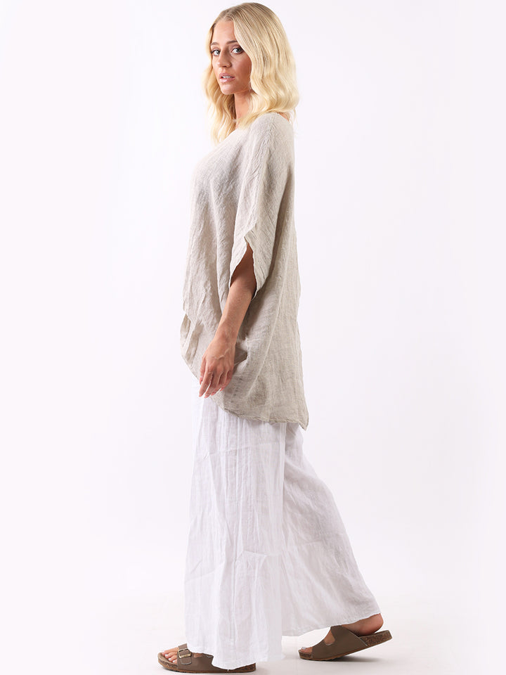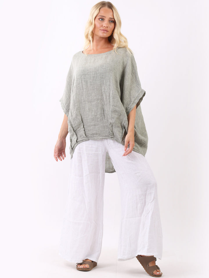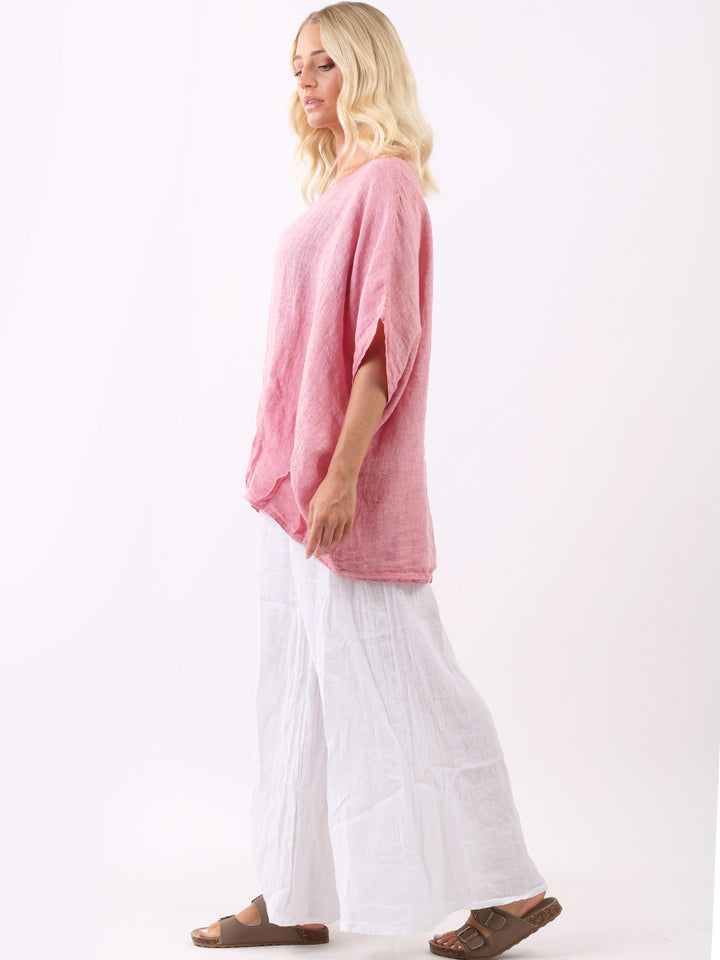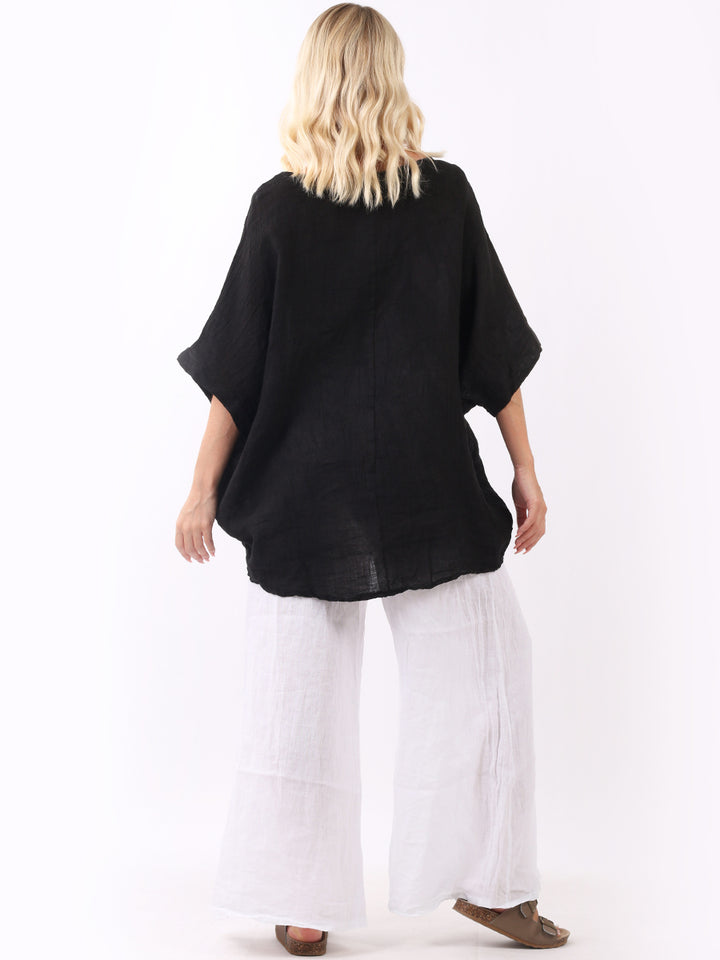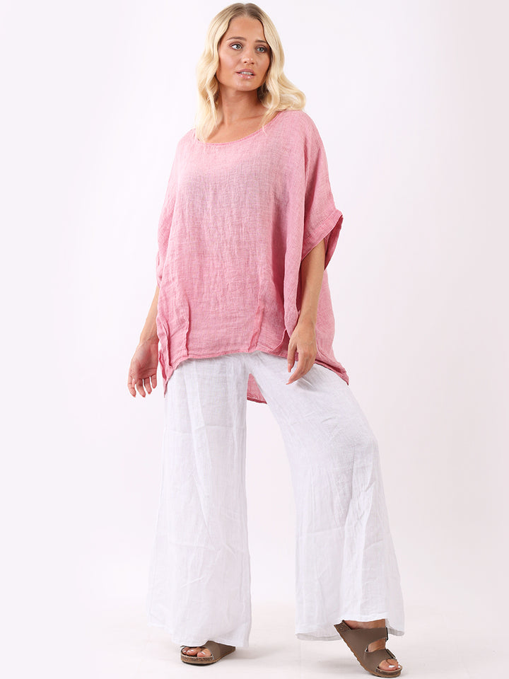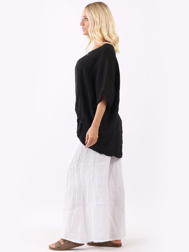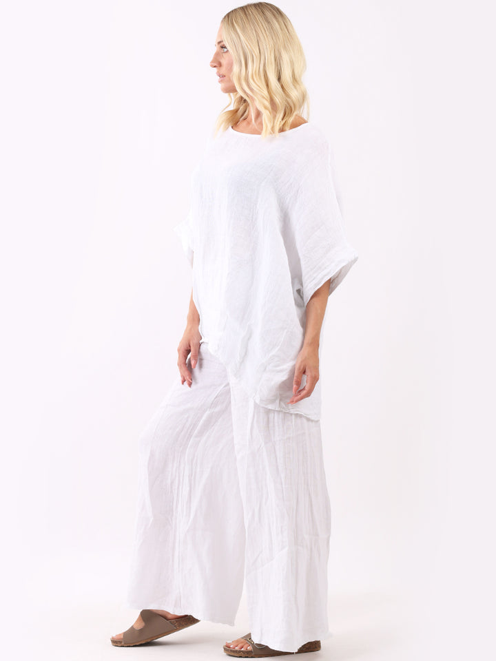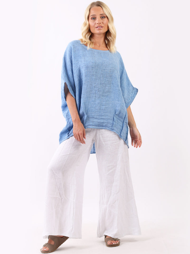 Wardrobe must have this functional baggy top has all the right qualities of best laid back top. Made in Italy with soft comfy fabric the top has round neckline, narrow hem for sleek over all finish and batwing sleeves to give formal vibes. Dress over wide leg trousers by Redwholesale and sneakers.