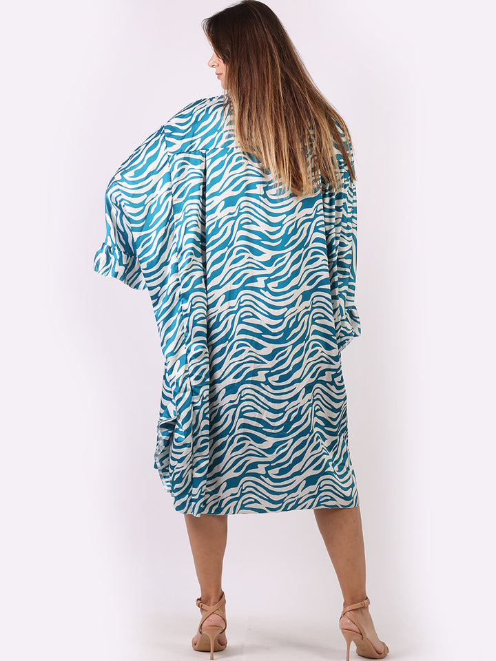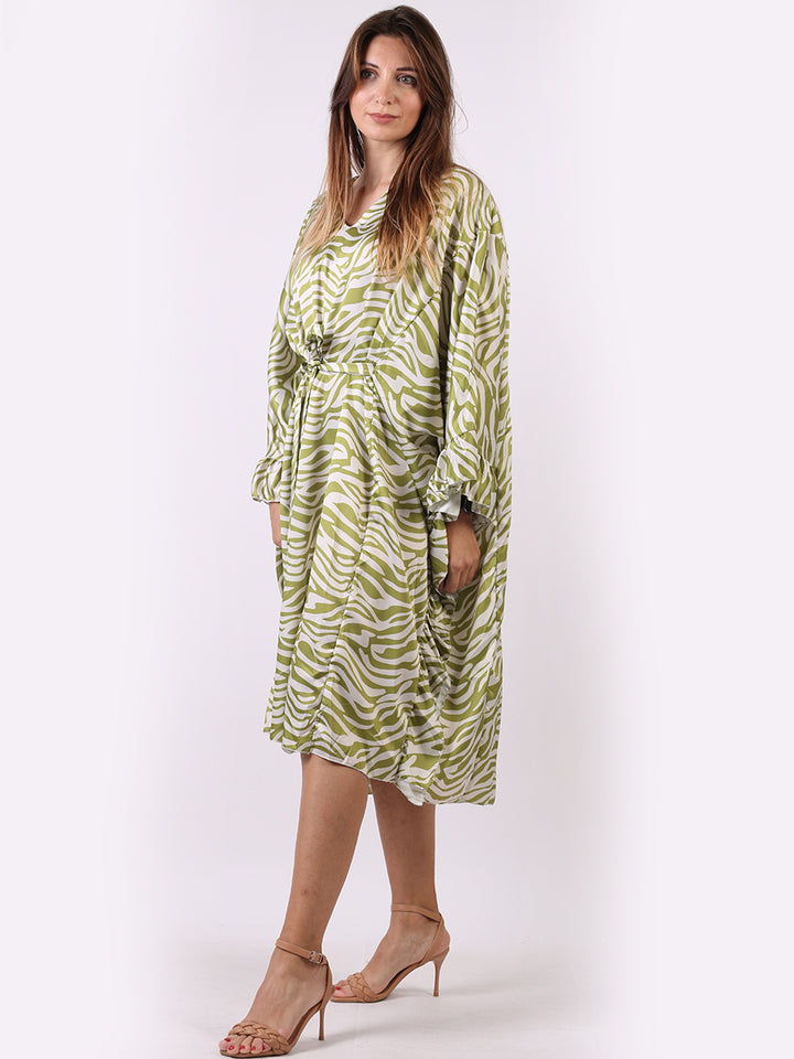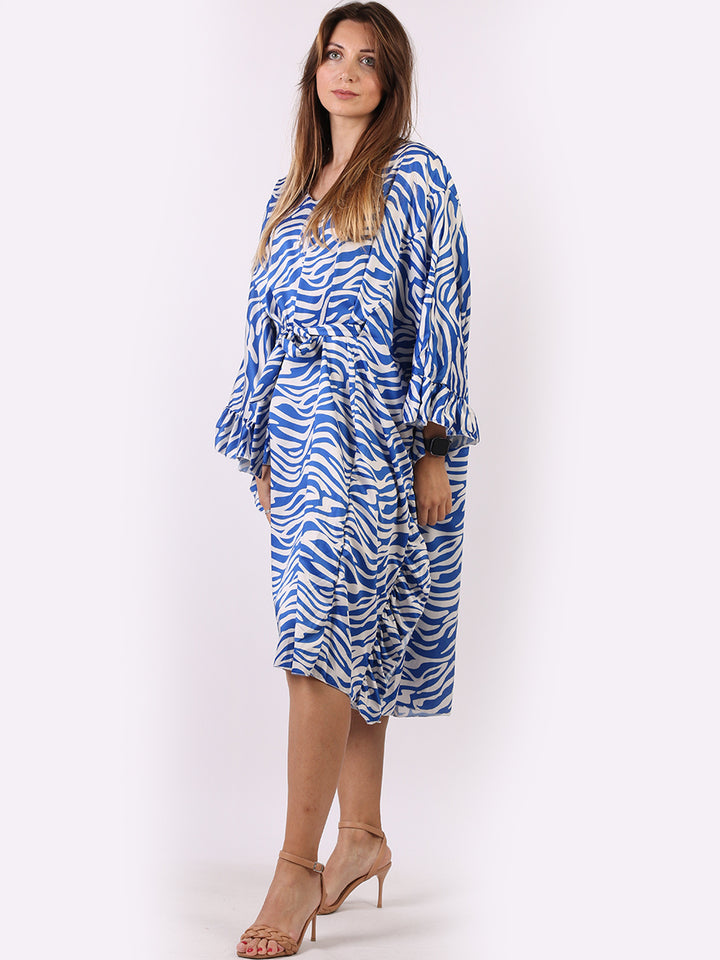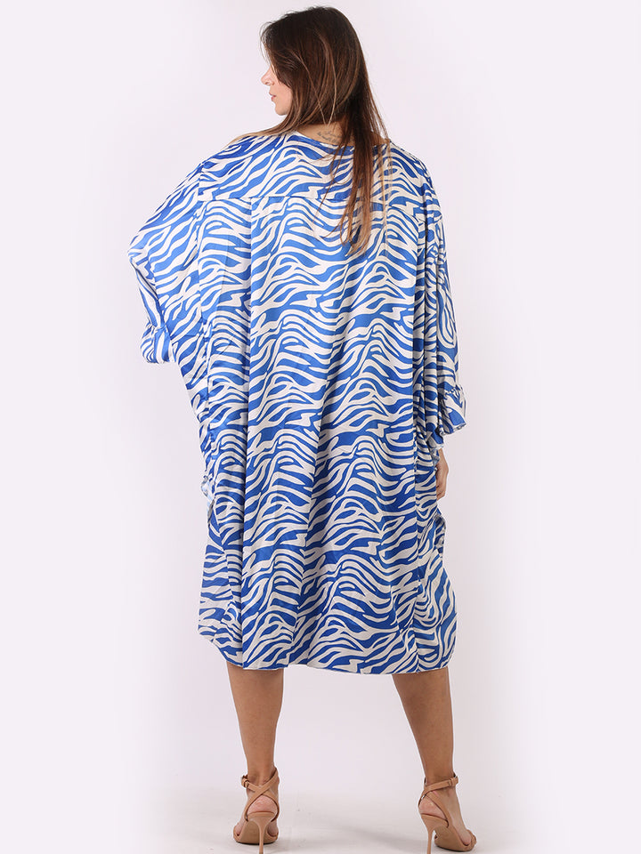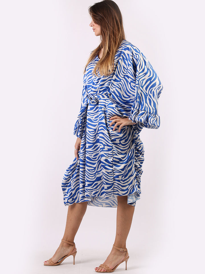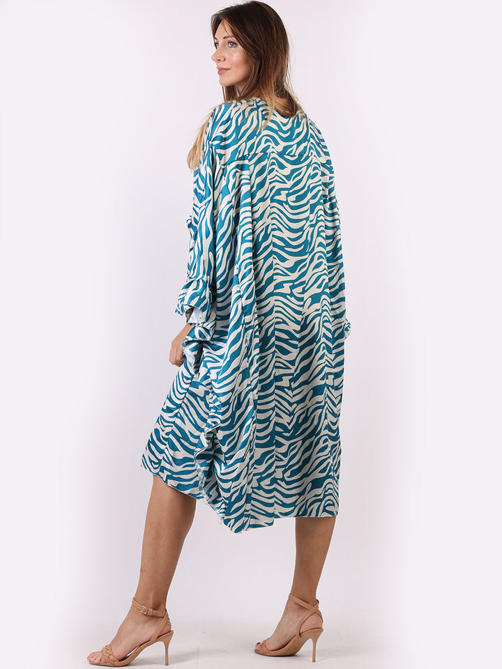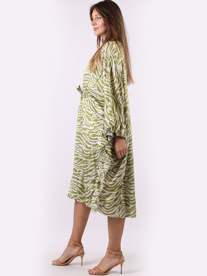 Made In Italy Wave Print V-Neck Ruffle Sides Lagenlook Kaftan