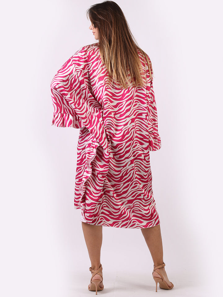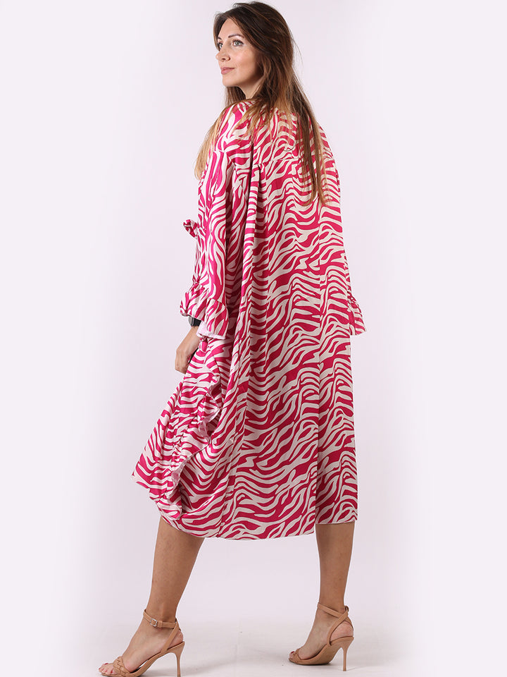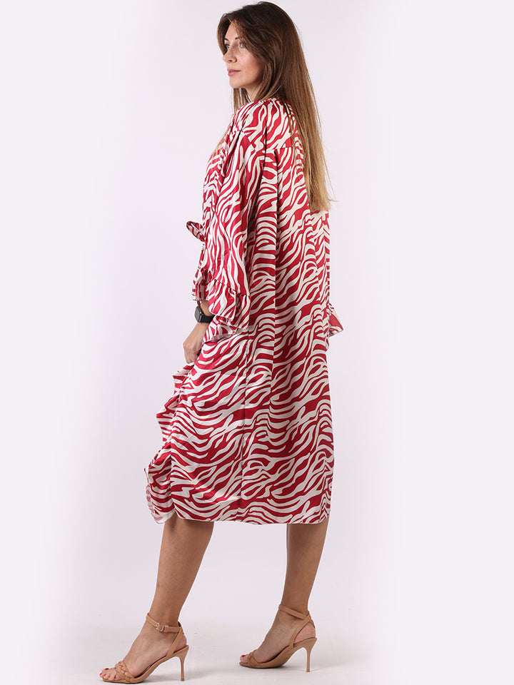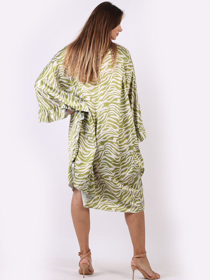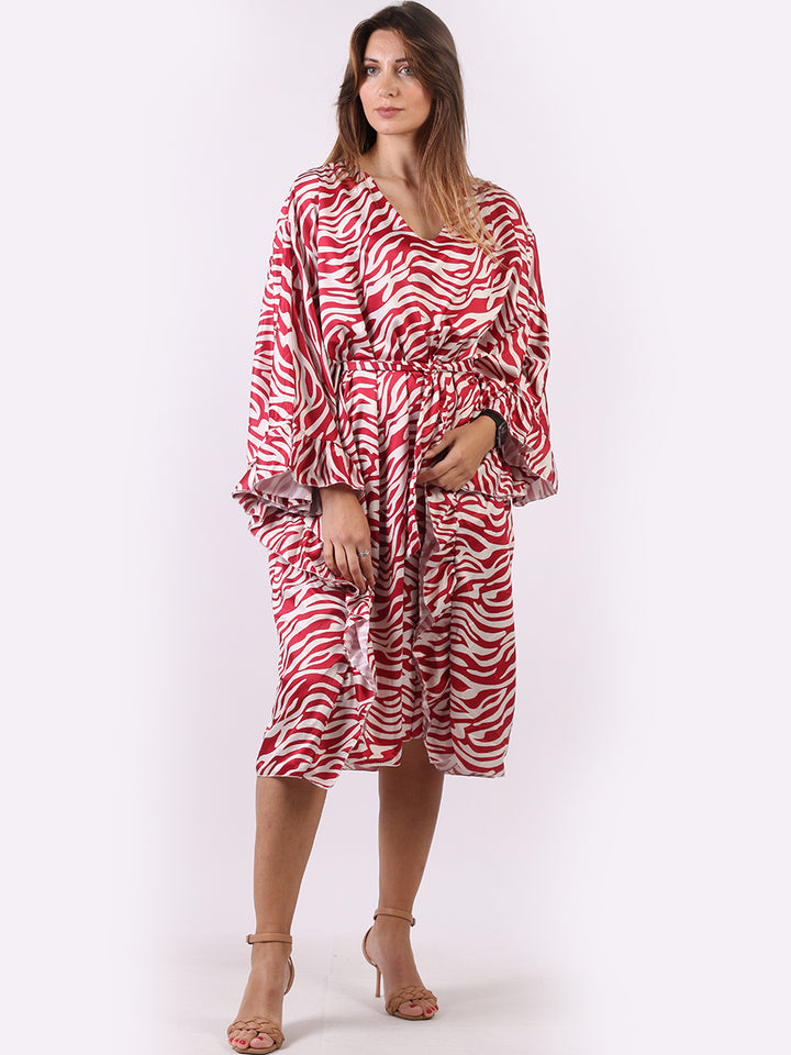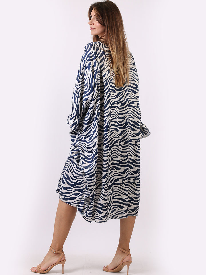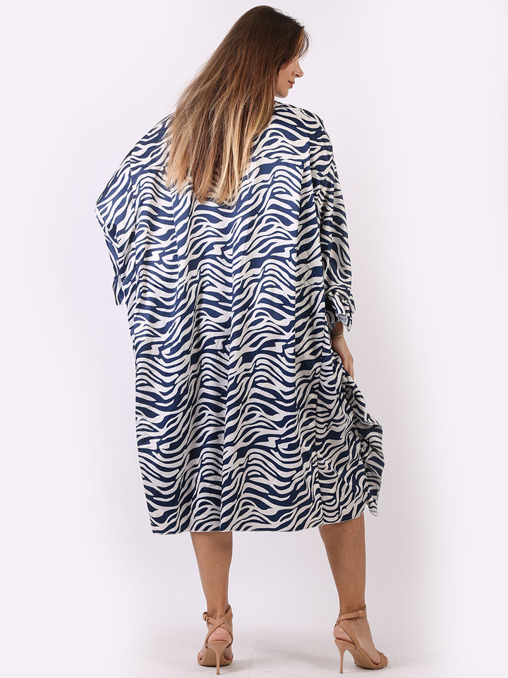 Made In Italy Wave Print V-Neck Ruffle Sides Lagenlook Kaftan