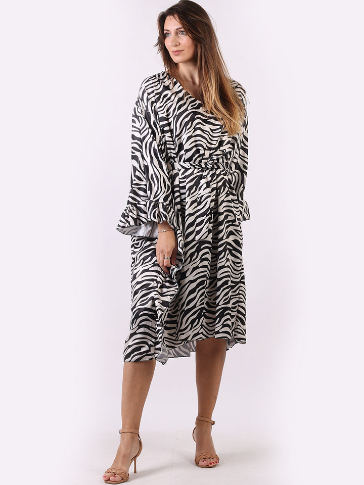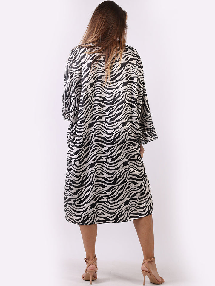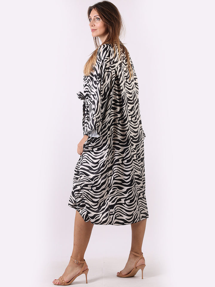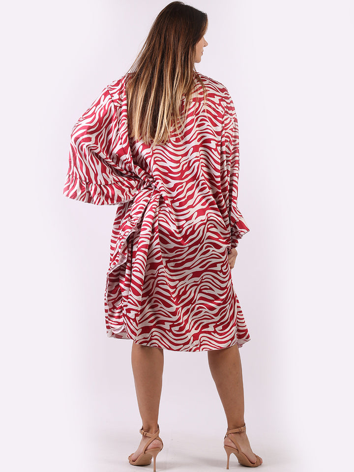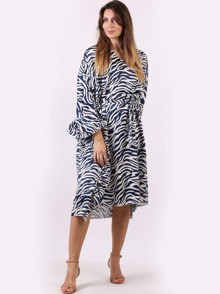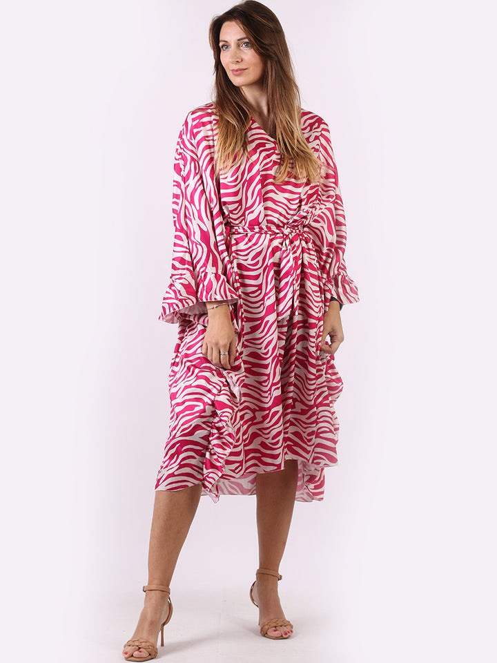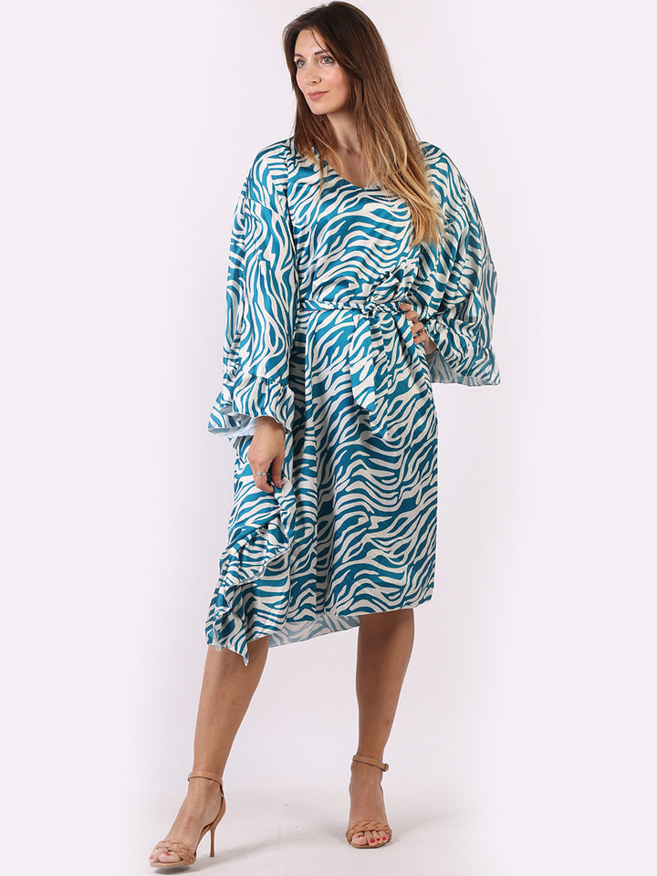Made In Italy Wave Print V-Neck Ruffle Sides Lagenlook Kaftan