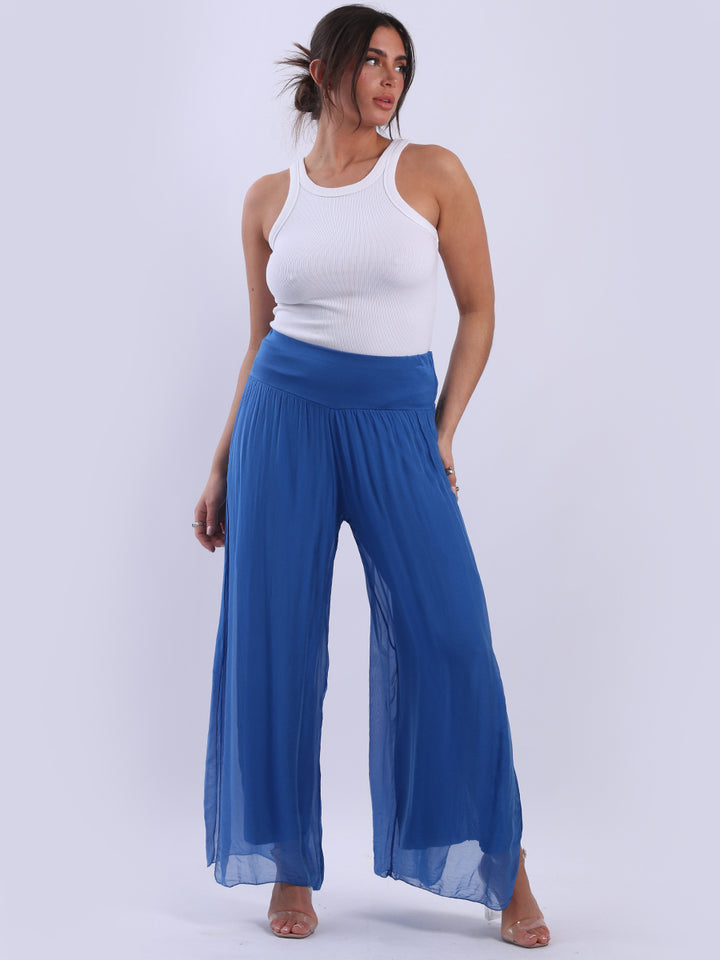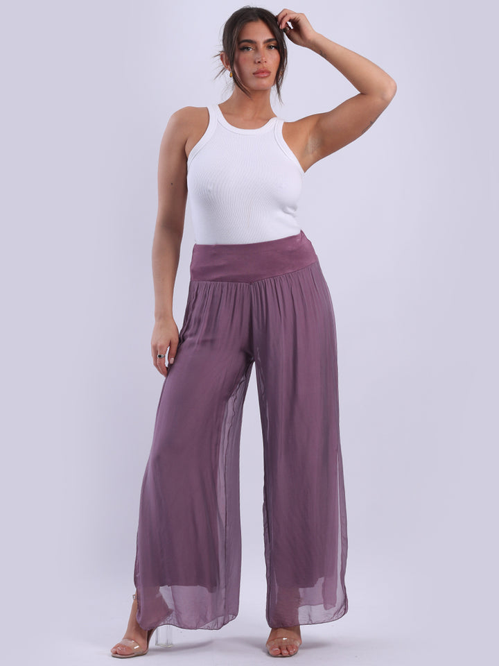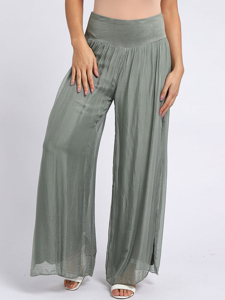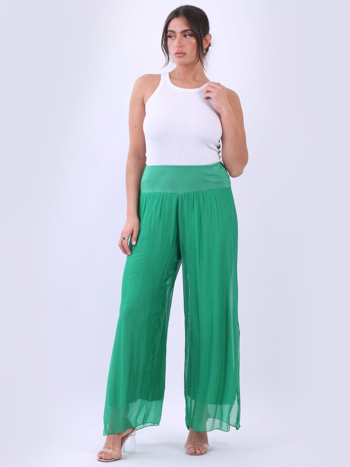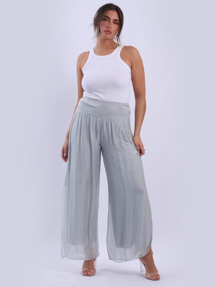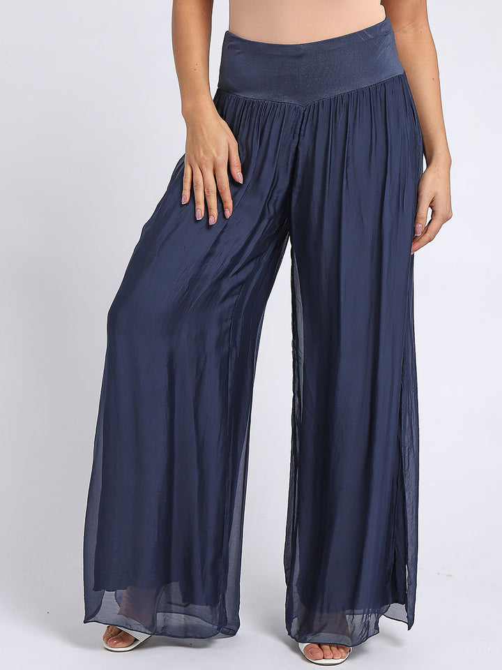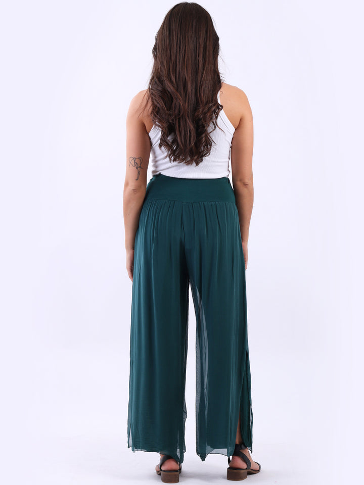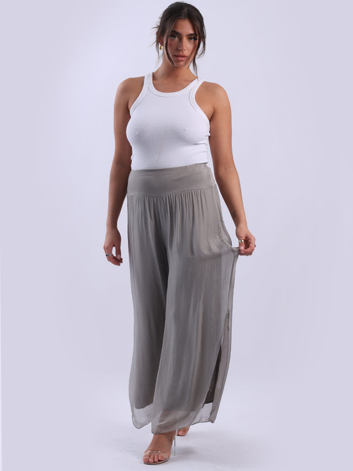 Made In Italy Wide Leg Side Slit Ladies Silk Harem Trouser