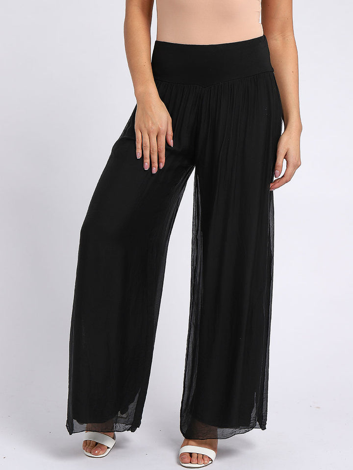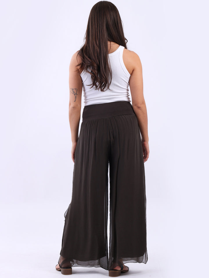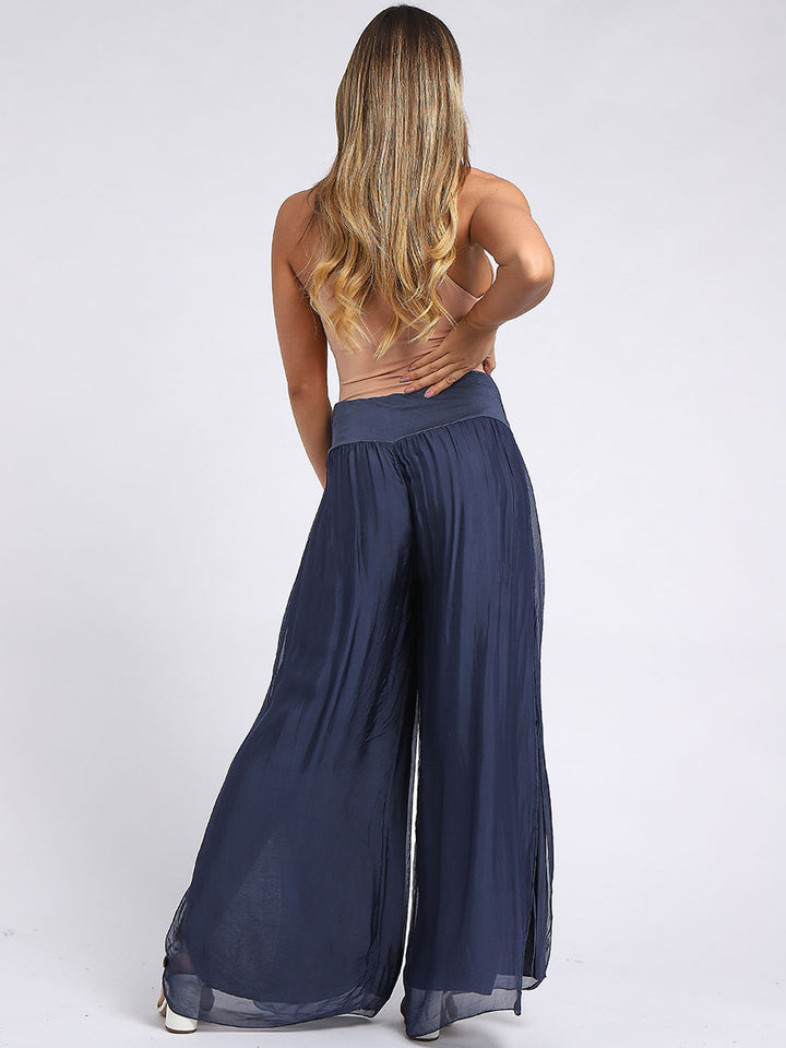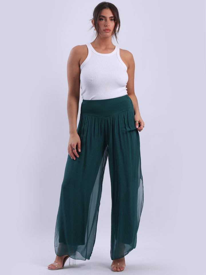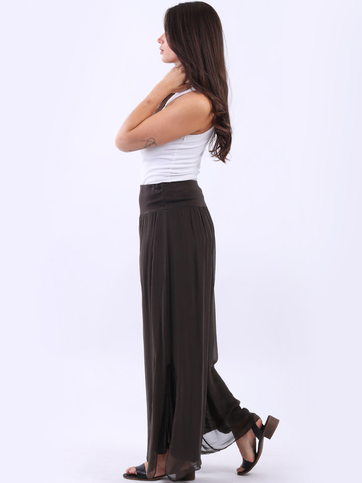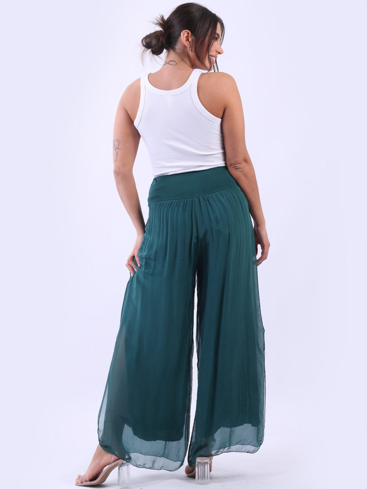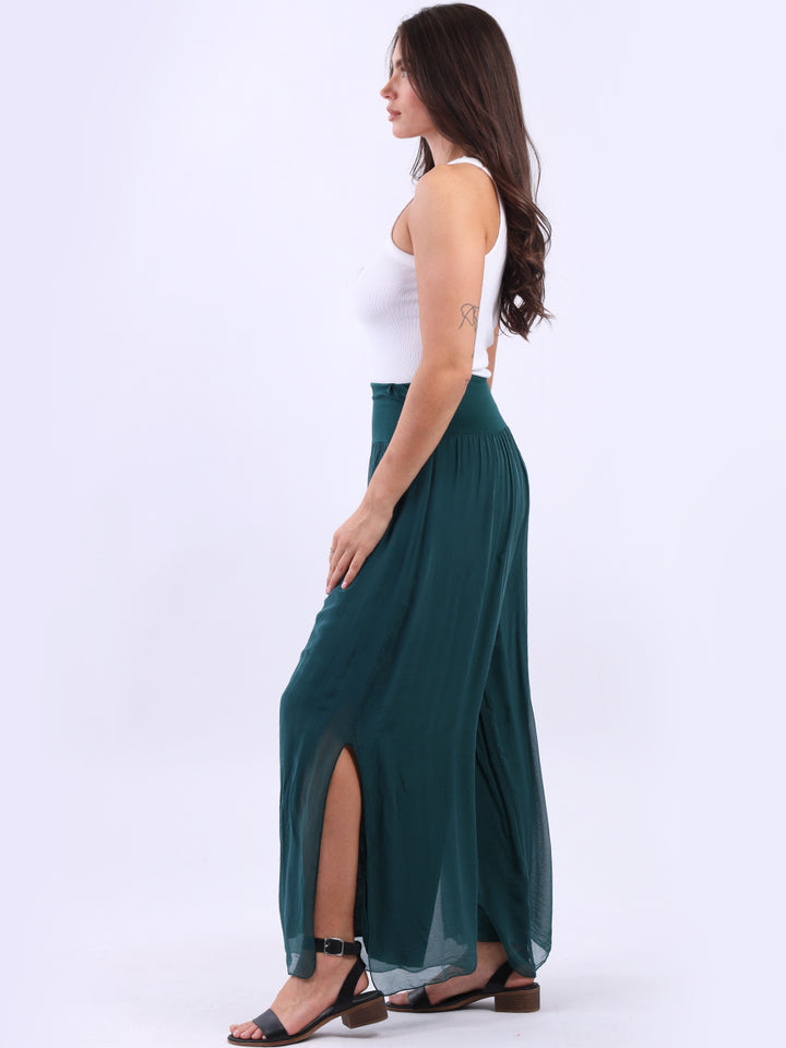 Made In Italy Wide Leg Side Slit Ladies Silk Harem Trouser