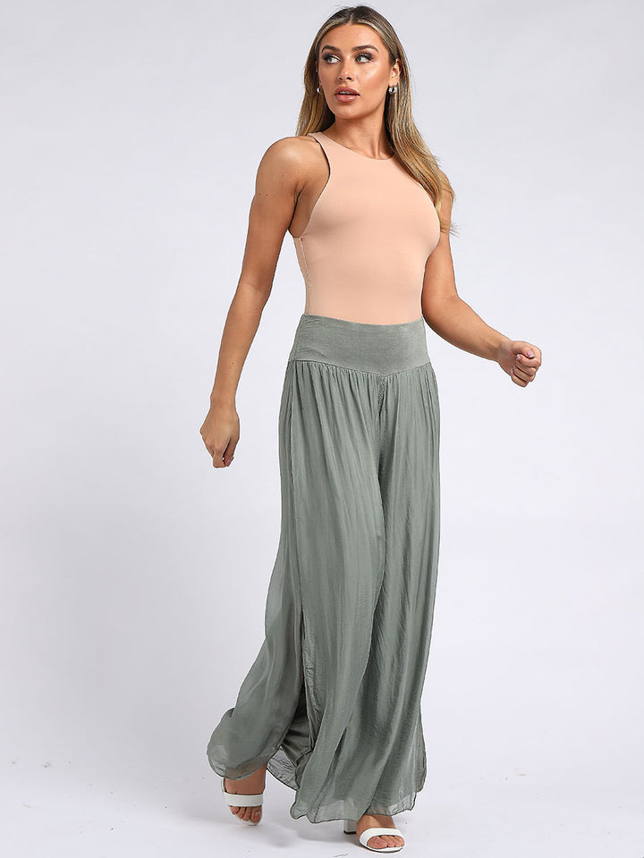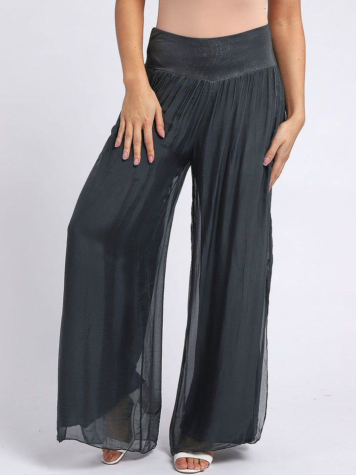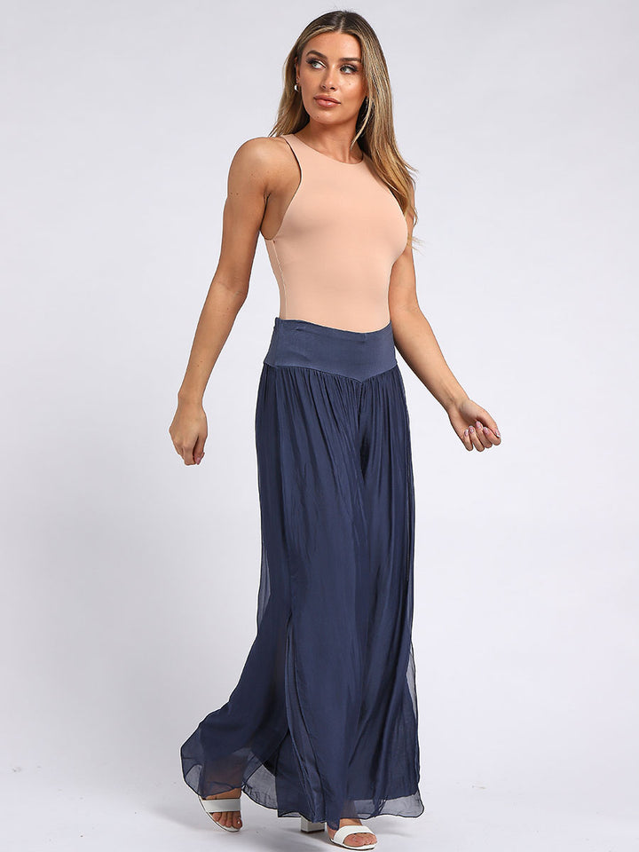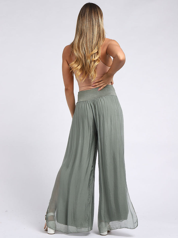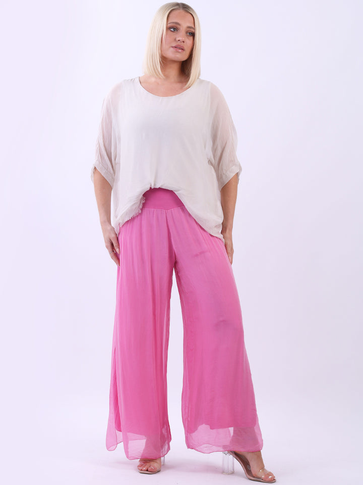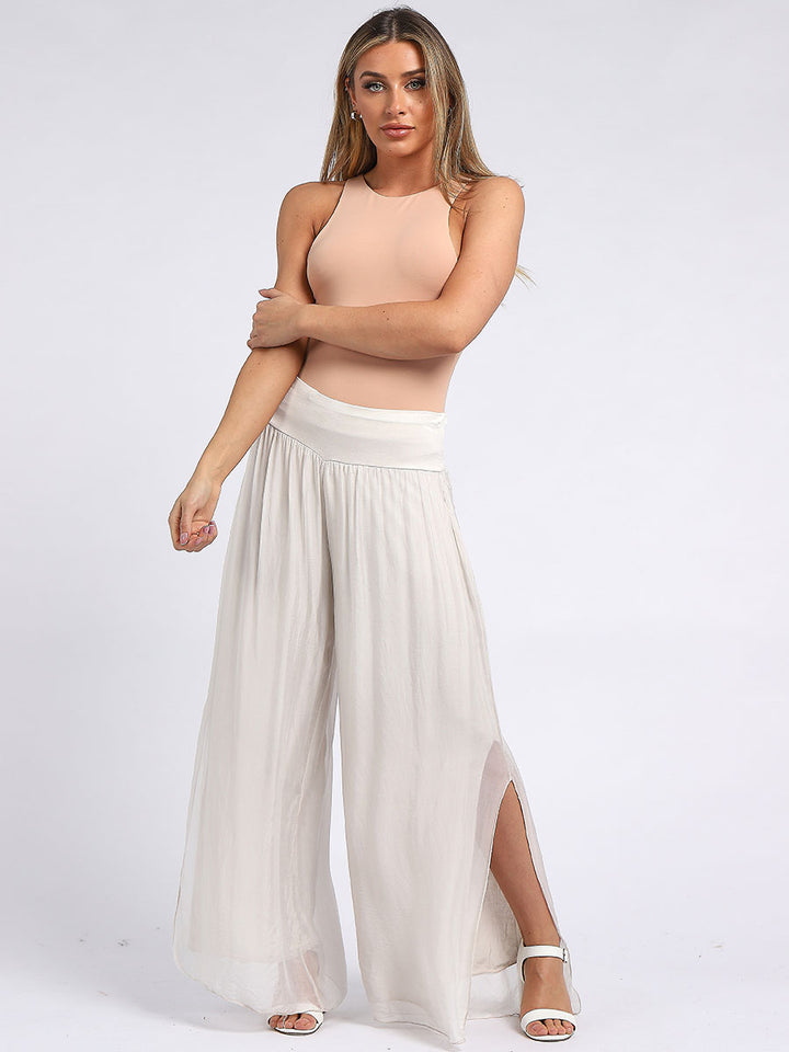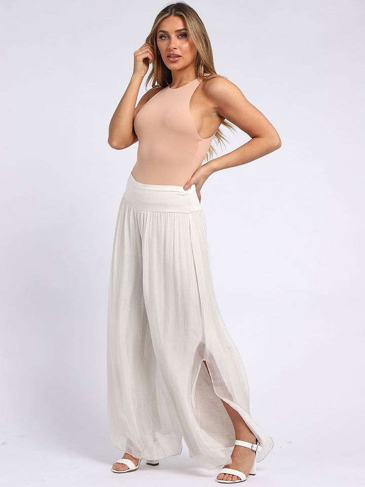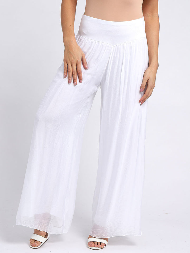 Made In Italy Wide Leg Side Slit Ladies Silk Harem Trouser