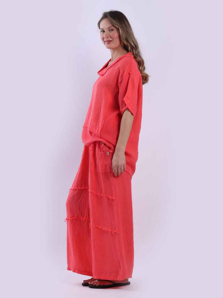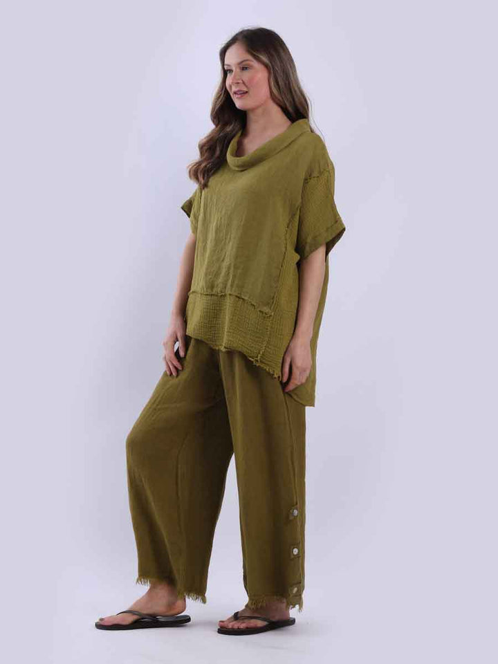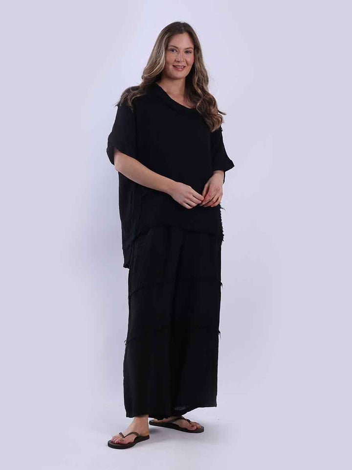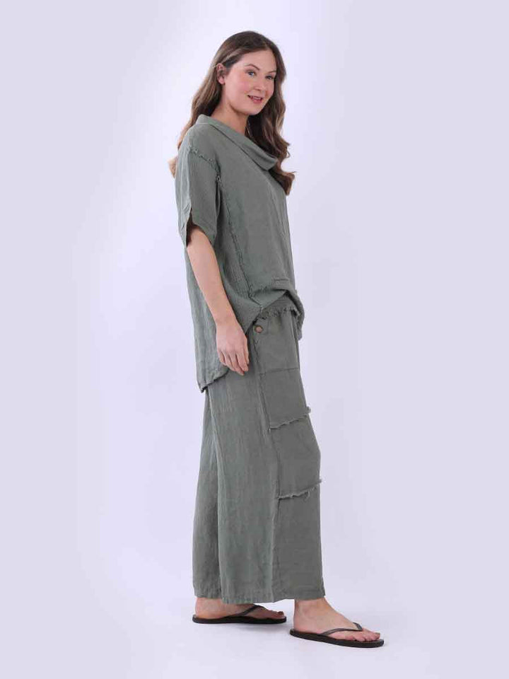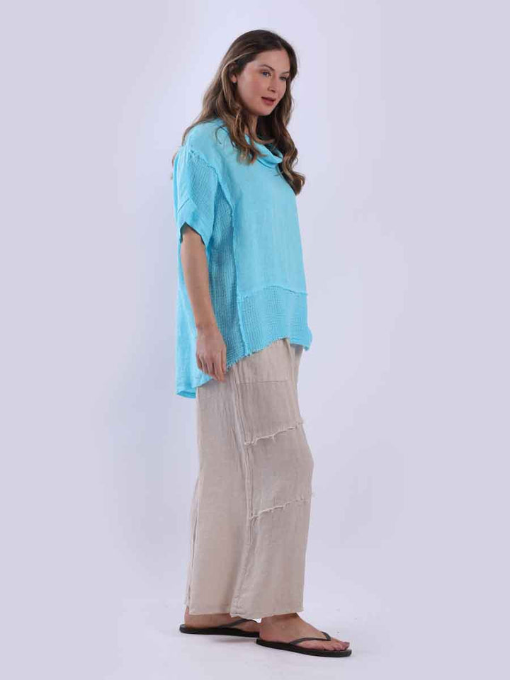 Embrace the vibrant colours this summer with this plain mesh top crafted from lightweight linen fabric. The timelessly cool and classy cowl neck makes it more stunning, while the raw edges and dipped hem keep it laid-back and casual. With its loose fit and flowy style, this top pairs perfectly with wide-leg solid trousers to create an eye-catching look.