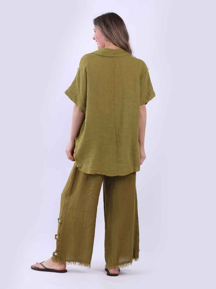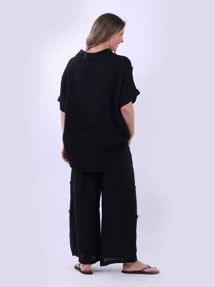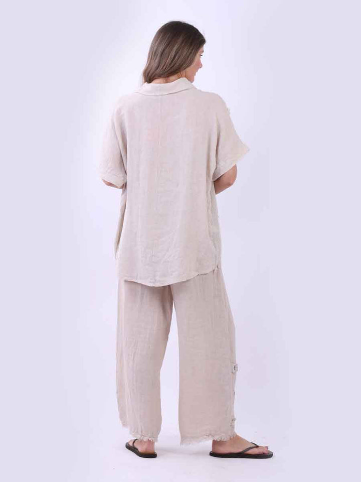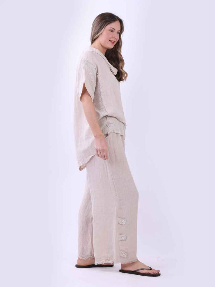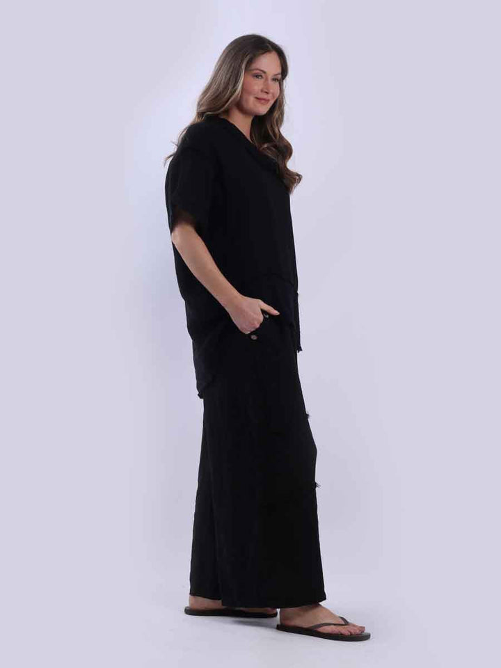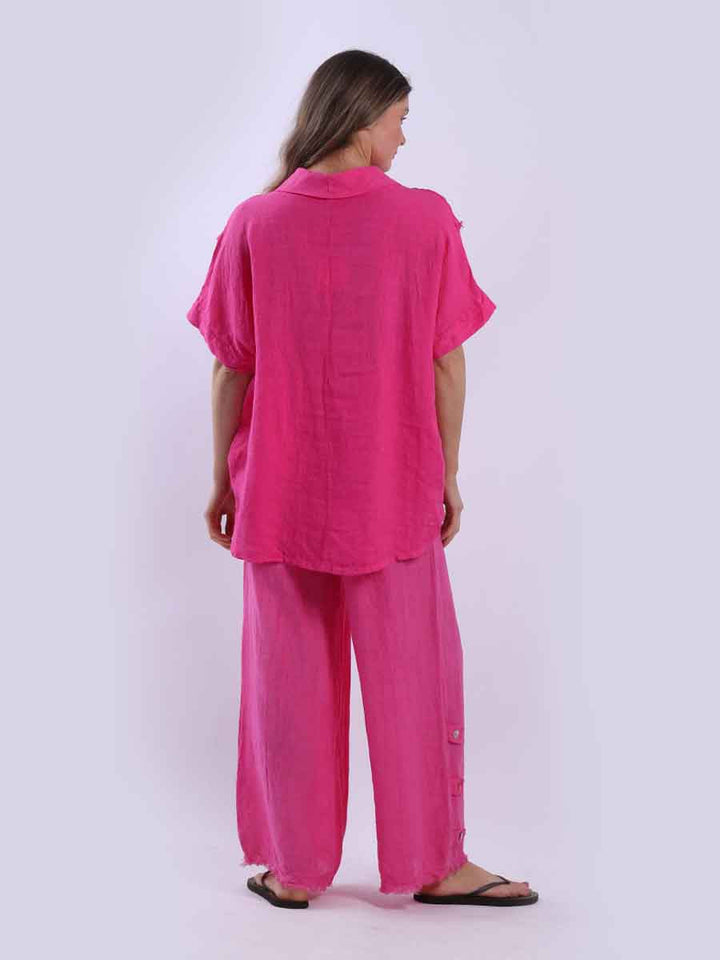 Embrace the vibrant colours this summer with this plain mesh top crafted from lightweight linen fabric. The timelessly cool and classy cowl neck makes it more stunning, while the raw edges and dipped hem keep it laid-back and casual. With its loose fit and flowy style, this top pairs perfectly with wide-leg solid trousers to create an eye-catching look.