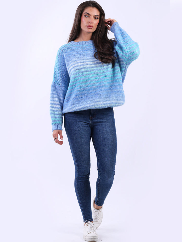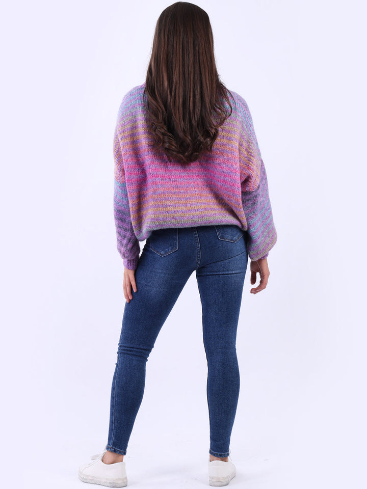 Multi Stripes Women Chunky Wool Knitted Jumper
