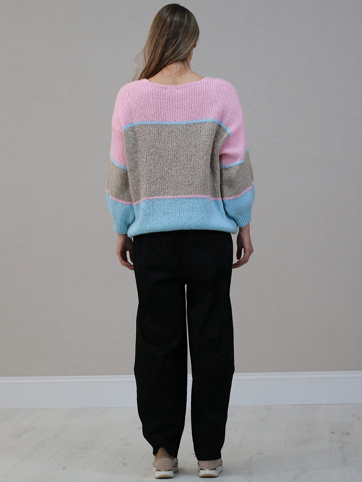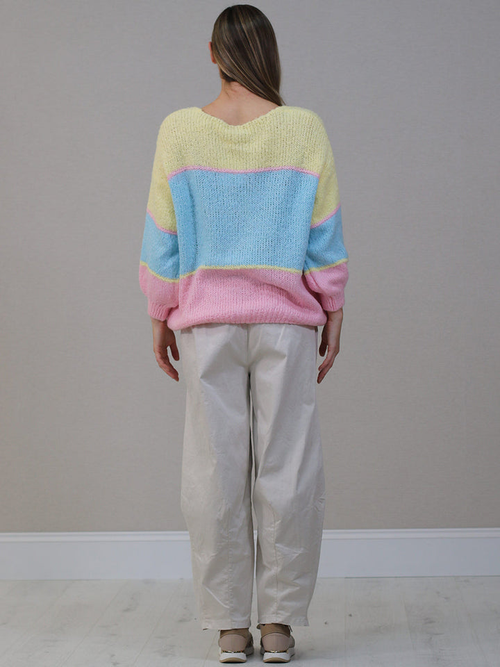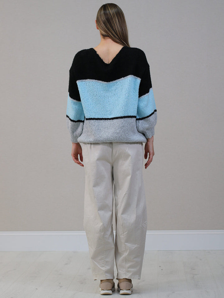 Embrace effortless style with this woolen cardigan from RedWholesale’s new knitwear collection. Designed with a bold multi color block pattern, this made in Italy cardigan brings together comfort and versatility. The front button fastening allows easy layering, while the relaxed drop shoulders and long ribbed sleeves give it a modern, laid-back silhouette. Featuring a neat ribbed hem, this cardigan is a cozy yet fashion-forward staple for the upcoming season.