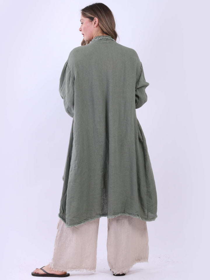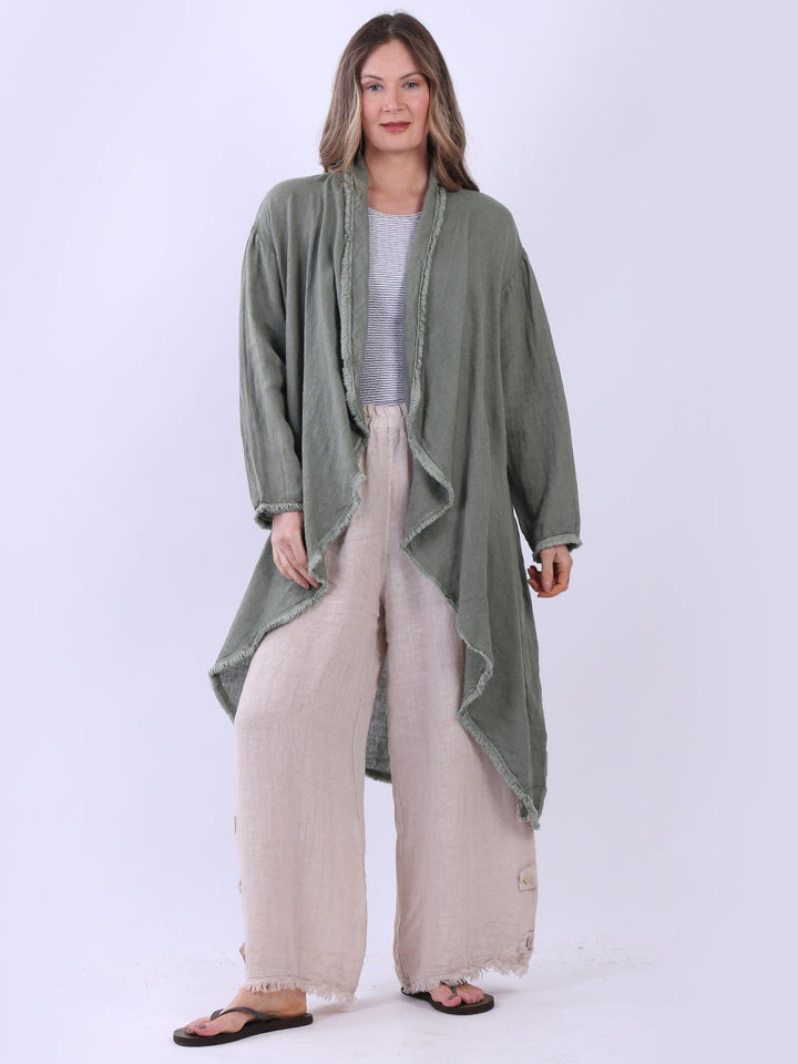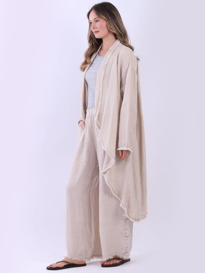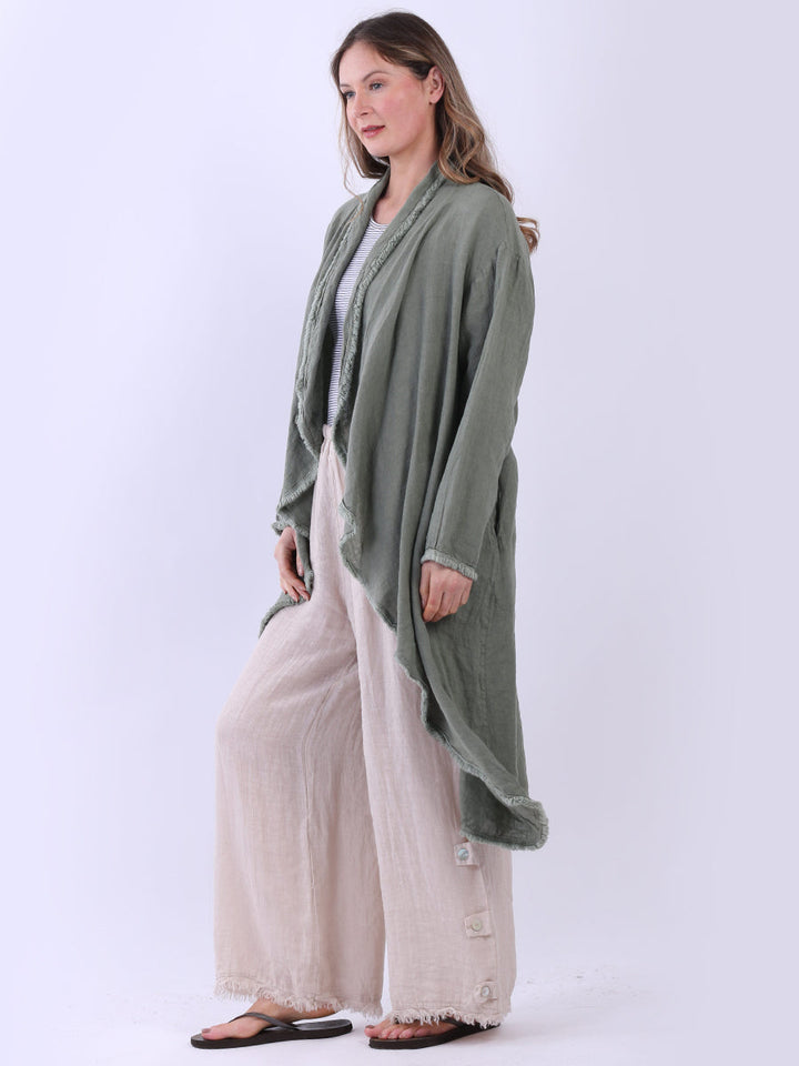 This ladies' fringed linen cardigan is perfect for layering during the mild days of spring. The open-front style and flowy fit offer an effortlessly relaxed vibe. Its soft, plain hue complements nature-inspired tones and fresh seasonal looks. Lightweight and breathable, it is ideal for cooler evenings or breezy days. A simple yet elegant choice from Redwholesale online clothing store for versatile styling.