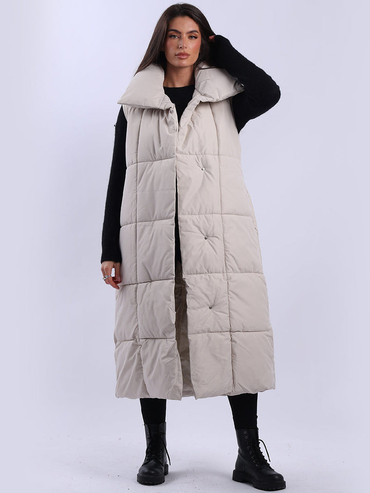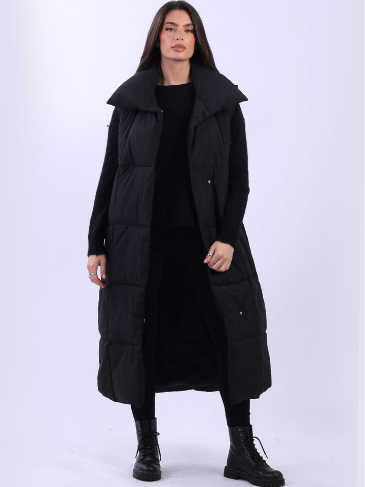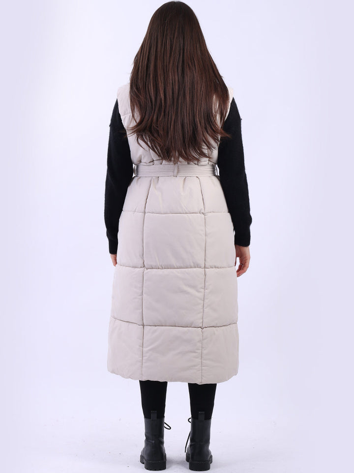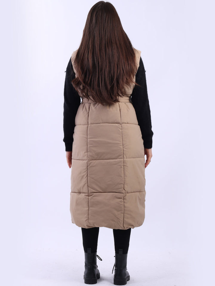 Ladies would love to wrap themself in warmth with this oversized puffer gilet. The wide collar and belted waist add a snug, cozy feel, making it an essential for cold winter days. Perfect for casual outings, this vest is designed for ladies who want warmth without sacrificing style. It’s perfect go-to for a chic, laid-back winter look.