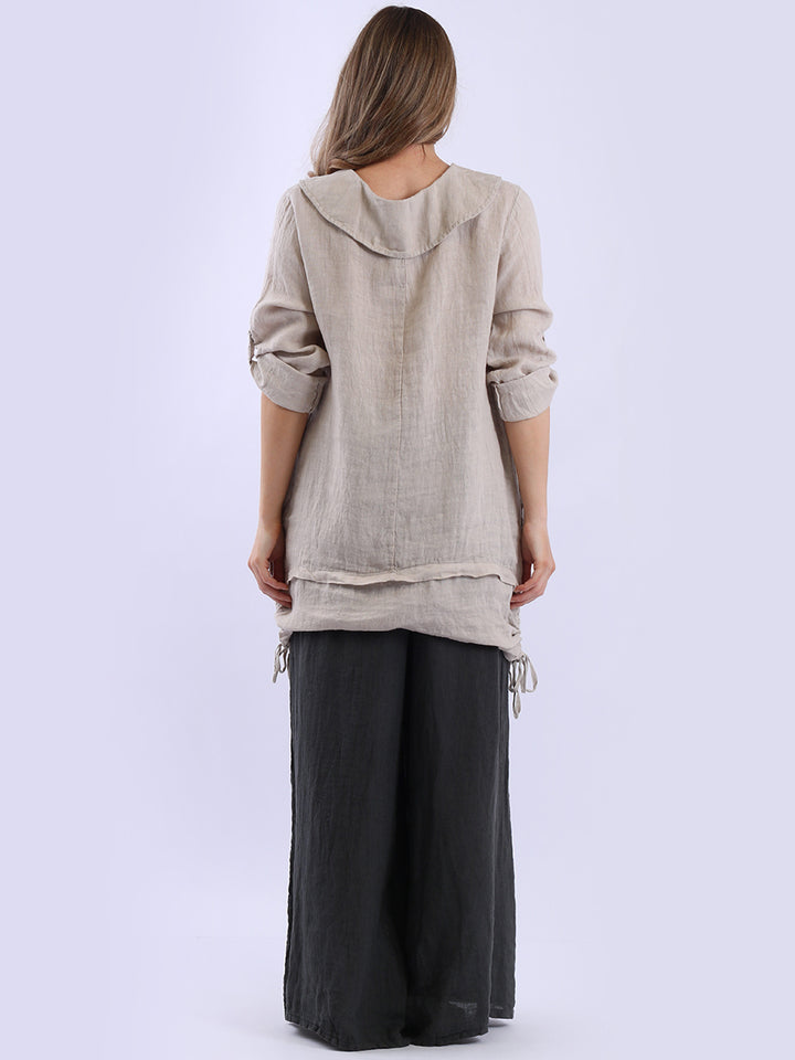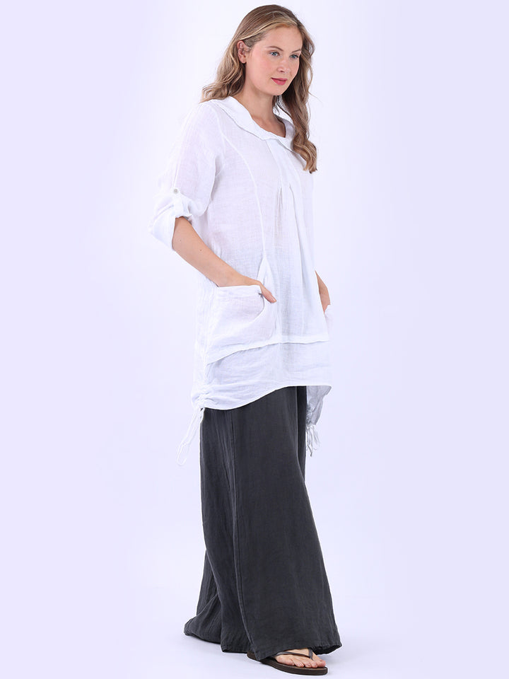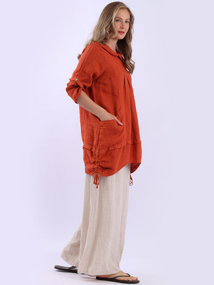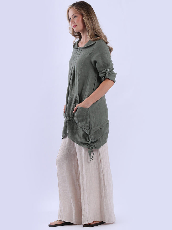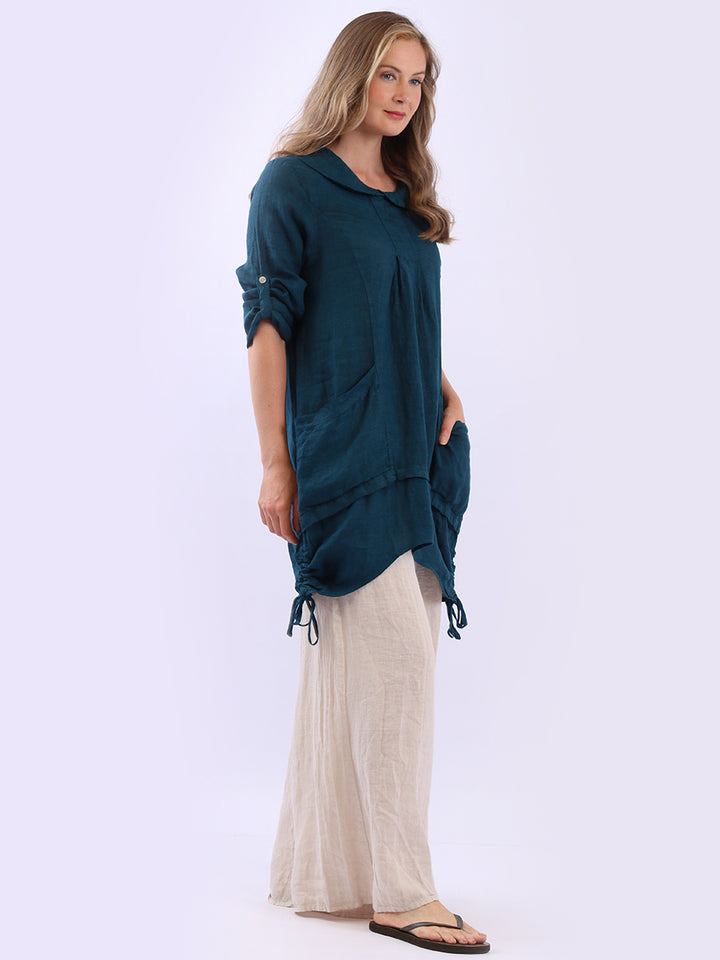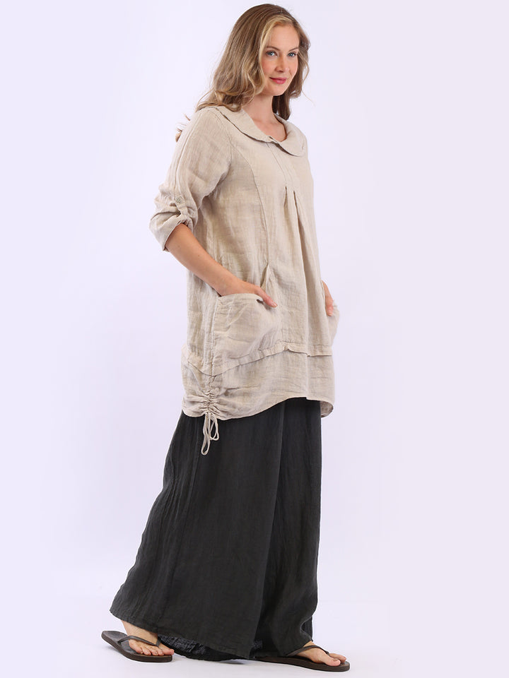 A breezy addition to the wardrobe, this Italian-crafted linen top offers a gentle balance of comfort and style. With its subtly peter pan collar, buttoned sleeves, front pocket, and adjustable drawstring hem, it caters beautifully to ladies who prefer relaxed silhouettes with thoughtful detailing. A flattering option for plus-size wearers, this piece from RedWholesale Clothing Store UK brings ease and grace to everyday dressing.