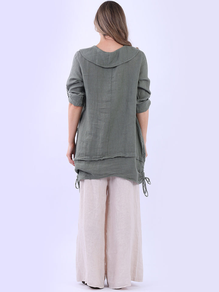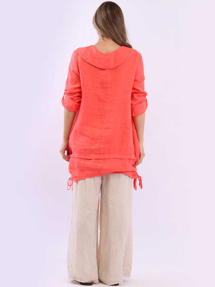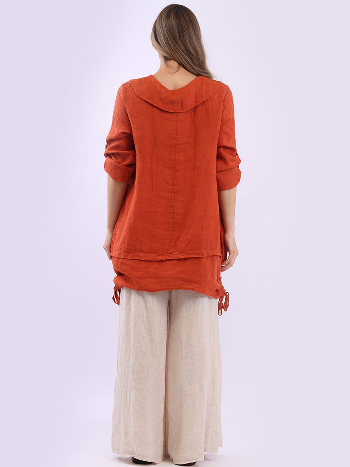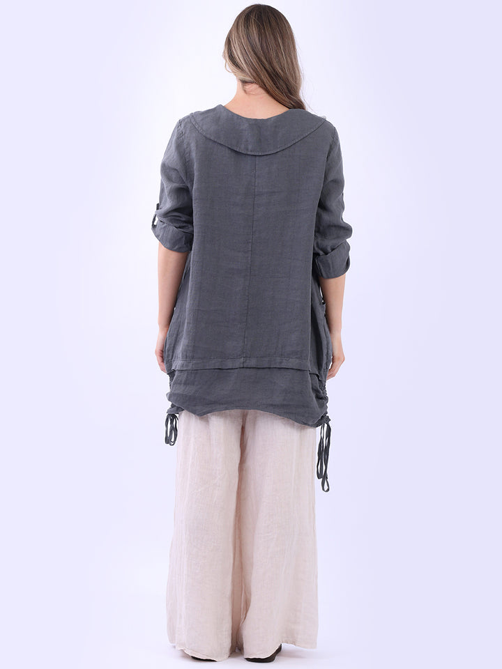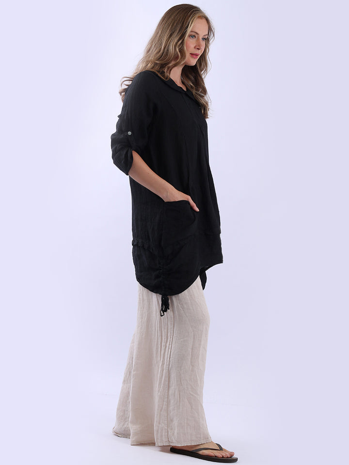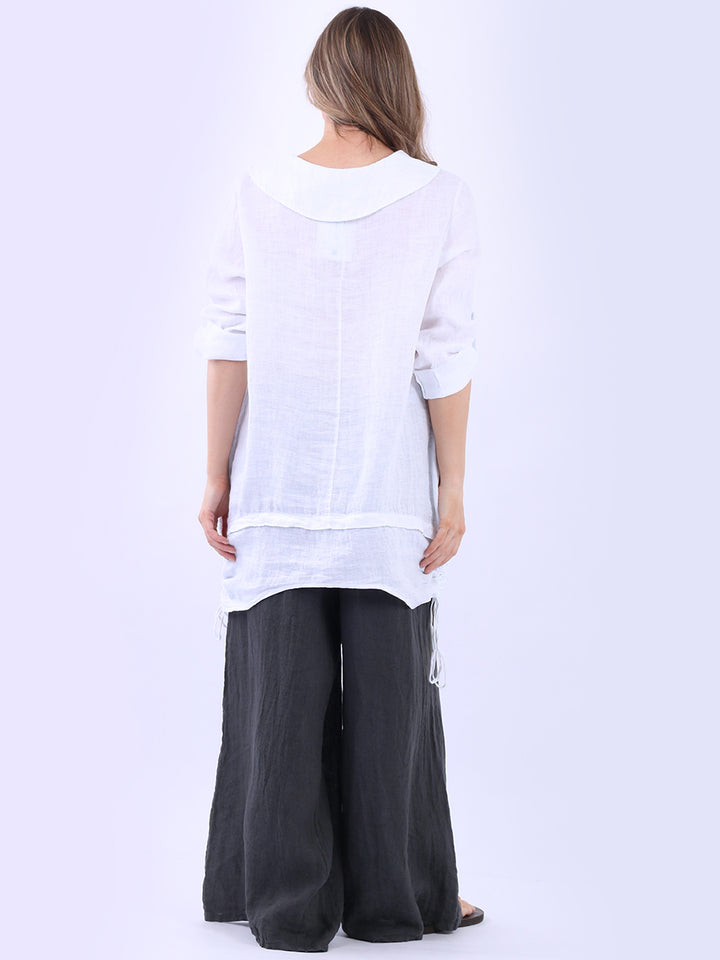 A breezy addition to the wardrobe, this Italian-crafted linen top offers a gentle balance of comfort and style. With its subtly peter pan collar, buttoned sleeves, front pocket, and adjustable drawstring hem, it caters beautifully to ladies who prefer relaxed silhouettes with thoughtful detailing. A flattering option for plus-size wearers, this piece from RedWholesale Clothing Store UK brings ease and grace to everyday dressing.