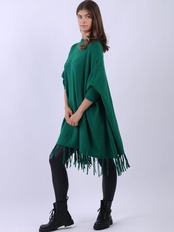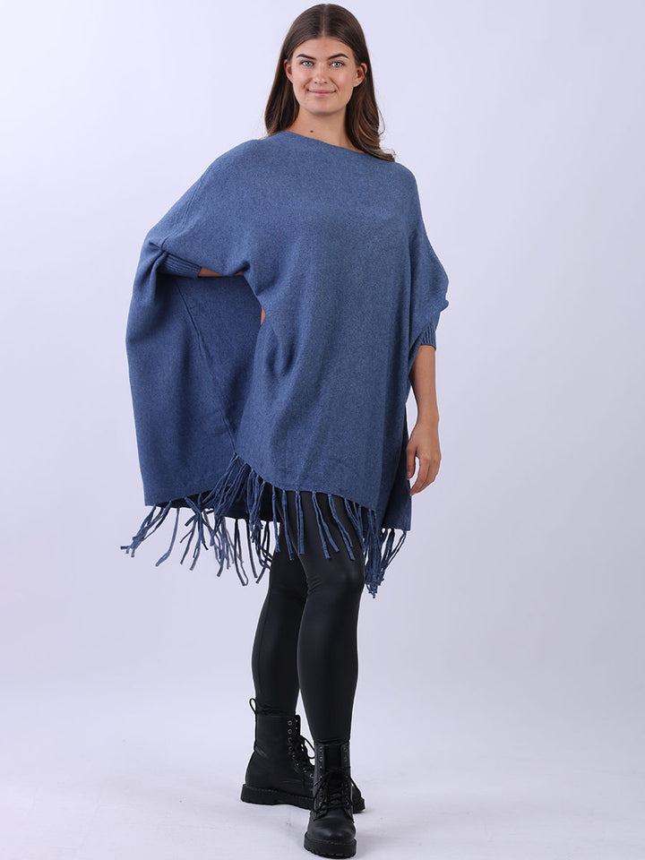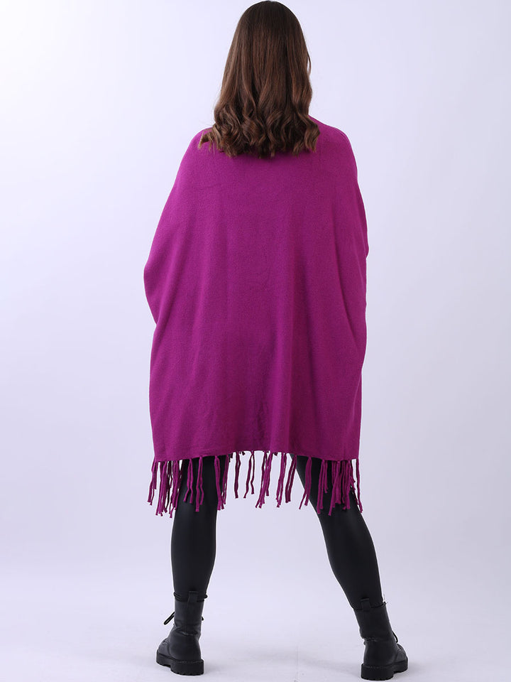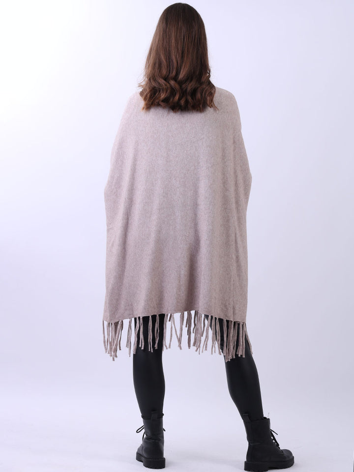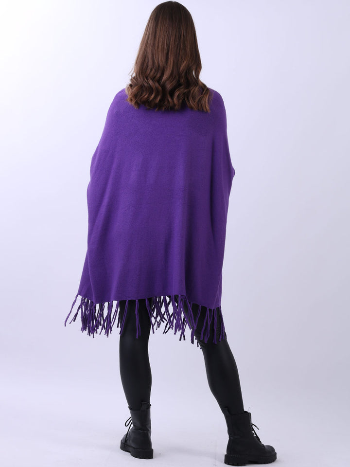 Luxurious and plush look with authentic and high quality fabric blend Redwholesale creates classy finishes. Made in Italy and wardrobe must have for women wearers the adorable fringe gives it an adventurous finish to the knitted poncho. Layer it over wide leg pants and block heels.